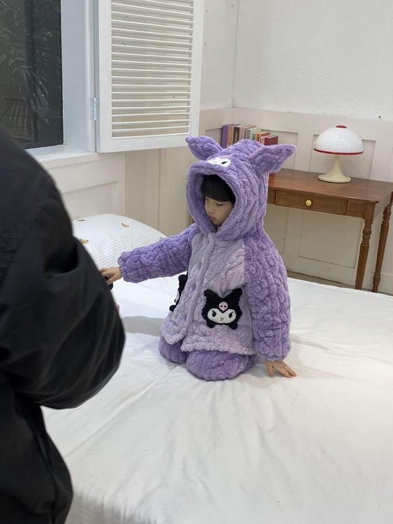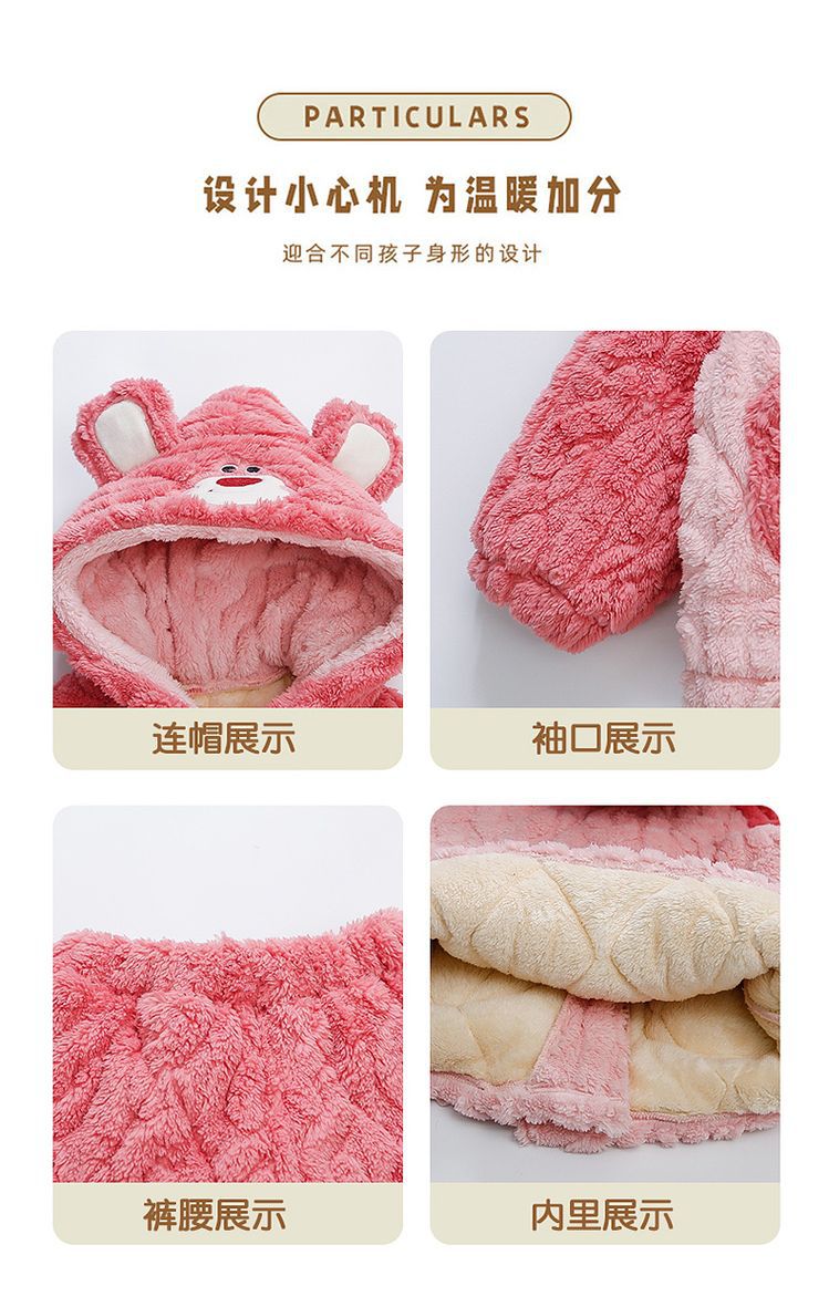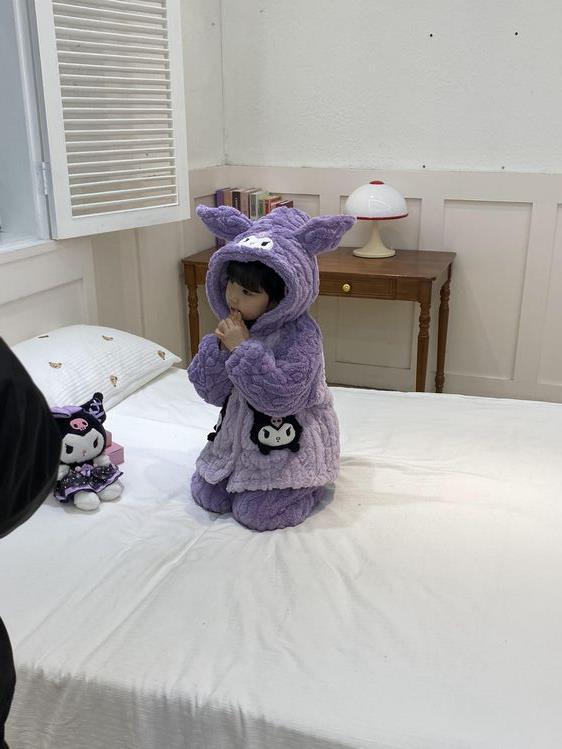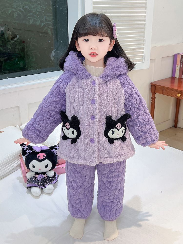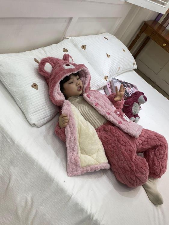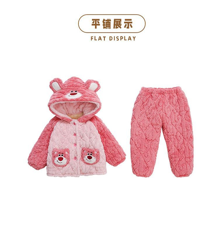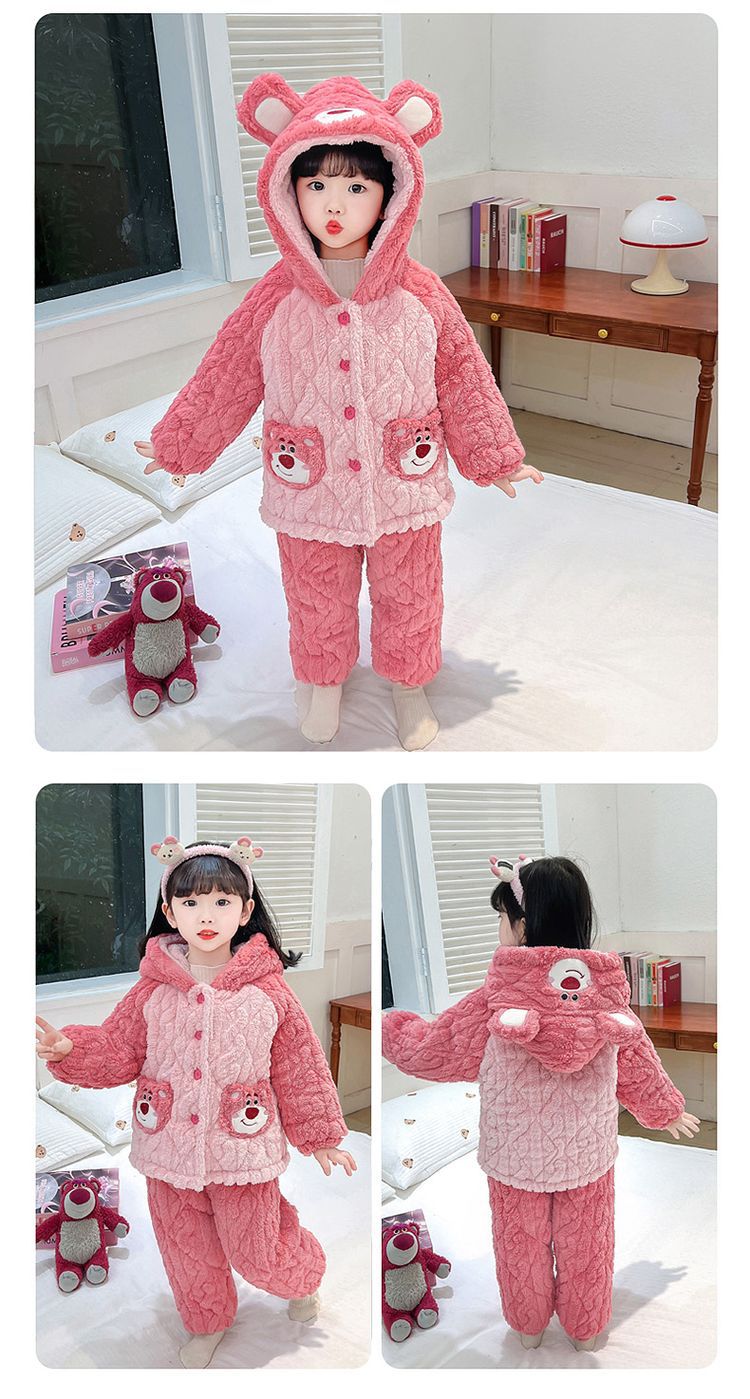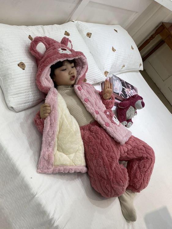 여아용 2024 겨울 잠옷 3중 누빔 코랄벨벳 세트 여아용 플러스 벨벳 두꺼운 홈웨어