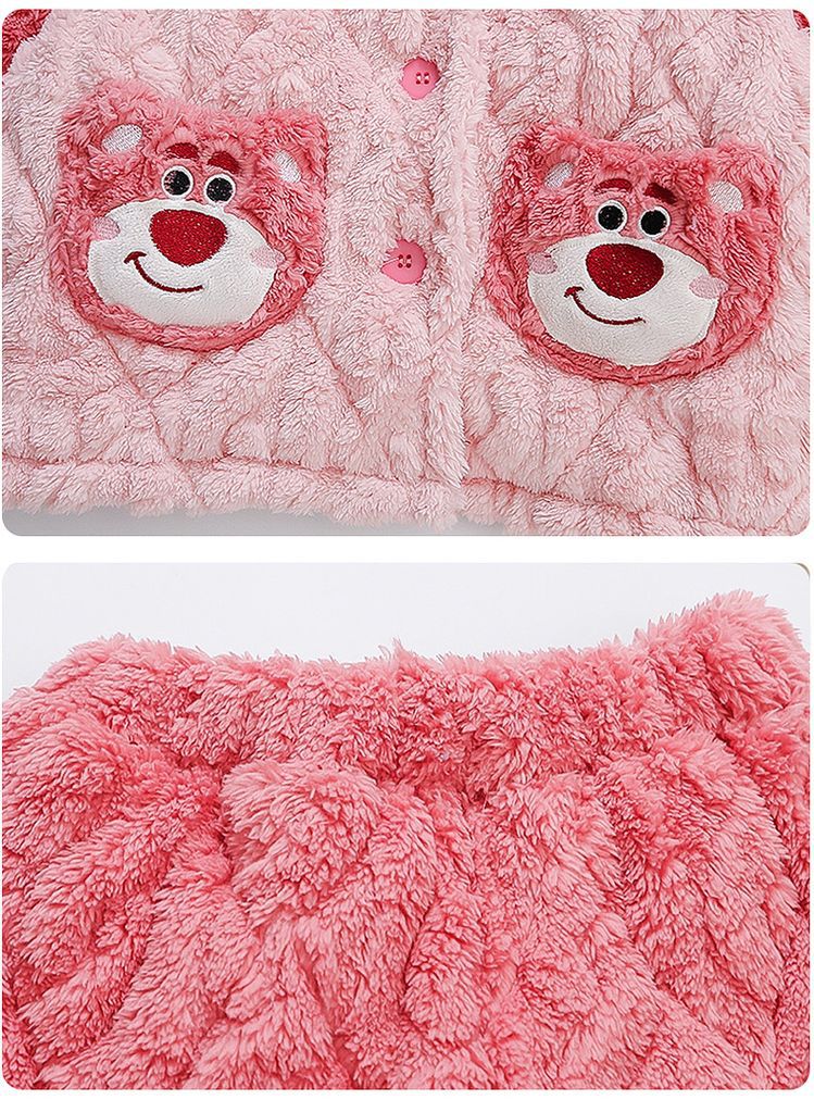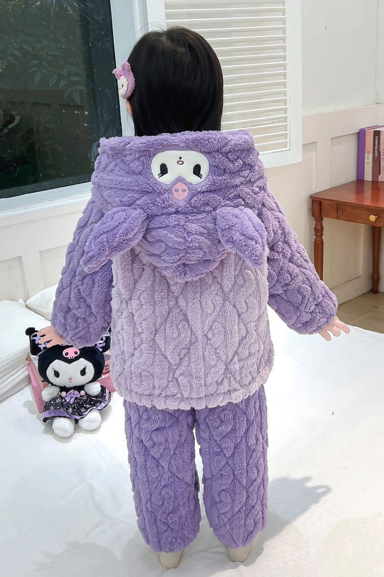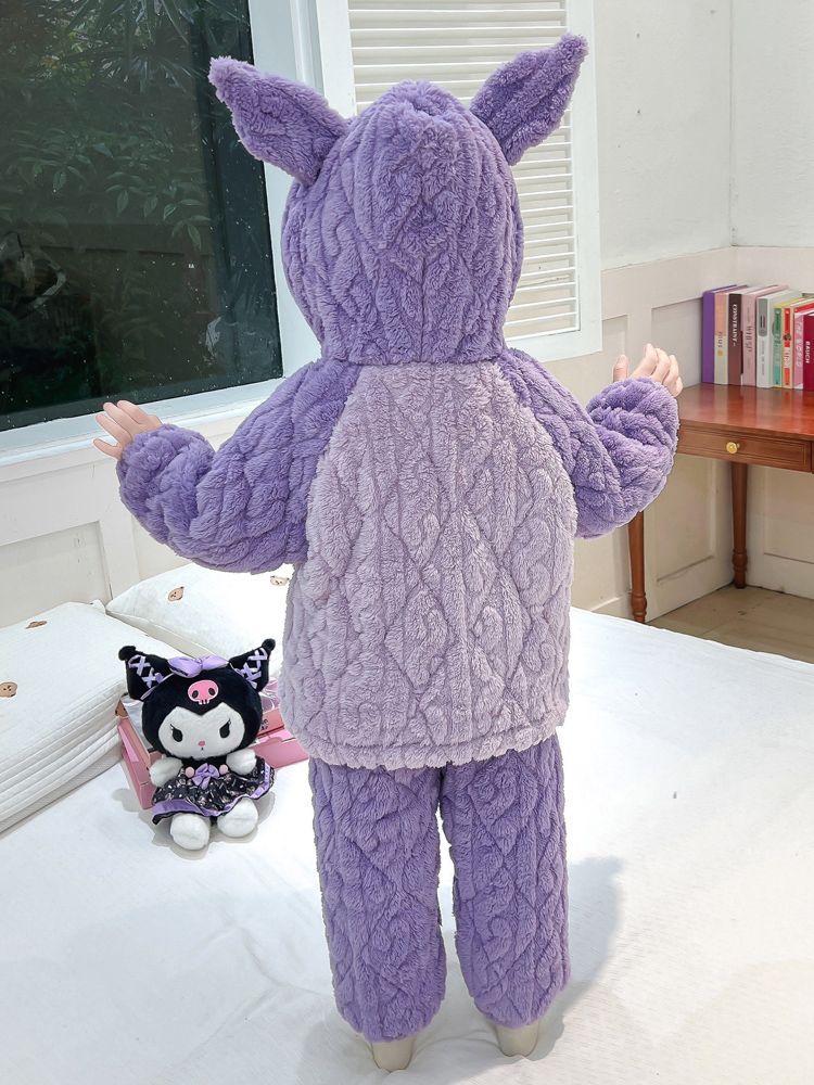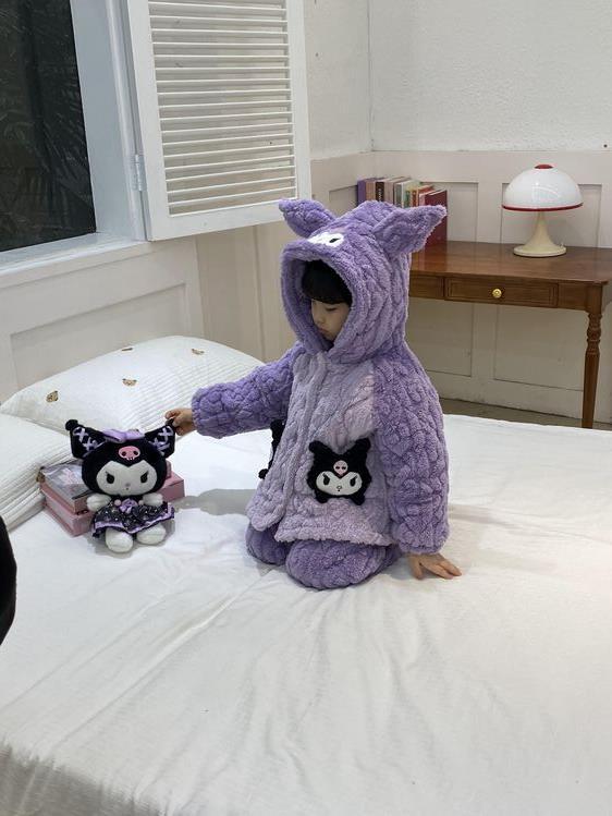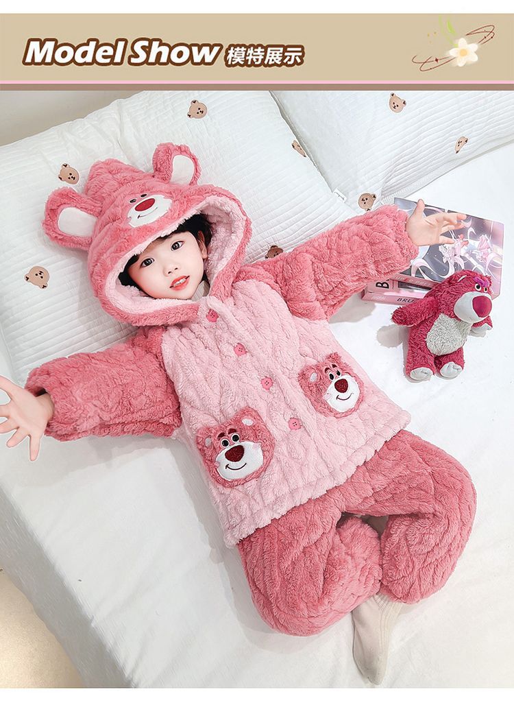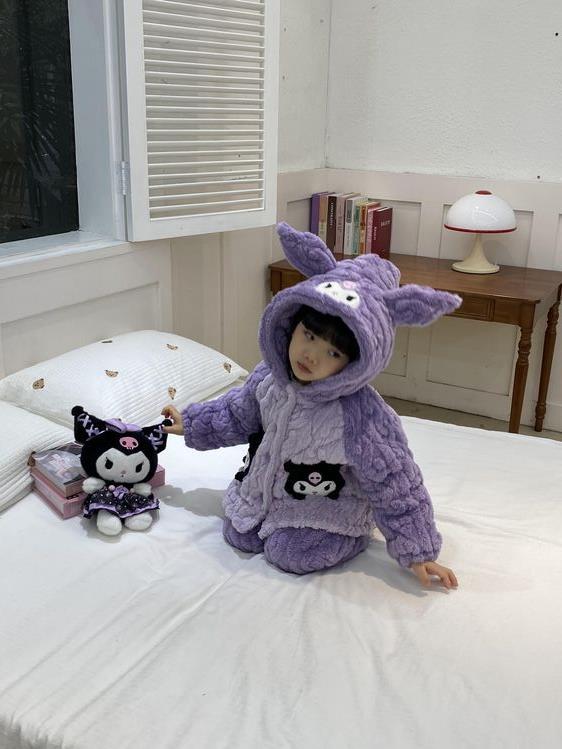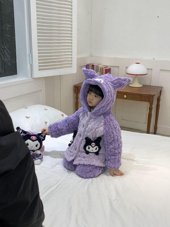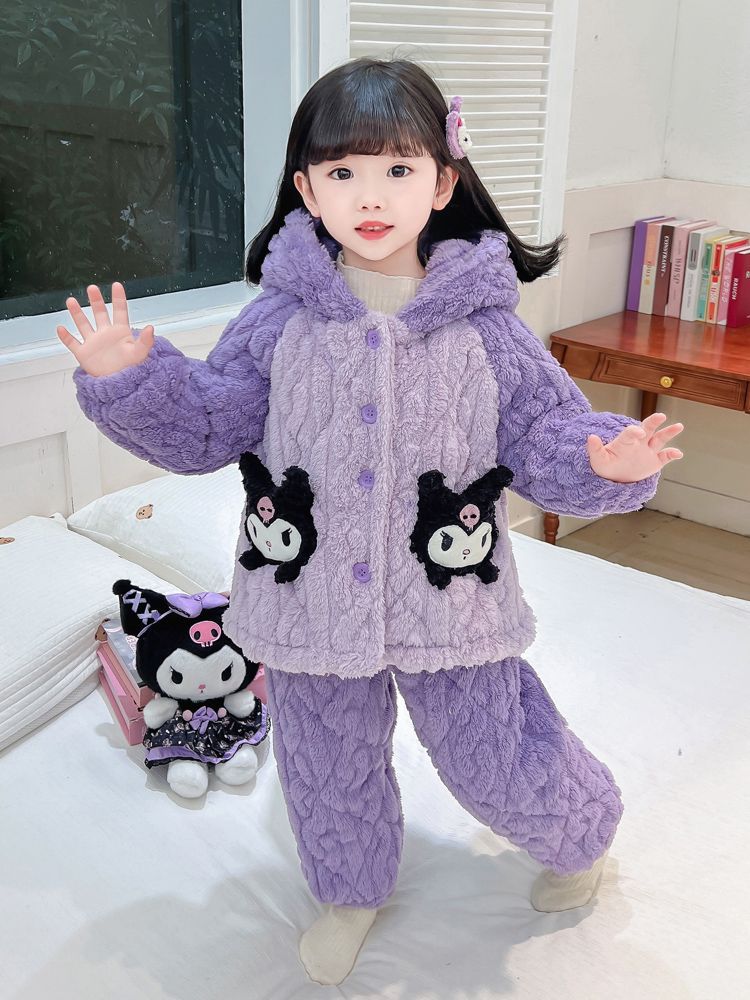 여아용 2024 겨울 잠옷 3중 누빔 코랄벨벳 세트 여아용 플러스 벨벳 두꺼운 홈웨어