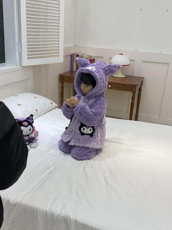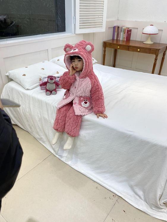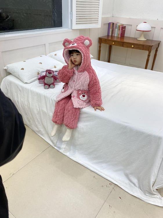 여아용 2024 겨울 잠옷 3중 누빔 코랄벨벳 세트 여아용 플러스 벨벳 두꺼운 홈웨어스토어 가기