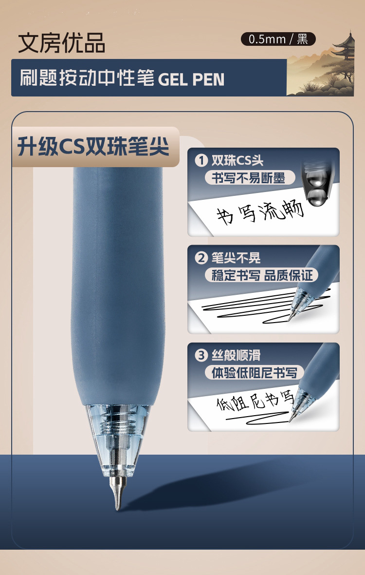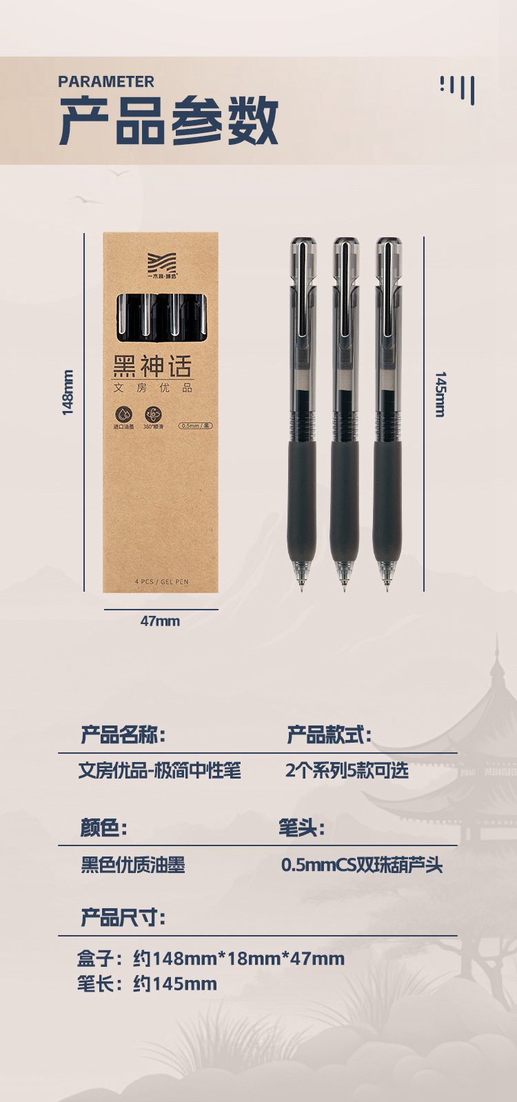 나무 숲 YML-335A 연구실 우수한 브러시 주제 프레스 젤 펜 더블 비드 CS 블랙 펜 풀 캡 브러시 주제 펜스토어 가기