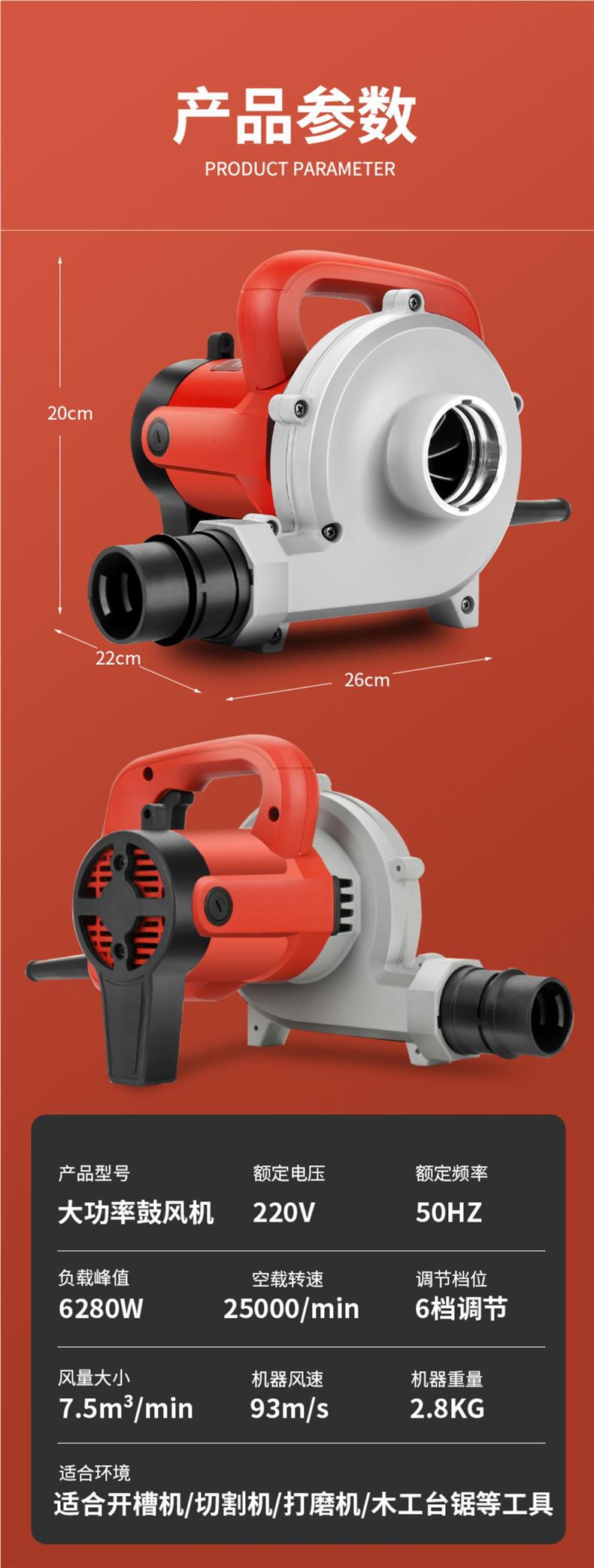 • 10m 튜브 알루미늄 본체, 이중층 알루미늄 팬 블레이드를 갖춘 다용도 모델 6280w(그라인더 전용)