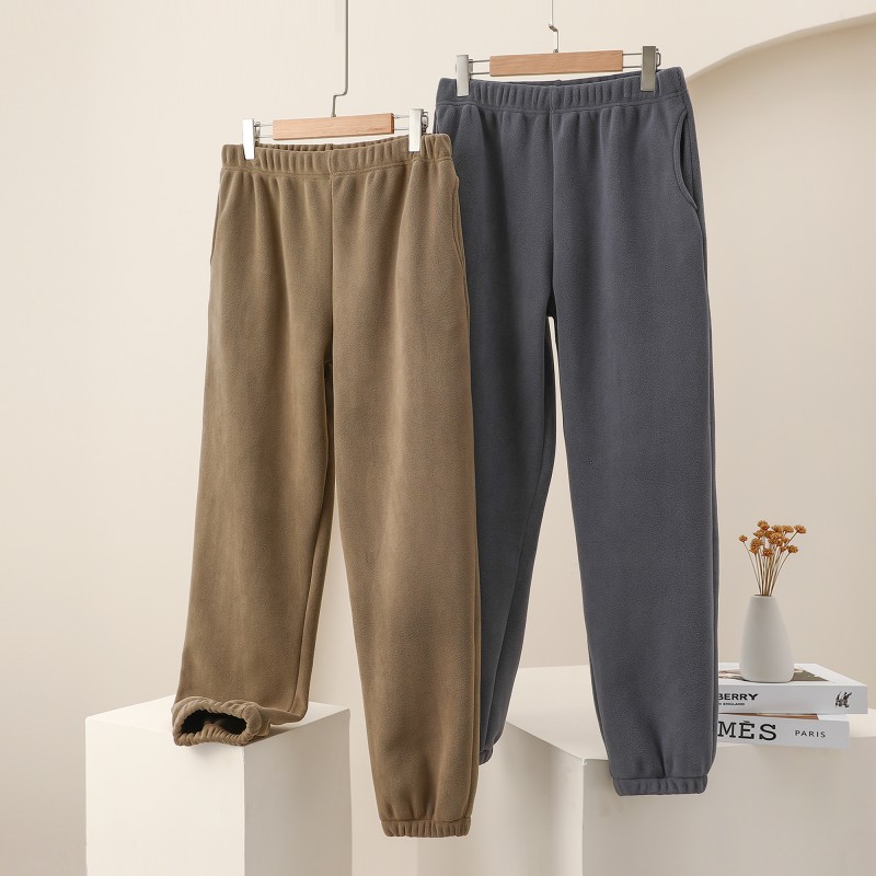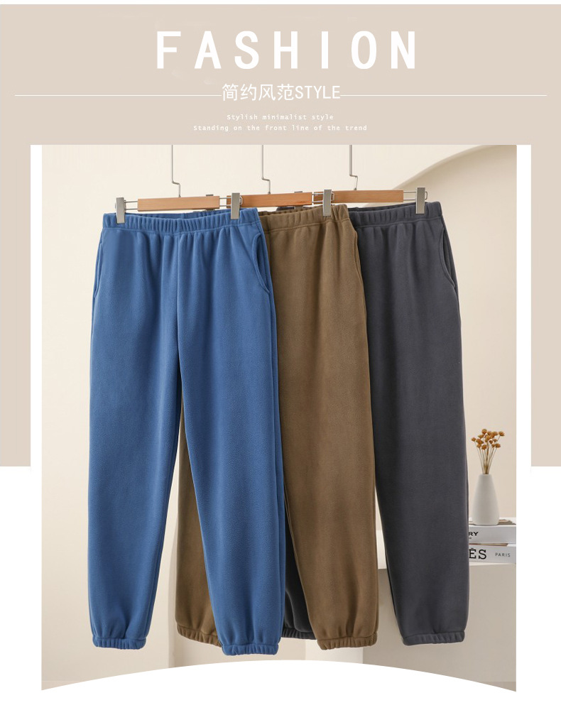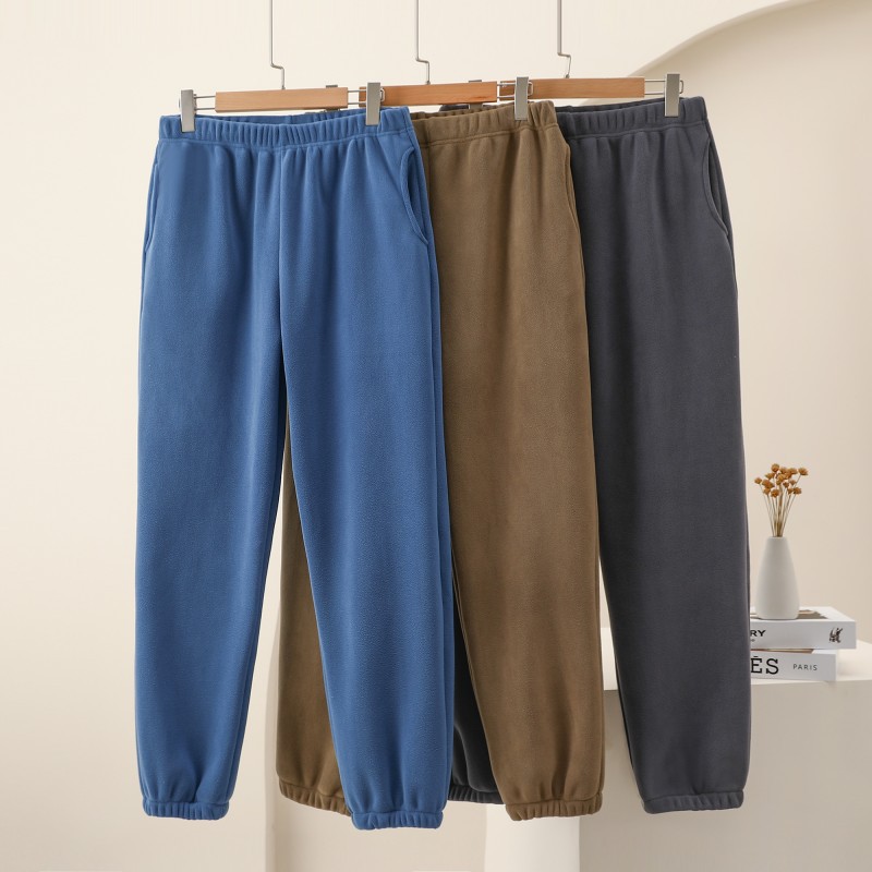 Ao Grain Fleece 남성용 두꺼운 감기 방지 따뜻한 캐주얼 바지 가을과 겨울 발 발가락 스포츠 바지 느슨한 올 매치 포켓 바지