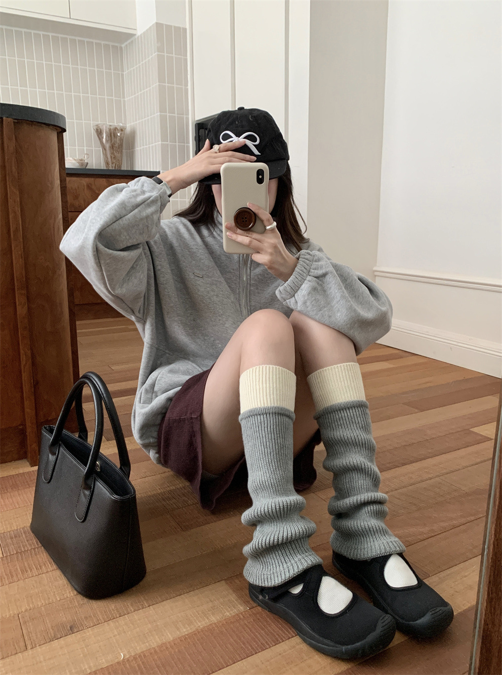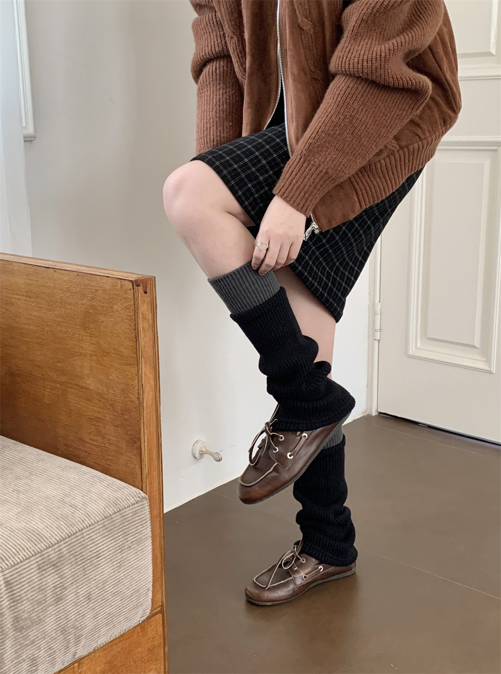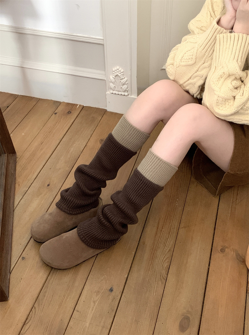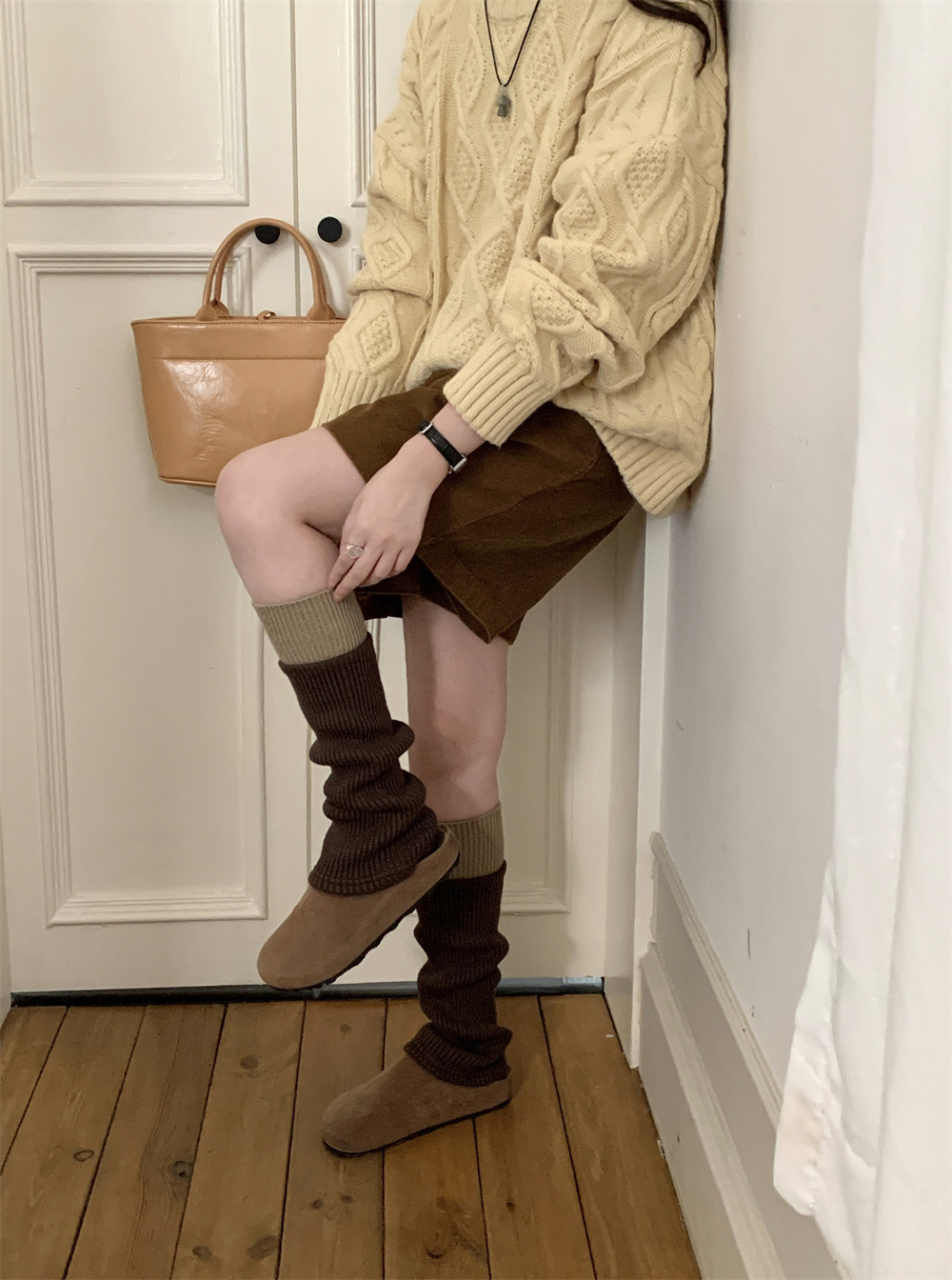 디자인 니트 양 울 다크 브라운 바느질 양모 양말 게으른 바람 벨 입 따뜻한 송아지 힙 다리 커버