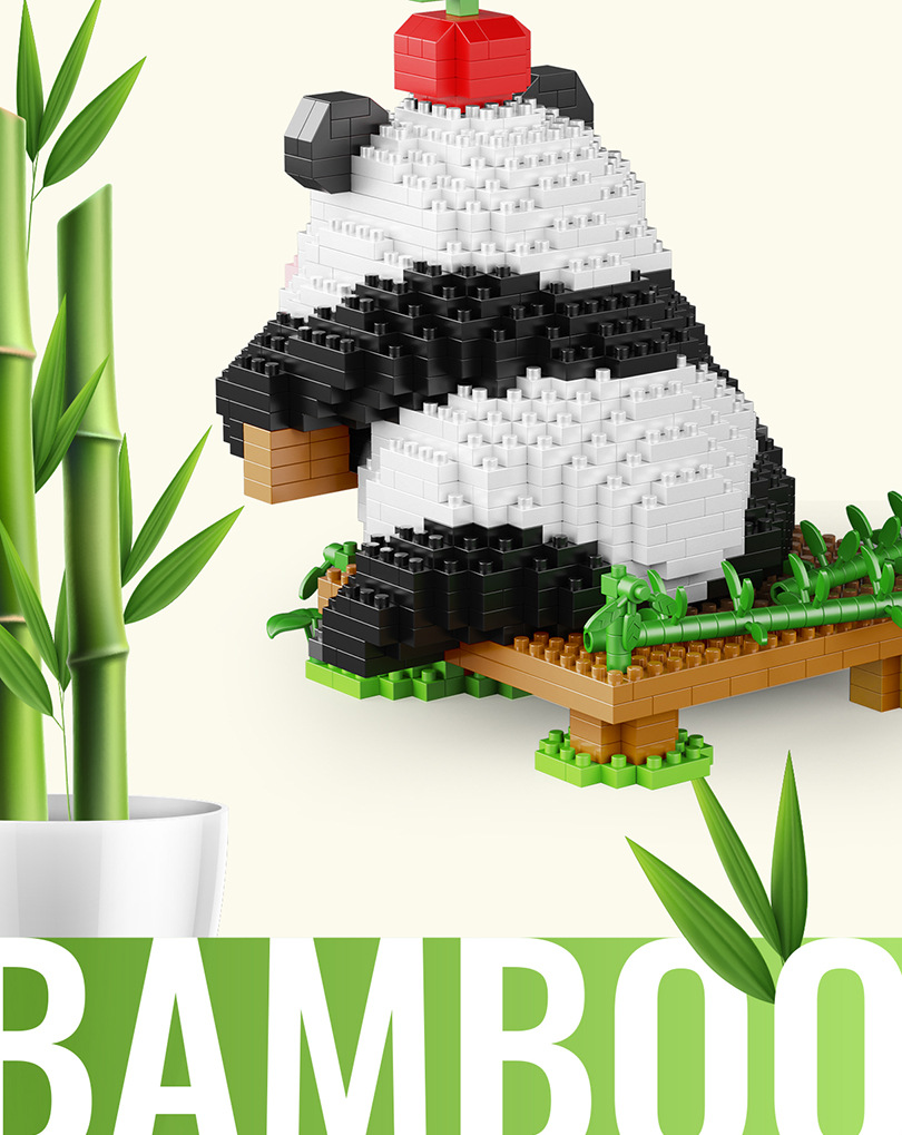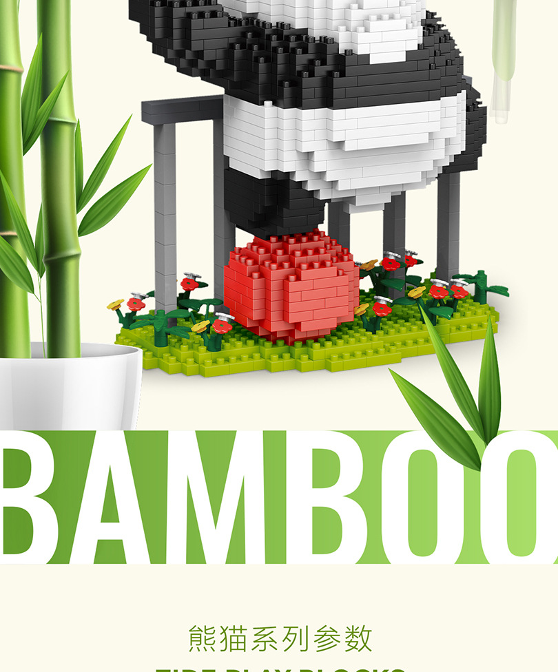 [도매세대] 판다 꽃 Meng Lan Fubao 빌딩 블록 어린이 소녀 교육 조립식 스톨 장식품 장난감