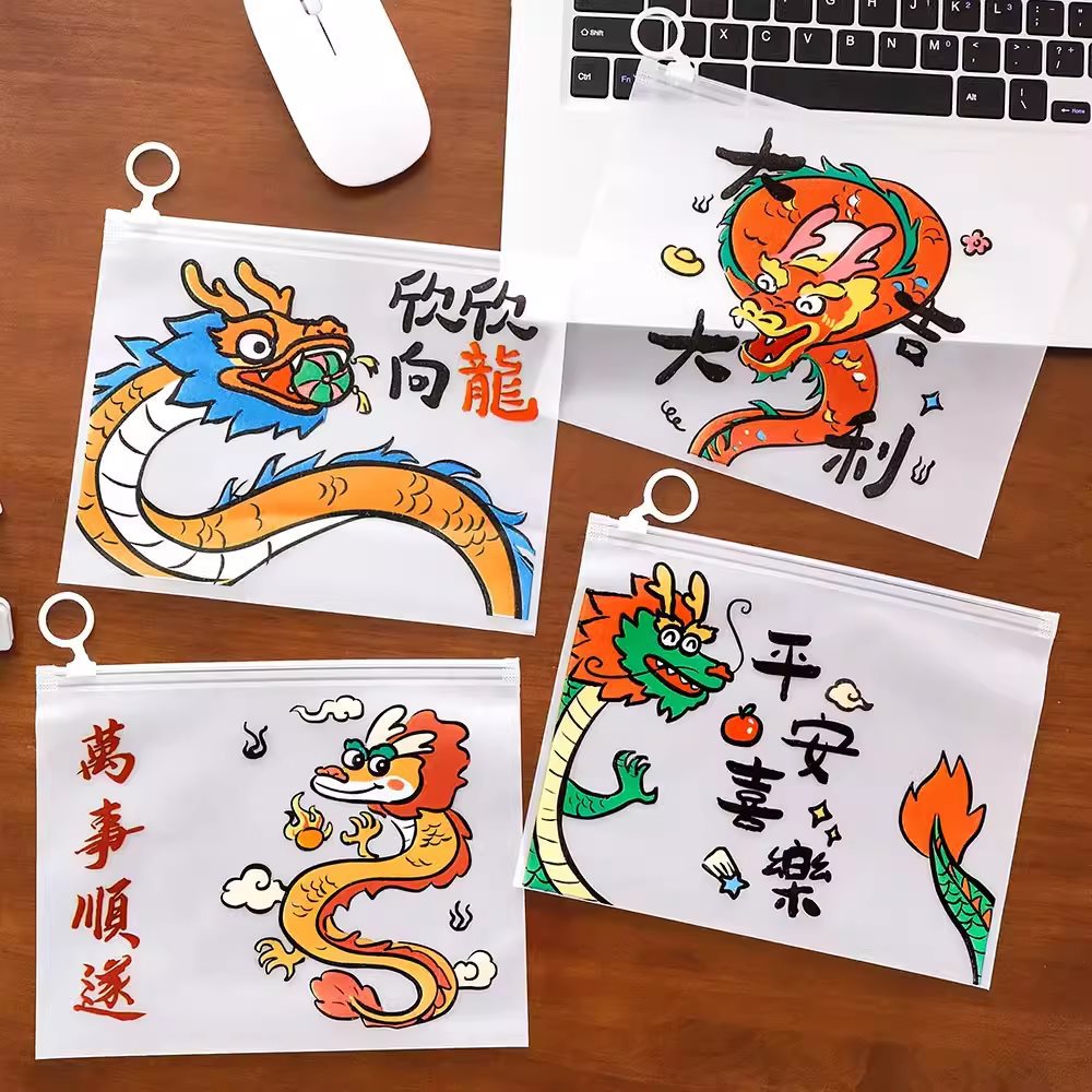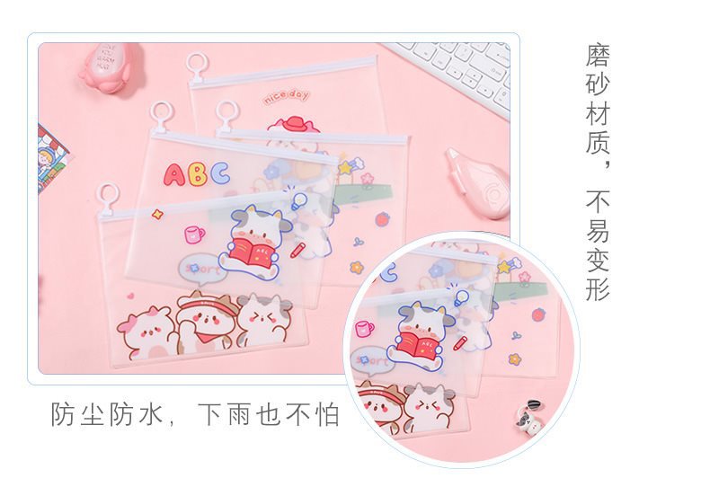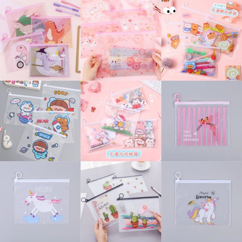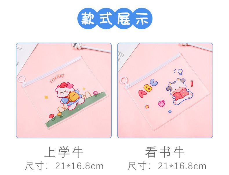 문서 가방 만화 창조적 인 학생 문구 보관 반지 지퍼 가방 방수 파일 가방 투명 정보 가방 도매스토어 가기