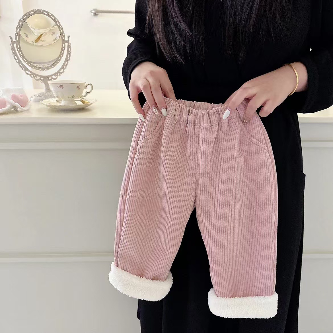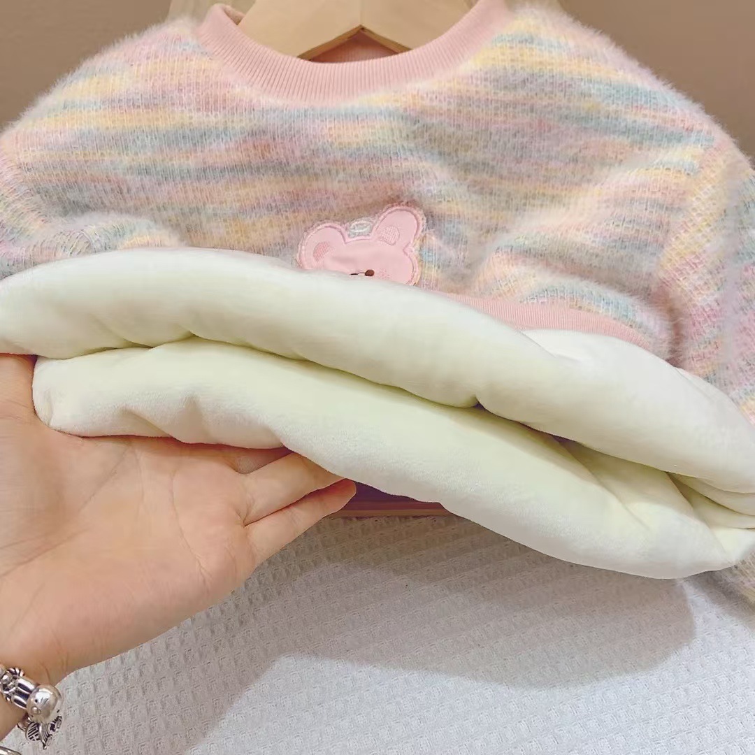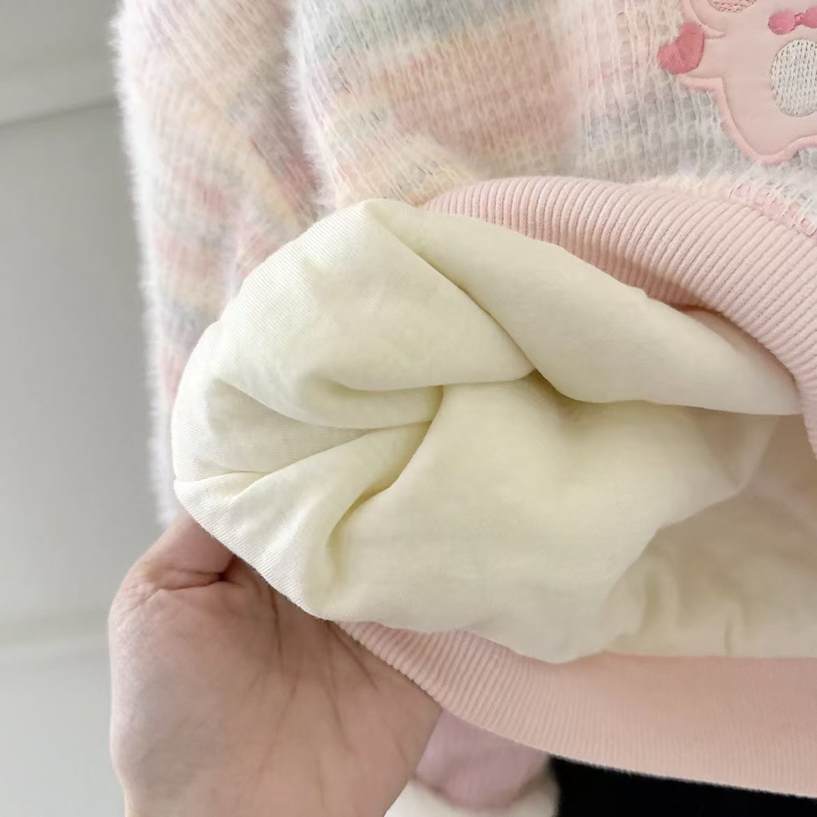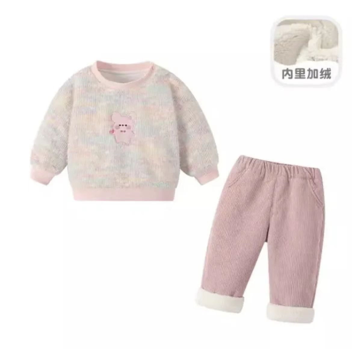 여자 2024 겨울 새로운 한국 사랑 기모 두껍게 세트 아기 소녀 새로운 스웨터 캐주얼 바지 투피스 세트