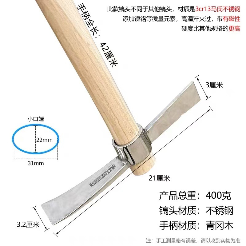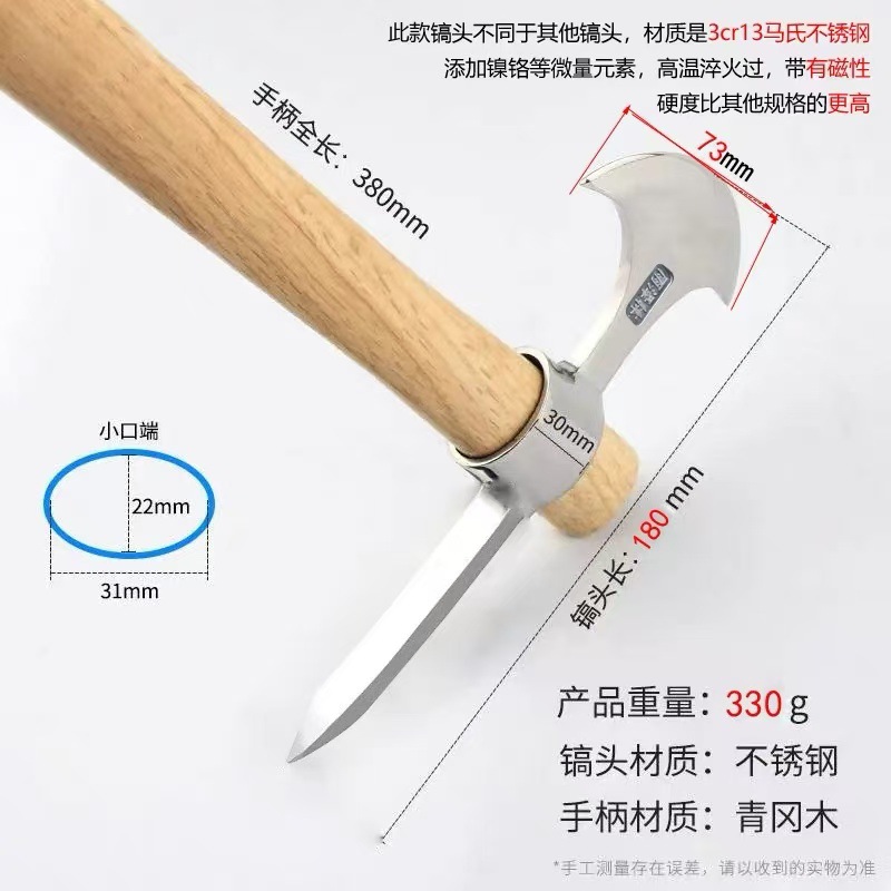 • 스테인레스 도끼 픽 [나무 손잡이로 두꺼워짐]