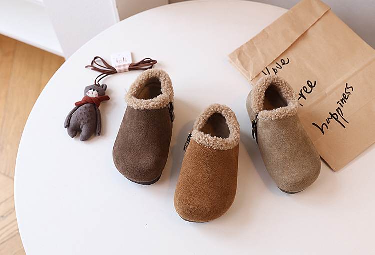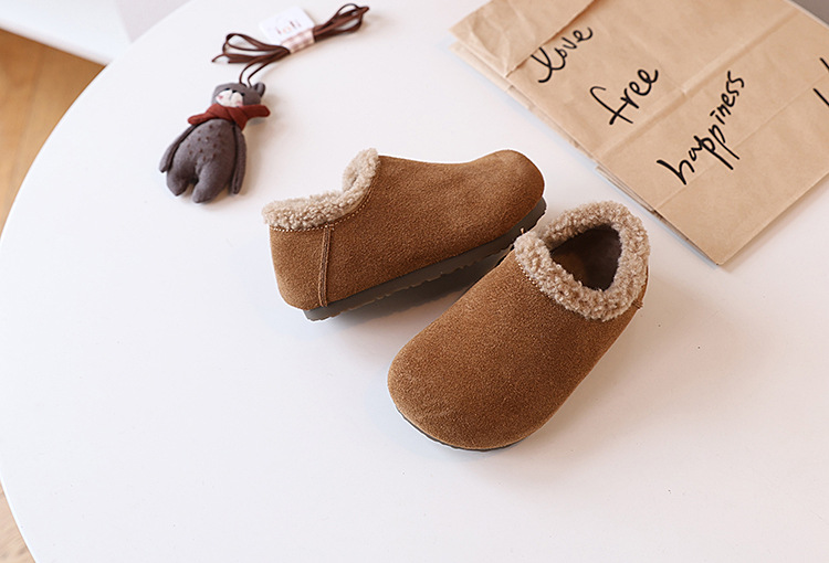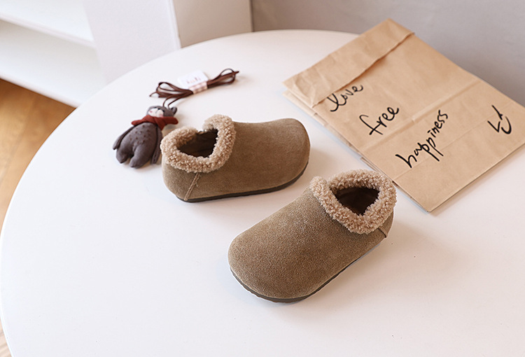 따뜻한 소년의 면화 신발 기모 어린이 출생 신발 미끄럼 방지 아기 신발 겨울 눈 코튼 신발 소녀 완두콩 신발