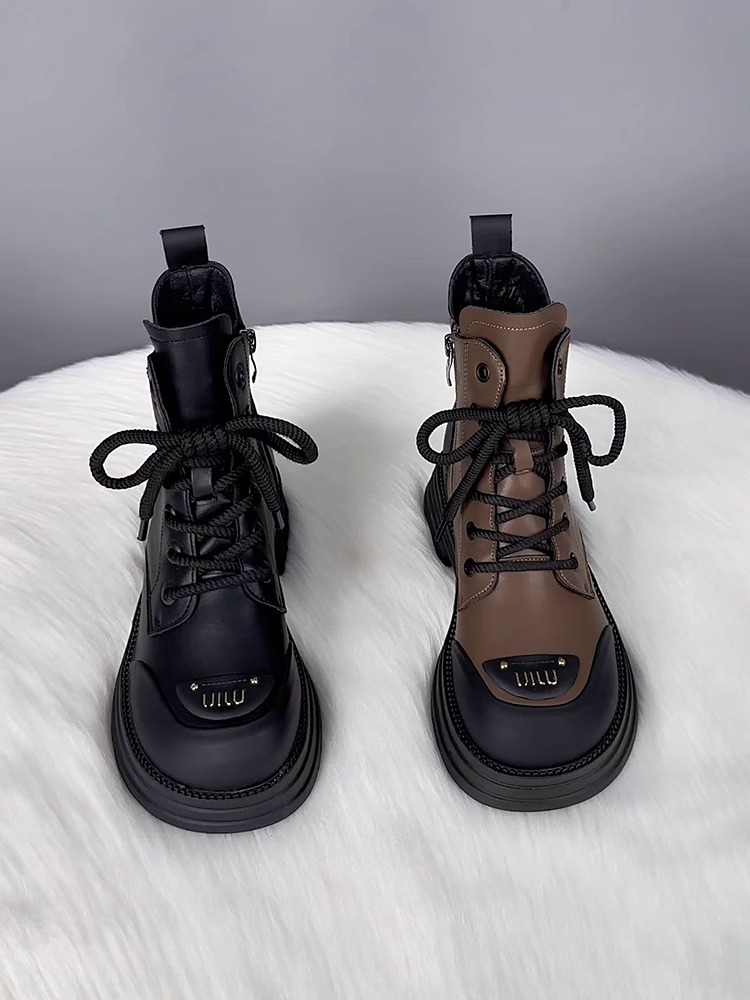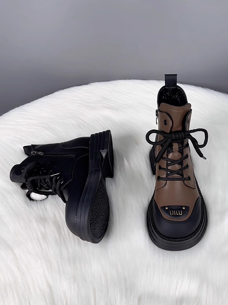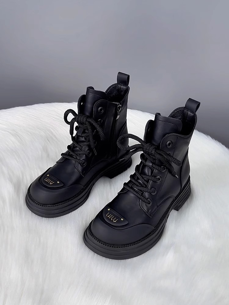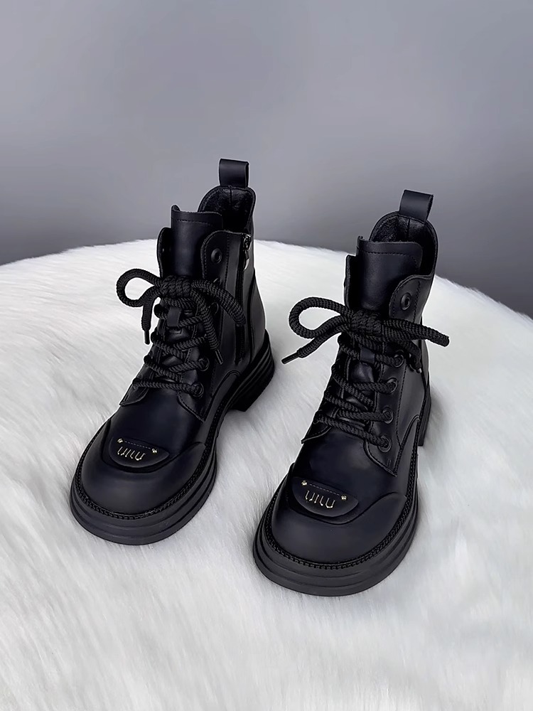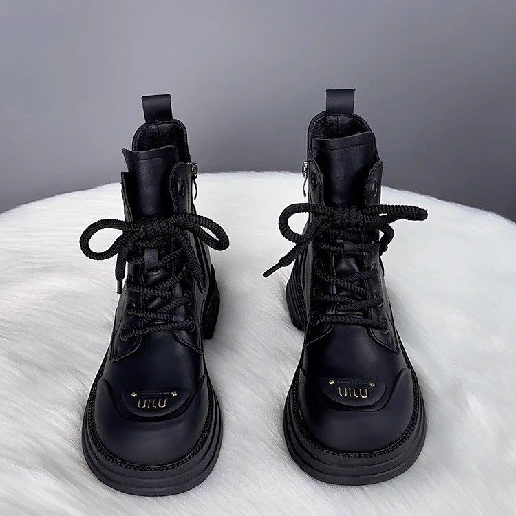 2025년 신상 소프트 가죽 두꺼운 밑창 마틴 부츠 여성용 가을 겨울 다용도 영국 스타일 레이스업 키높이 패션 레트로 숏부츠스토어 가기