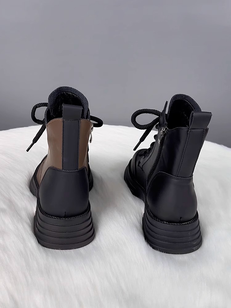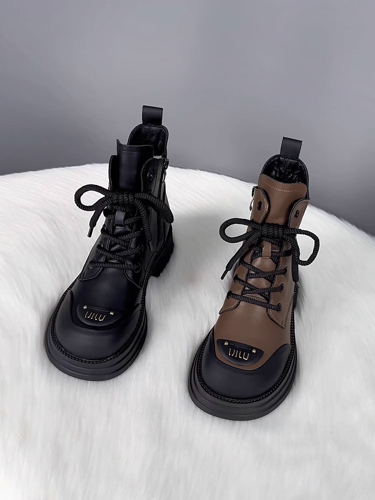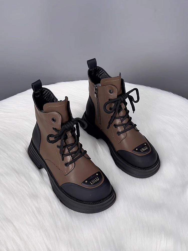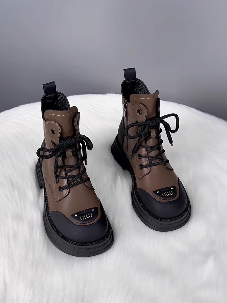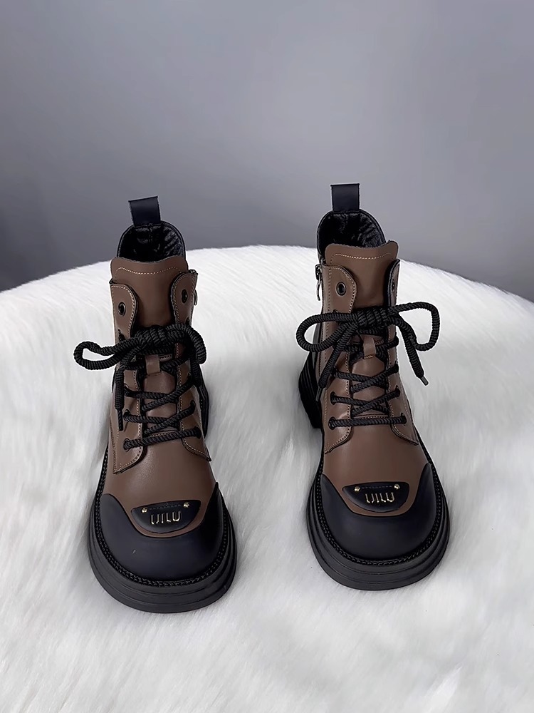 2025년 신상 소프트 가죽 두꺼운 밑창 마틴 부츠 여성용 가을 겨울 다용도 영국 스타일 레이스업 키높이 패션 레트로 숏부츠스토어 가기