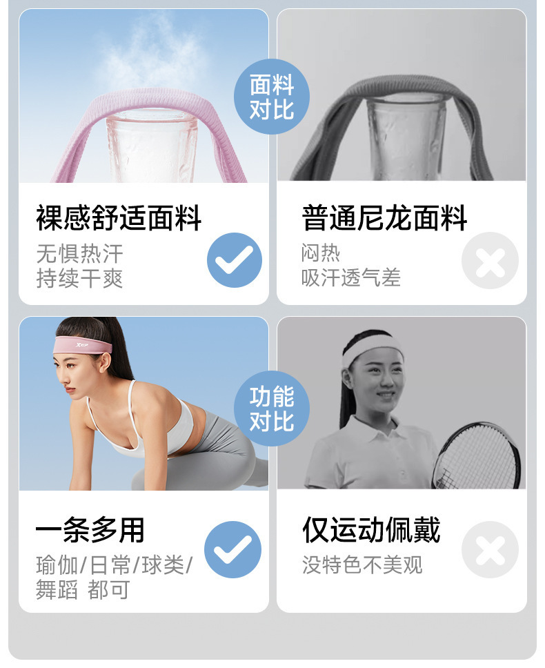 Xtep 스포츠 헤어밴드 헤드밴드 피트니스 미끄럼 방지 통기성 땀 흡수 땀 방지 밴드 땀 유도 헤어밴드 러닝 배드민턴 농구