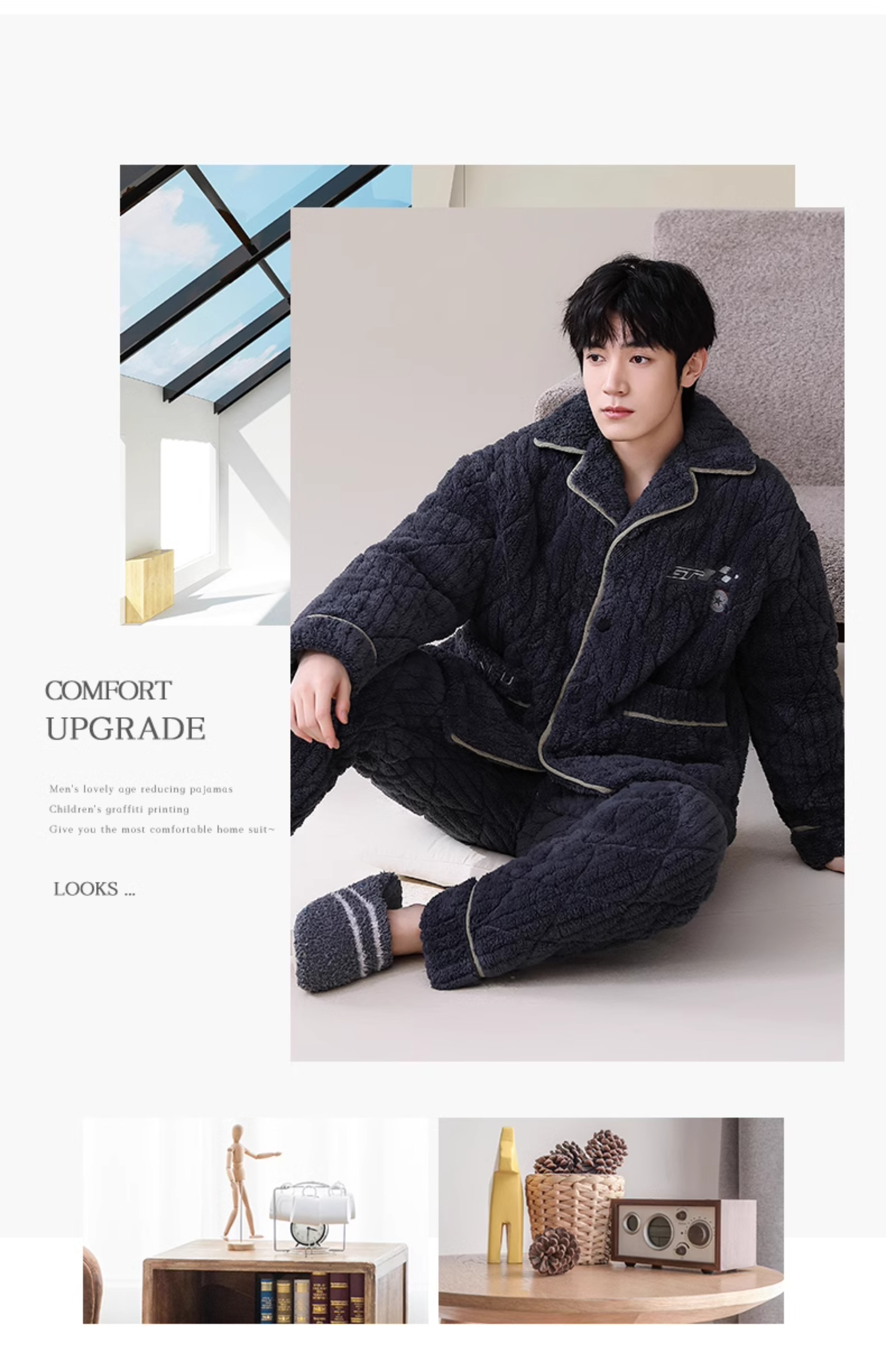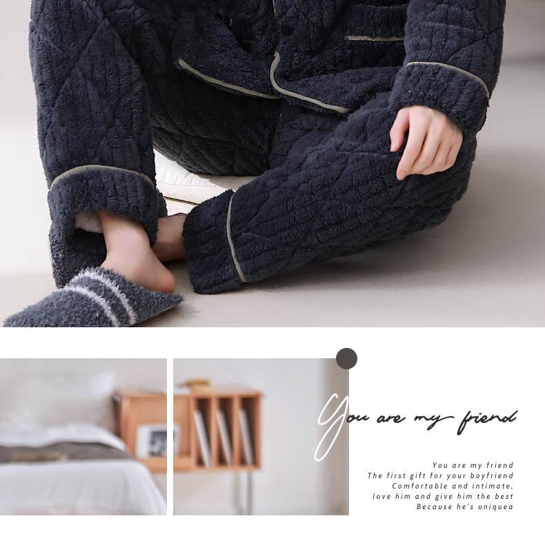 남자 잠옷 겨울 산호 양털 기모 가을과 겨울을위한 두꺼운 3 층 면 따뜻한 느슨한 청소년 홈 옷스토어 가기