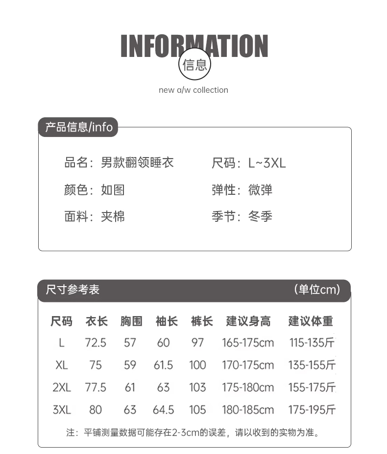 • 남성 3XL (권장 키 180-185cm, 몸무게 87.5-110kg )