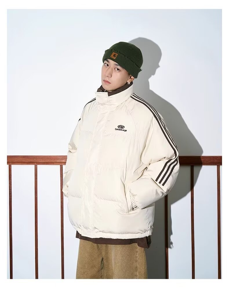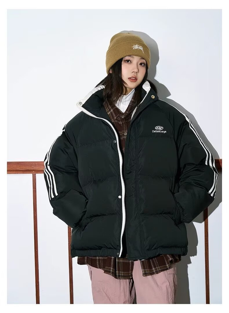 수직 칼라 대비 컬러 스티칭 3 바면 패딩 재킷 커플 2024 새로운 겨울 코트 느슨한면 패딩 재킷 빵 의류스토어 가기