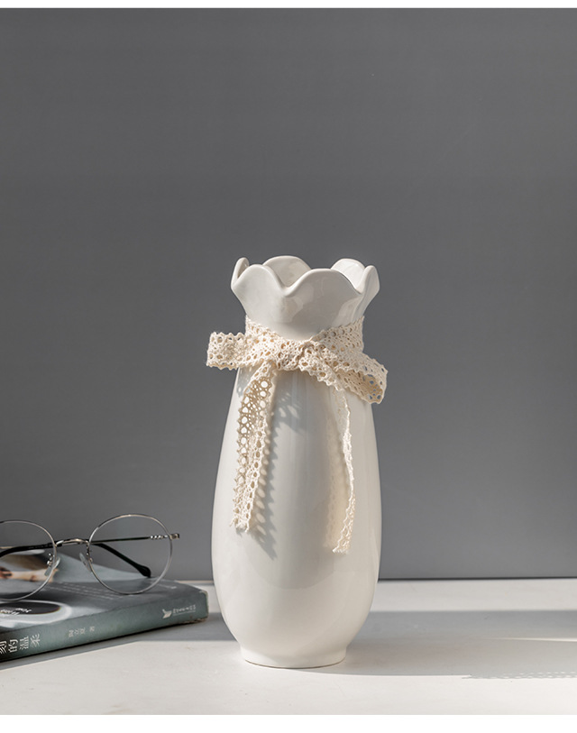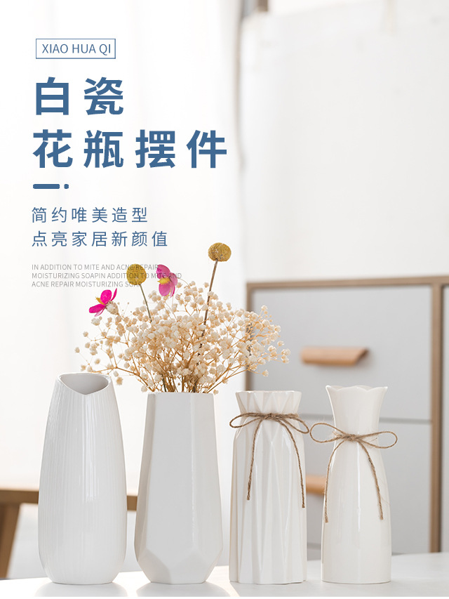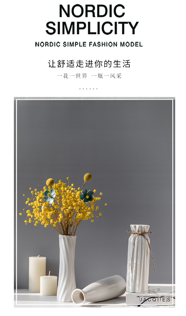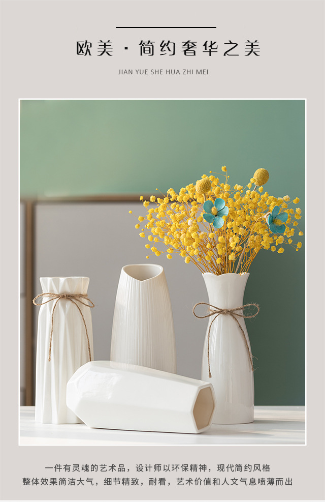 흰색 간단한 세라믹 꽃병 물 올리기 북유럽 현대 창조적 인 홈 거실 식탁 말린 꽃 꽃 장식 장식품