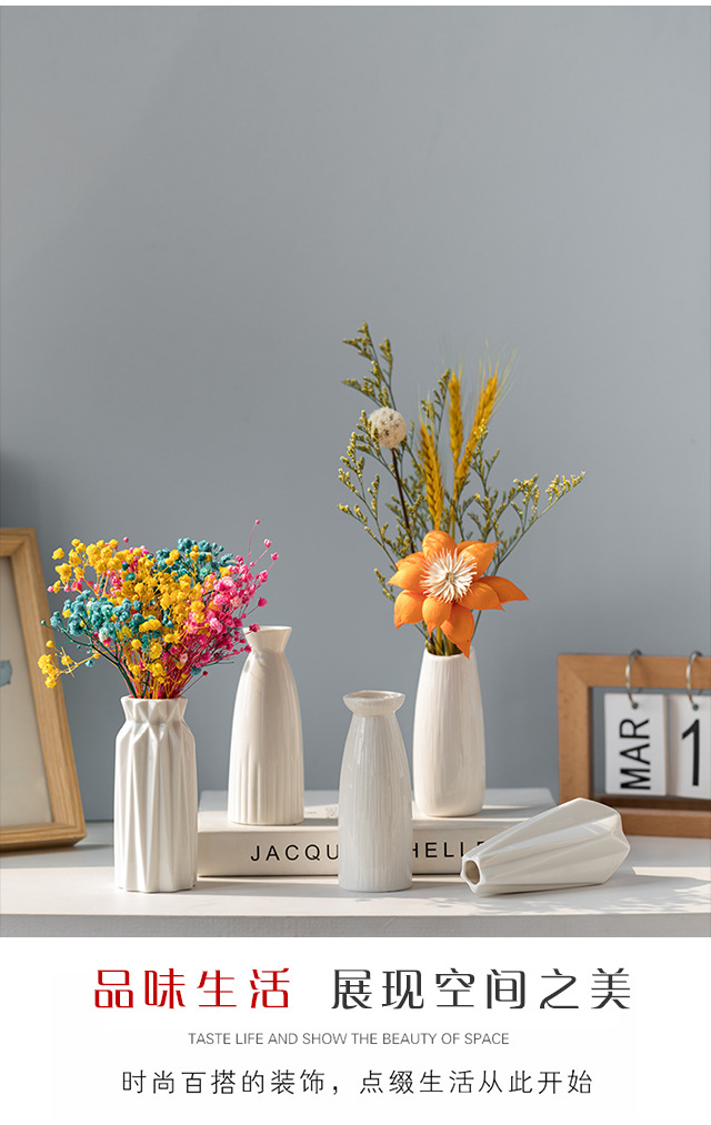 흰색 간단한 세라믹 꽃병 물 올리기 북유럽 현대 창조적 인 홈 거실 식탁 말린 꽃 꽃 장식 장식품스토어 가기