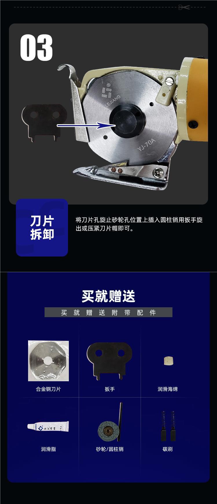 정통 Lejiang YJ-70 휴대용 전기 가위 전기 둥근 칼 절단 기계 천 절단 기계 헝겊 절단 기계 Lejiang스토어 가기