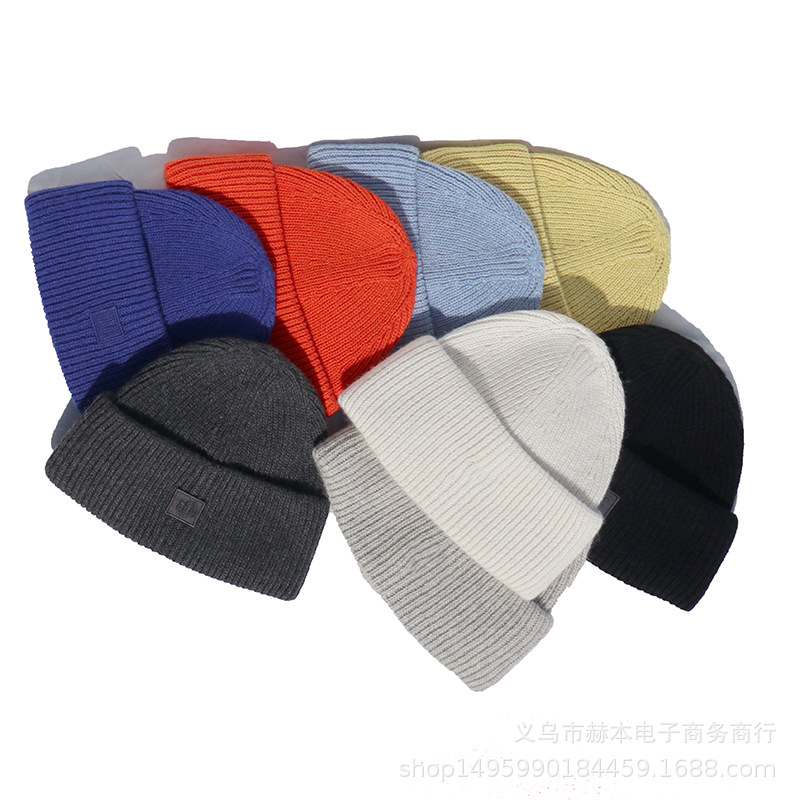 2024 새로운 울 작은 라벨 스마일리 니트 멜론 모자 양모 따뜻한 큰 아이들 니트 모자 모자 모자스토어 가기