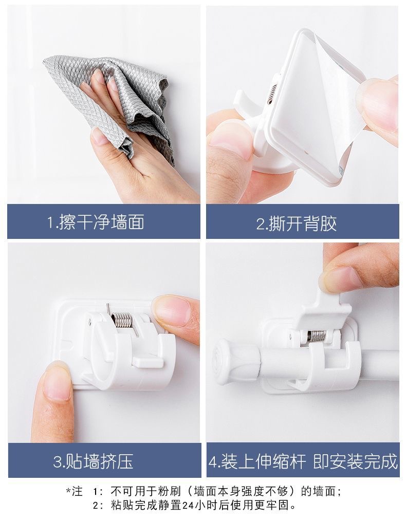 커튼로드 후크 커튼 로드 클램프 리테이너 펀치 프리 접착 브래킷 클립 크로스바 도어 커튼 텔레스코픽 로드 훅스토어 가기