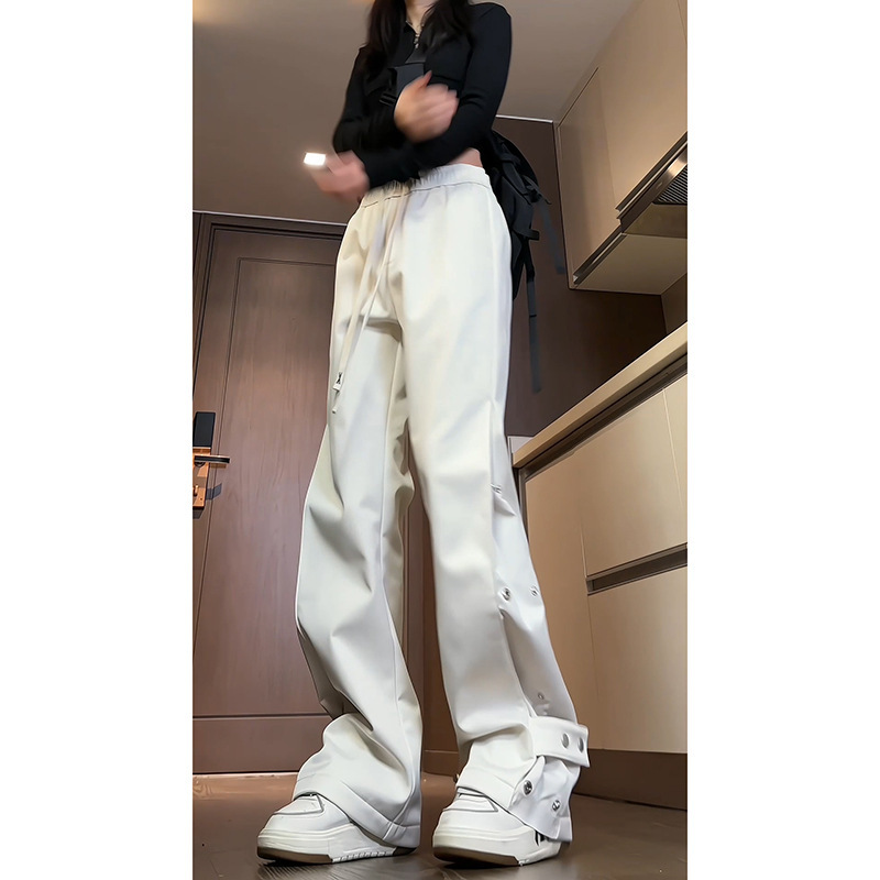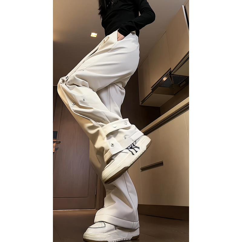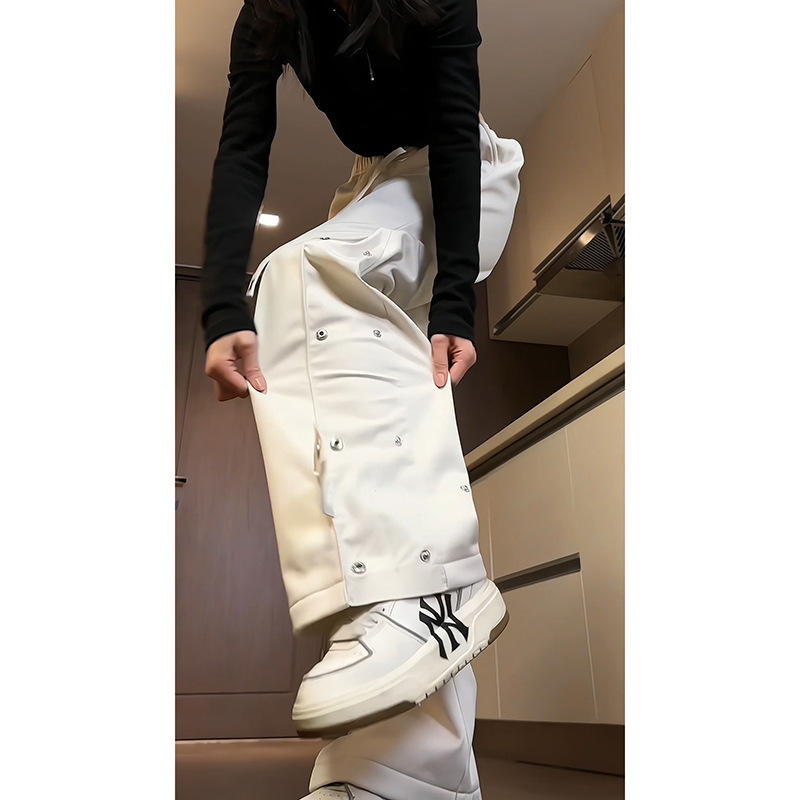 남성과 여성을위한 국경 간 충전 바지 가을 및 겨울 새 기모 두꺼운 버클 크레인 바지 미국식 하이 스트리트 바이브 롱 바지