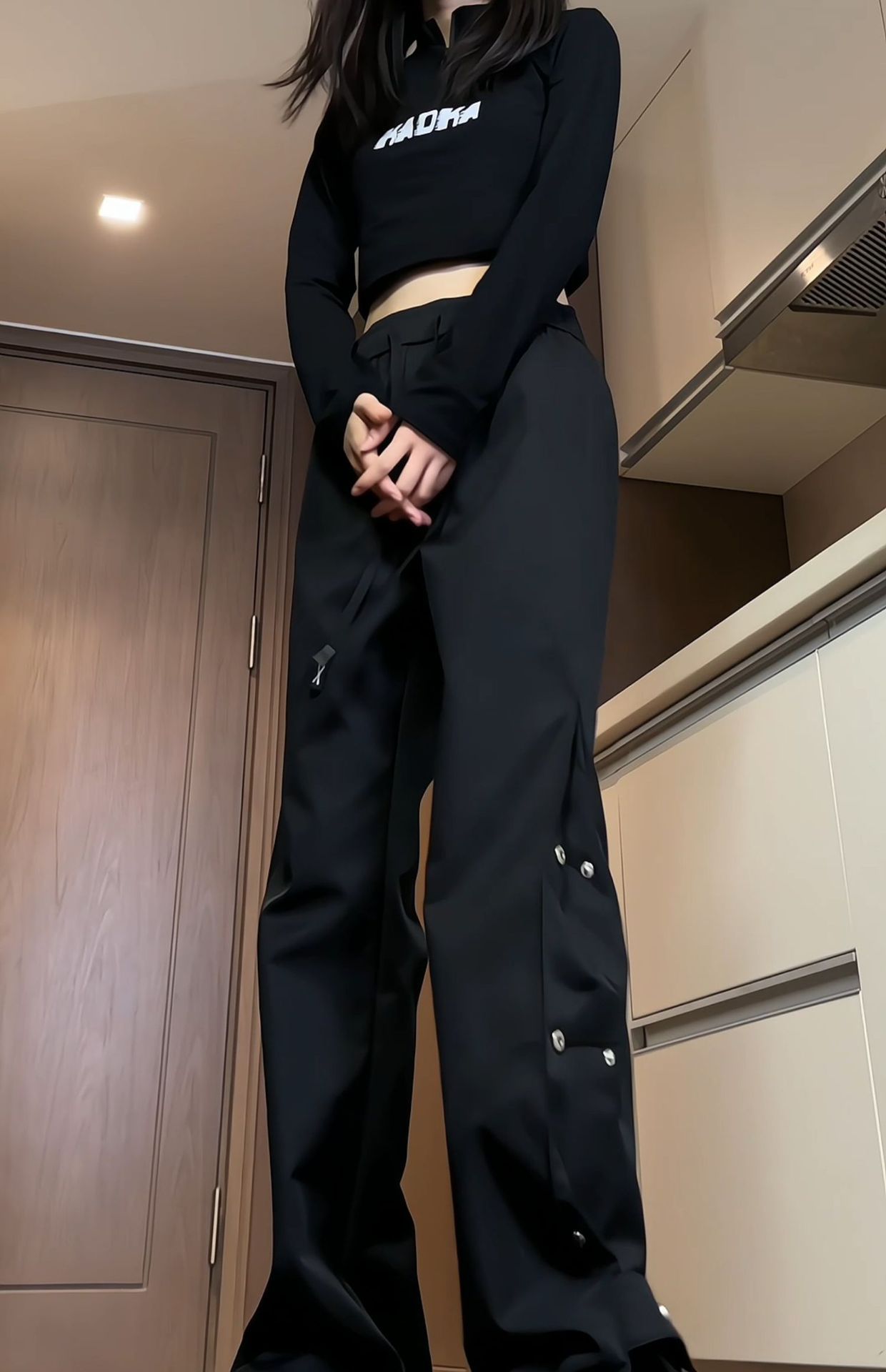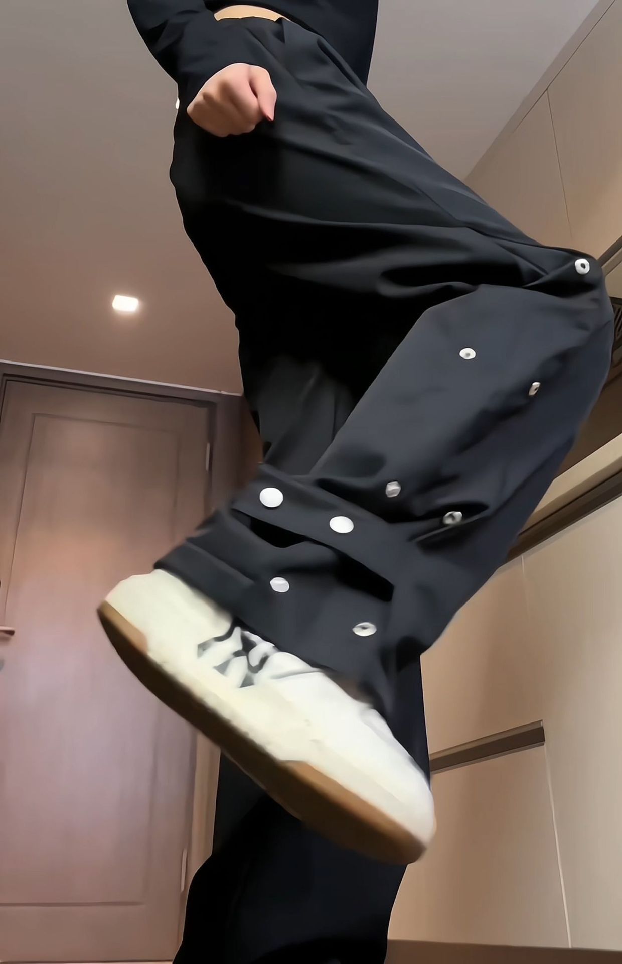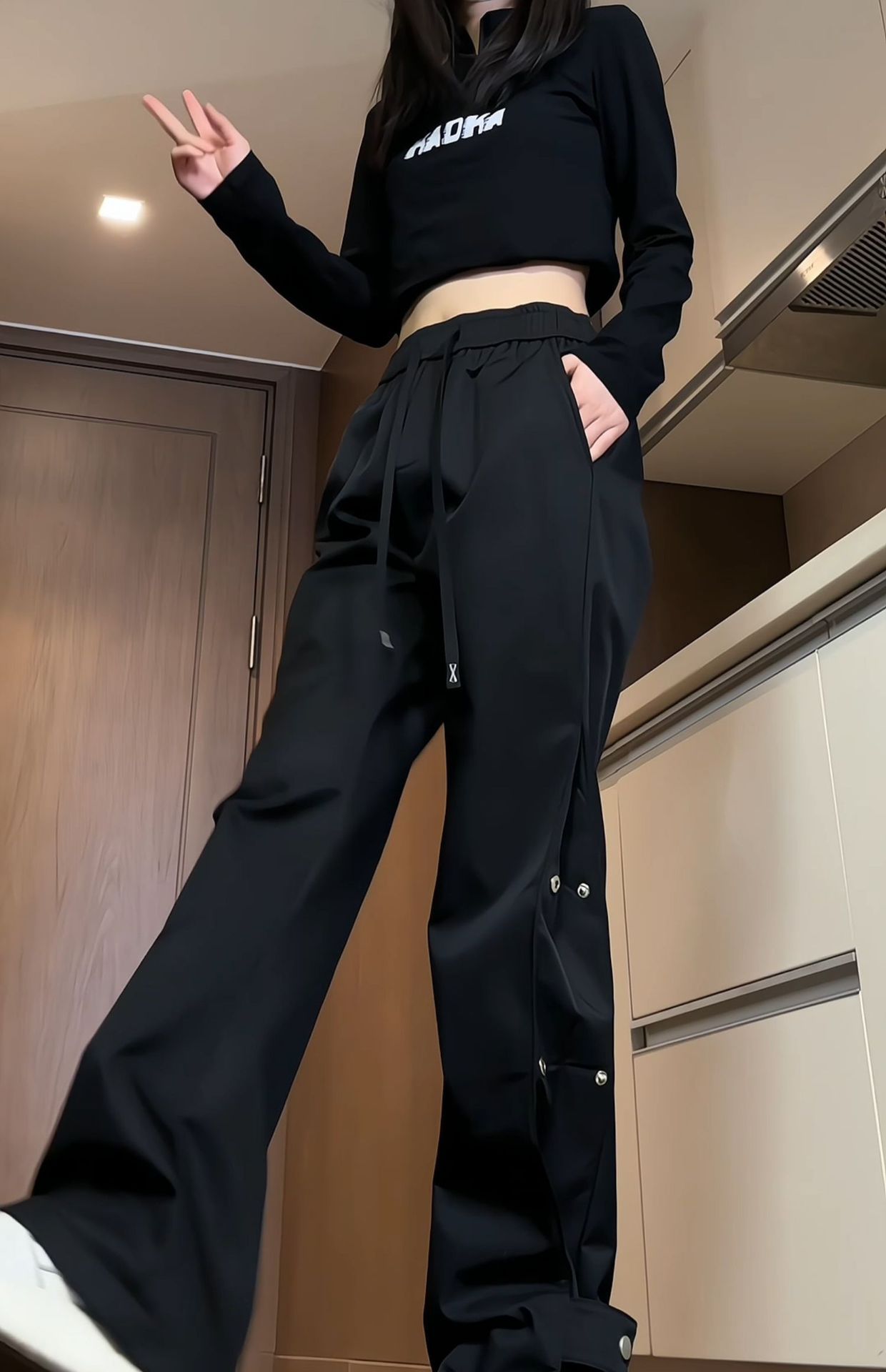 남성과 여성을위한 국경 간 충전 바지 가을 및 겨울 새 기모 두꺼운 버클 크레인 바지 미국식 하이 스트리트 바이브 롱 바지스토어 가기