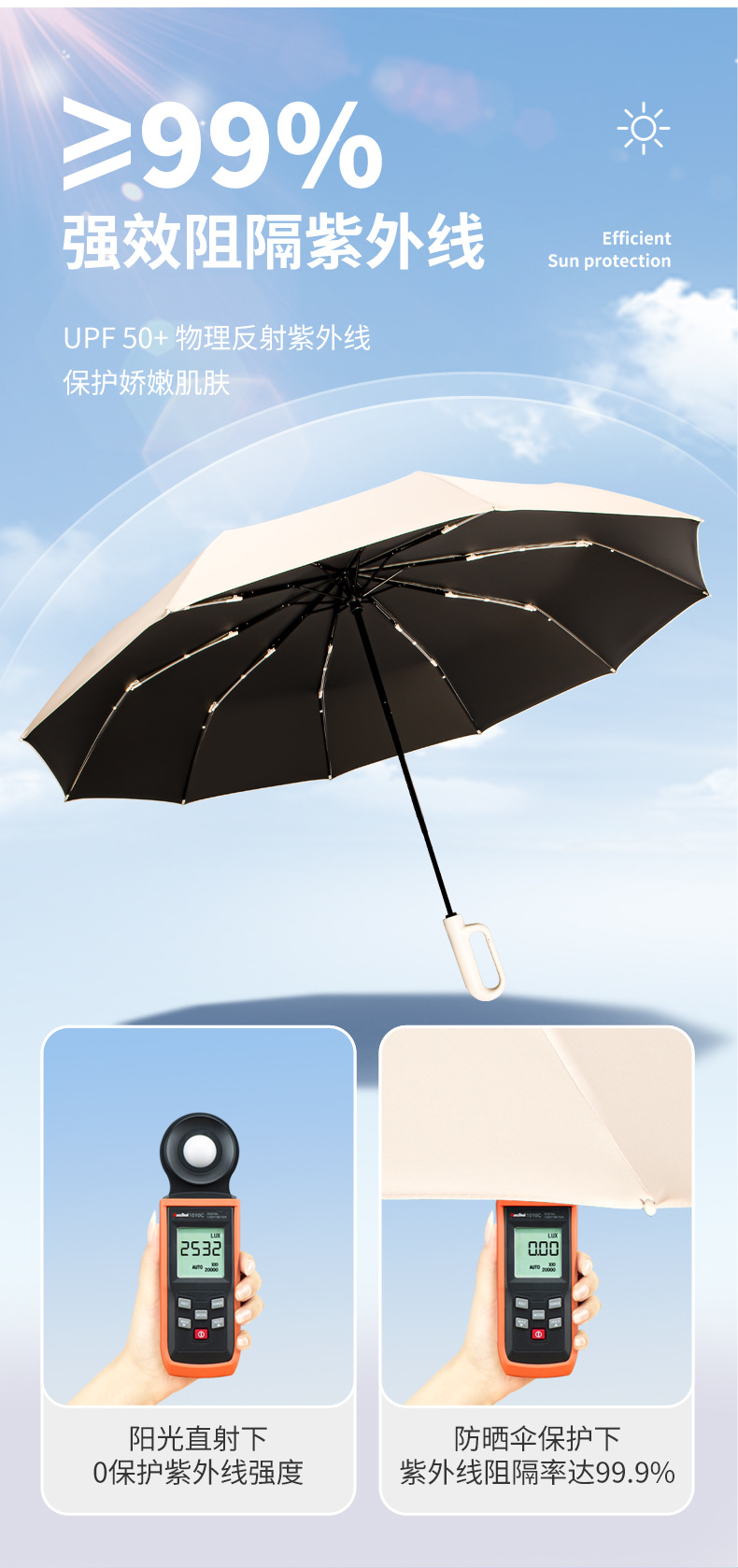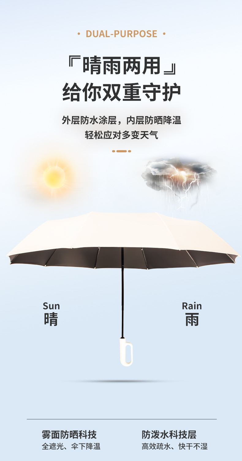 두꺼운 대형 양산, 햇빛 가리개, 비 오는 날에도 사용 가능, 여성용 자동 접이식, 자외선 차단, 도매, 인기 판매, 고리형