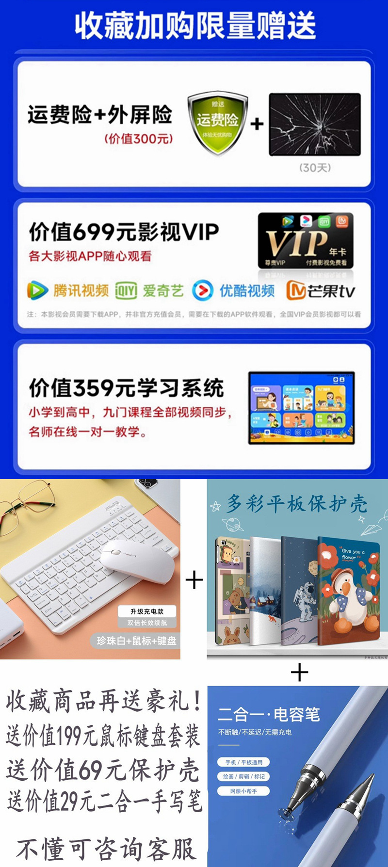 • 16G 실행 + 512G 메모리/고급 버전에는 Bluetooth 마우스, 키보드, 가죽 케이스 스타일러스가 함께 제공됩니다.