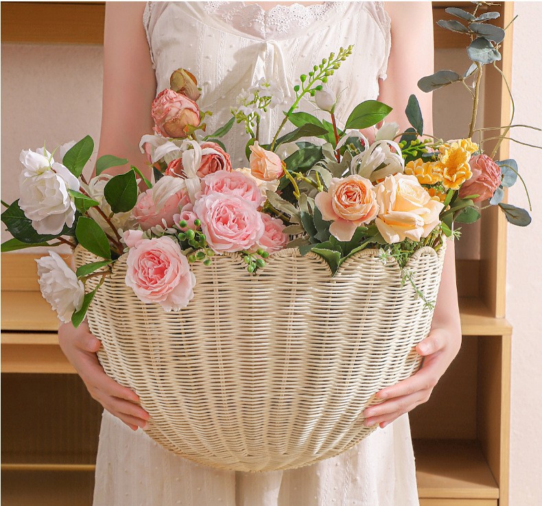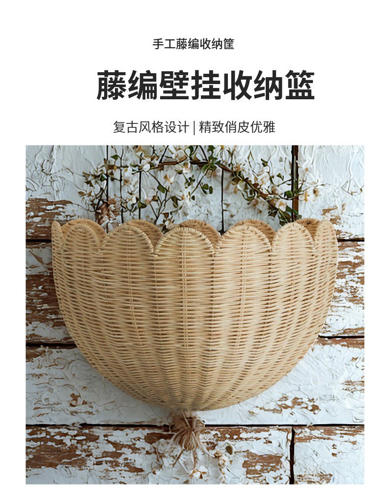 목가적 인 스타일 등나무 벽걸이 키 보관 바구니 홈 홈스테이 장식 장난감 잡화 보관 바구니 손으로 짠 바구니