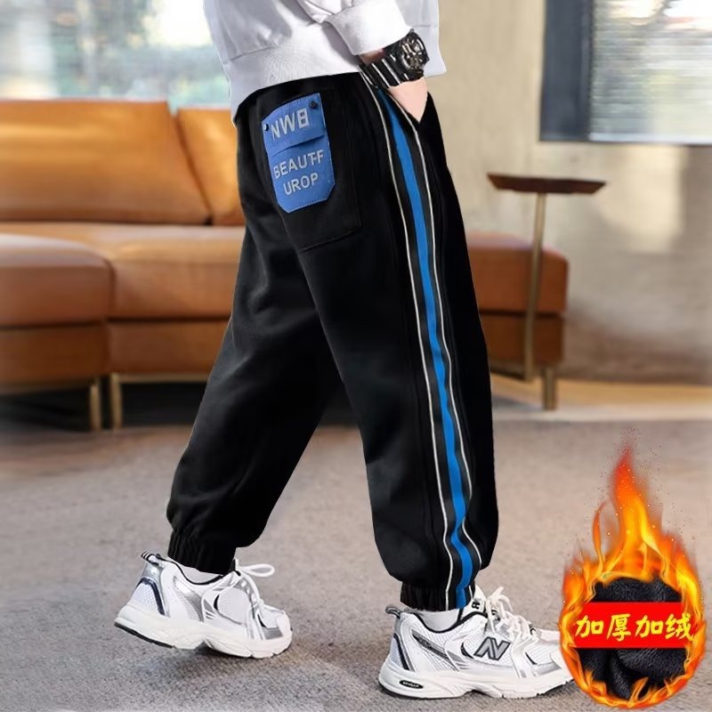 아동복 소년 가을 바지 2024 기모 중대형 어린이 가을 스포츠 바지 바지 소년 봄과 가을 운동복