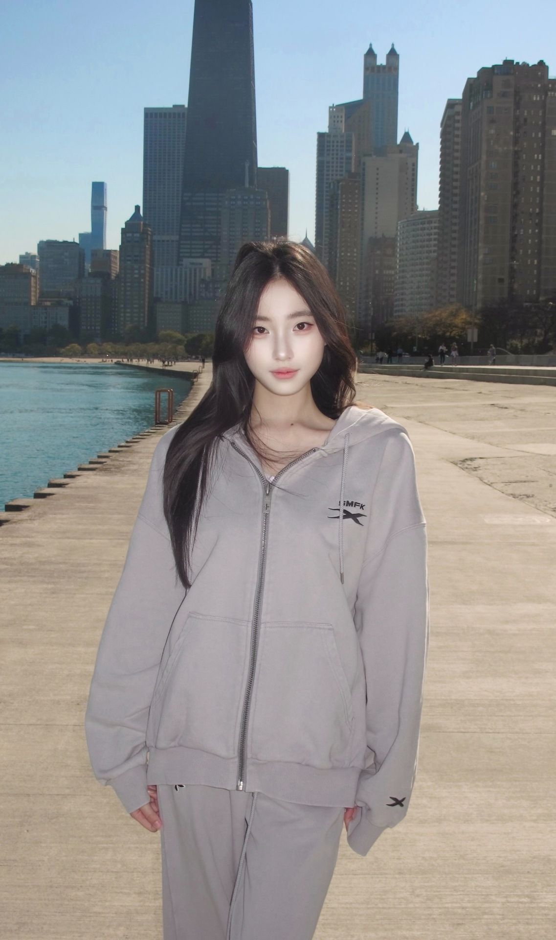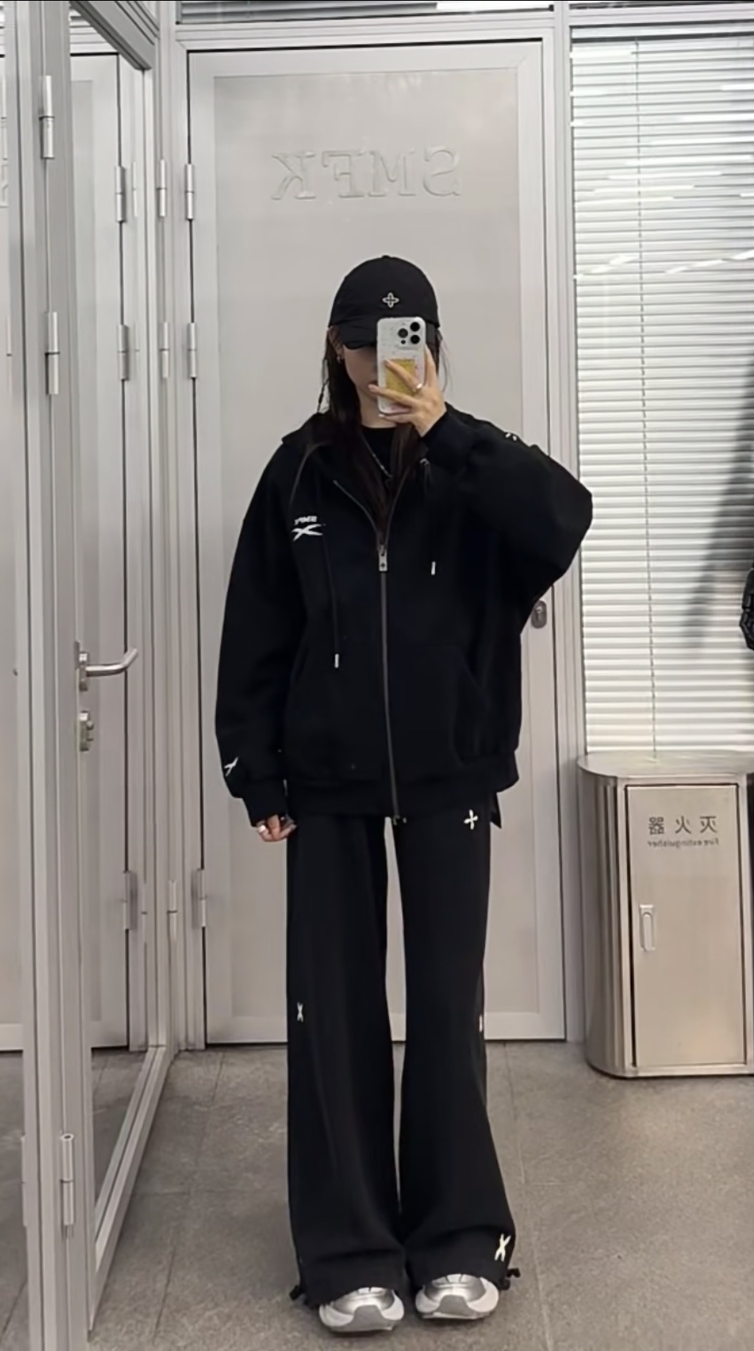SK 퓨처 진 와이드 스포츠 후디 자수 면 카디건 재킷 24 겨울 새 지퍼 스포츠 새로운