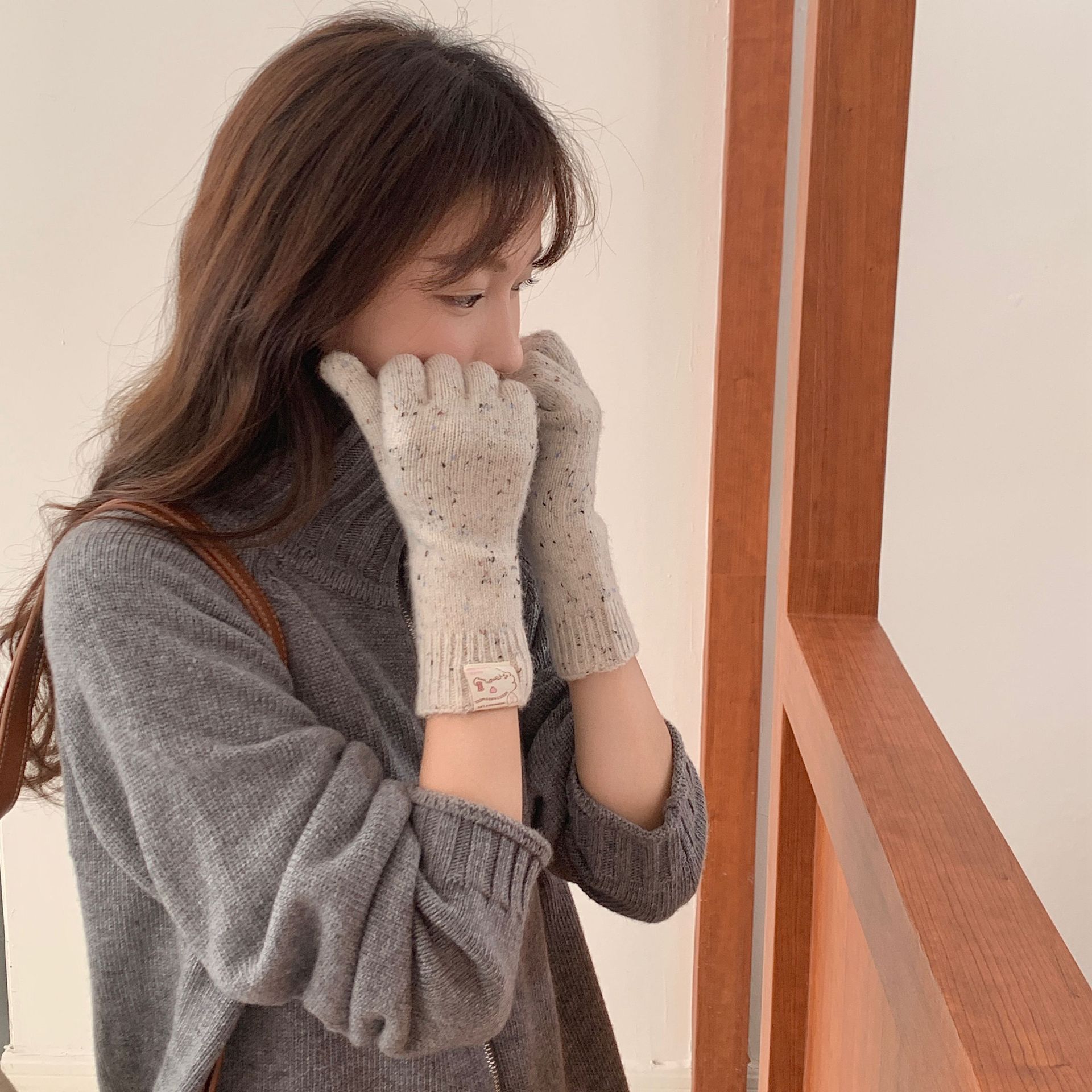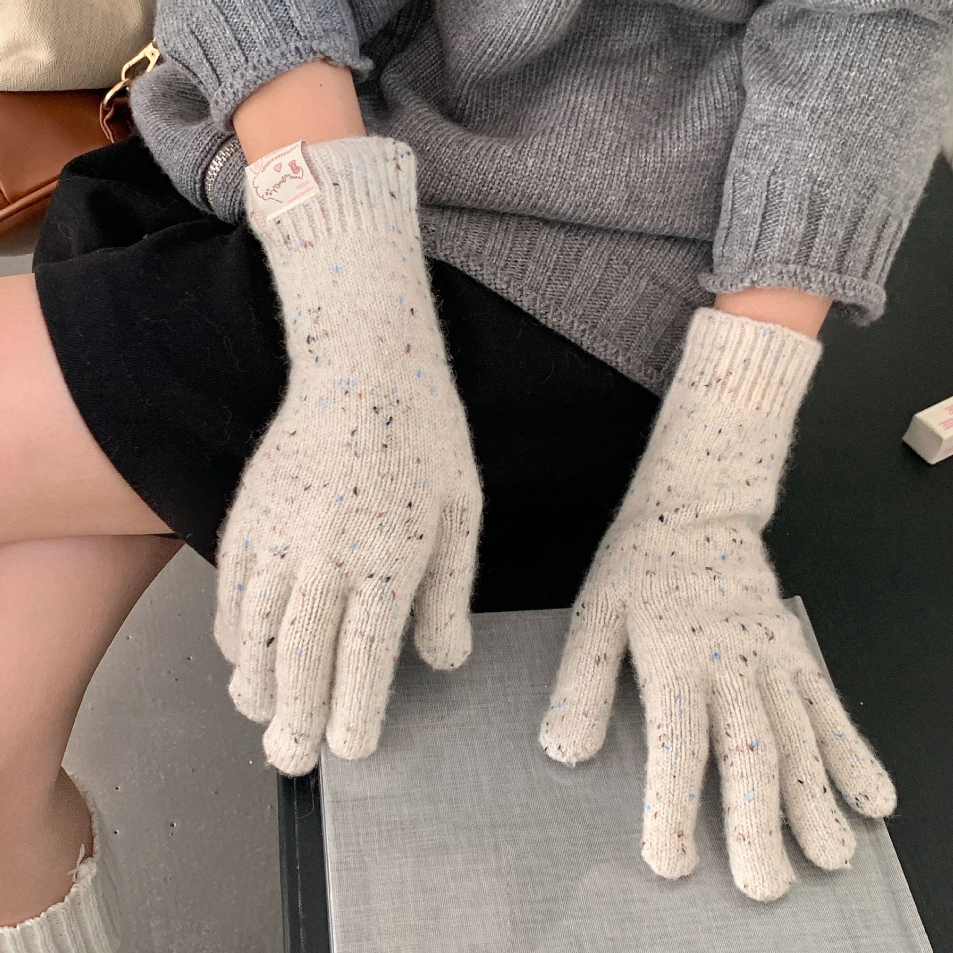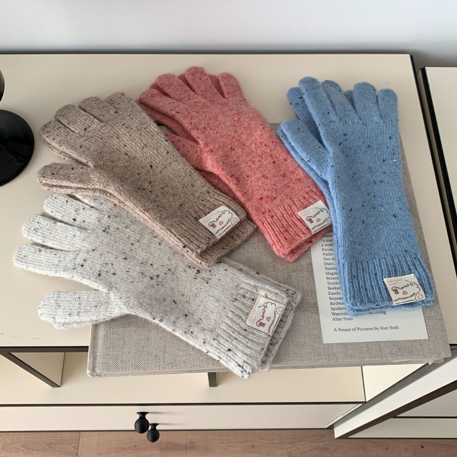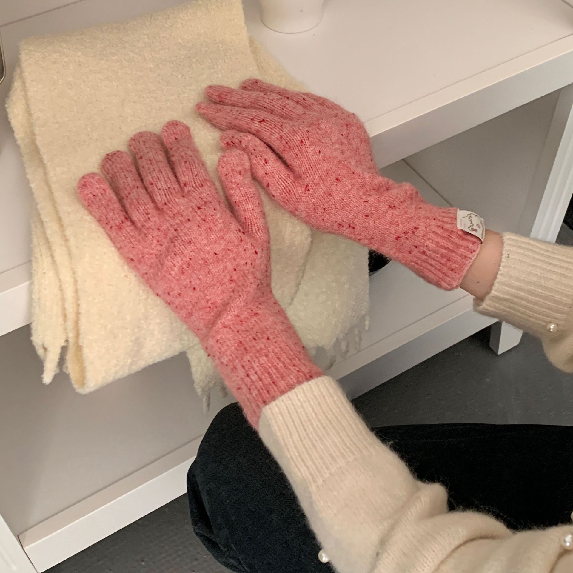 2024 년 새 양모 장갑 여자 가을 겨울 한국 컬러 도트 장갑 여자 올 매치 솔리드 컬러 라이딩 손가락 방한 남자