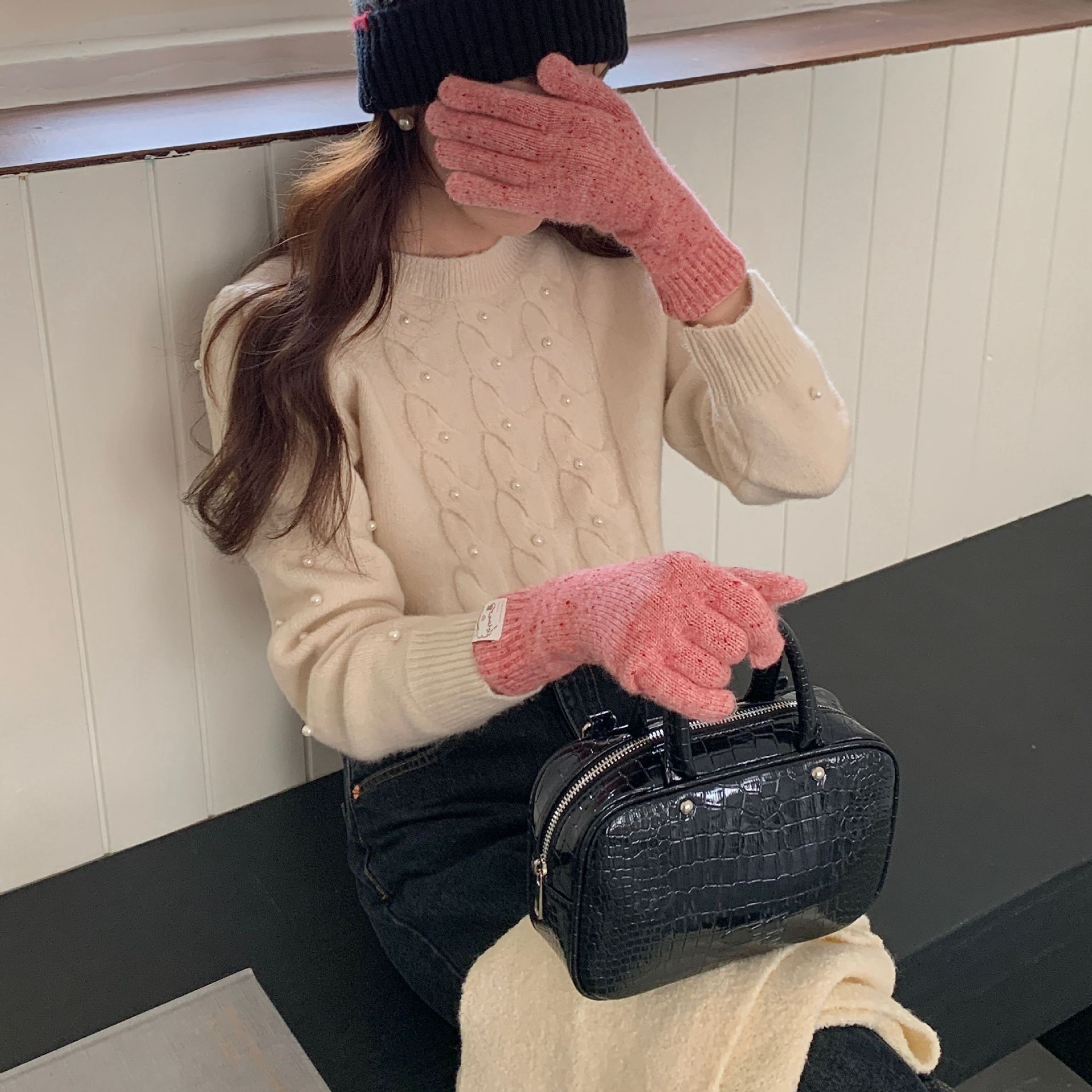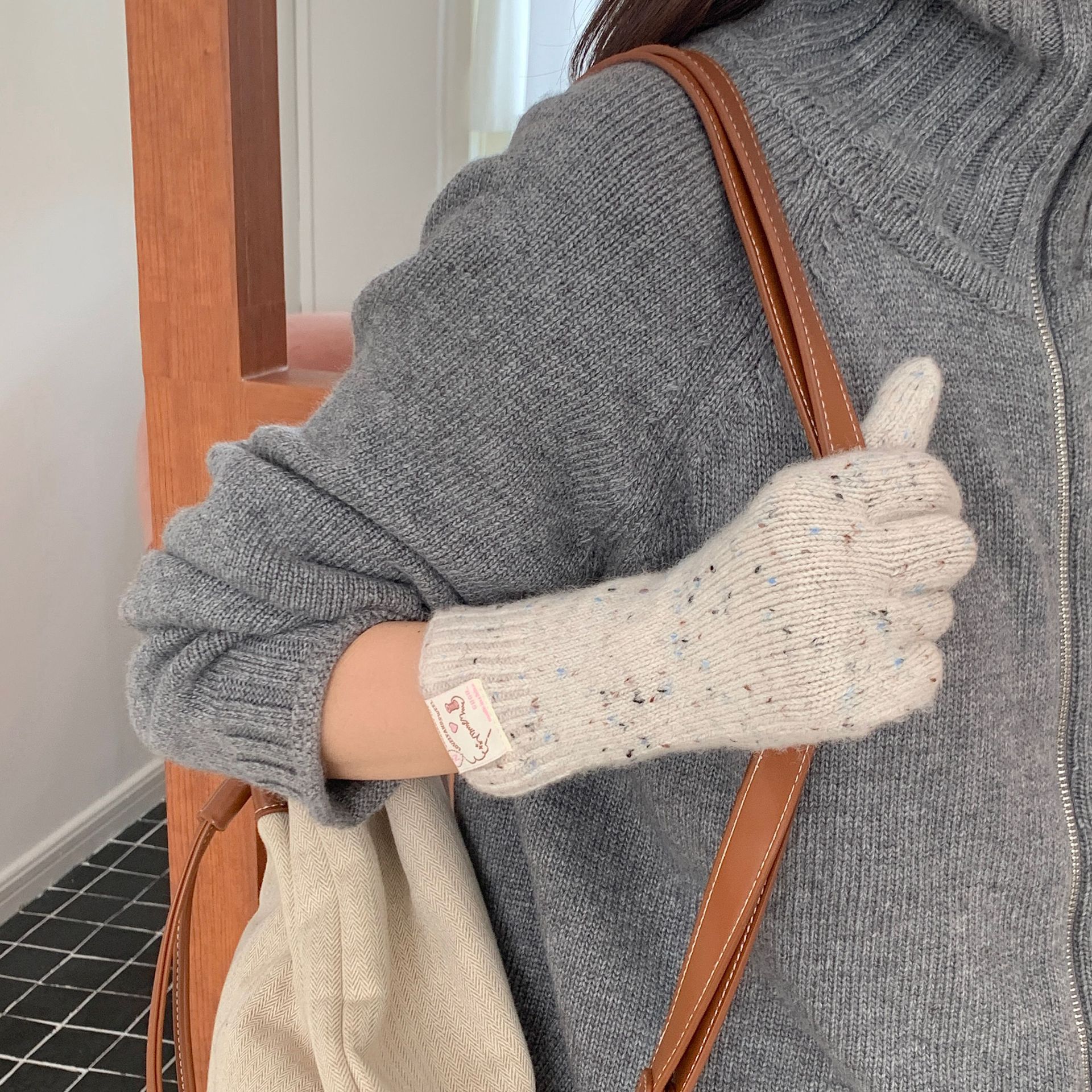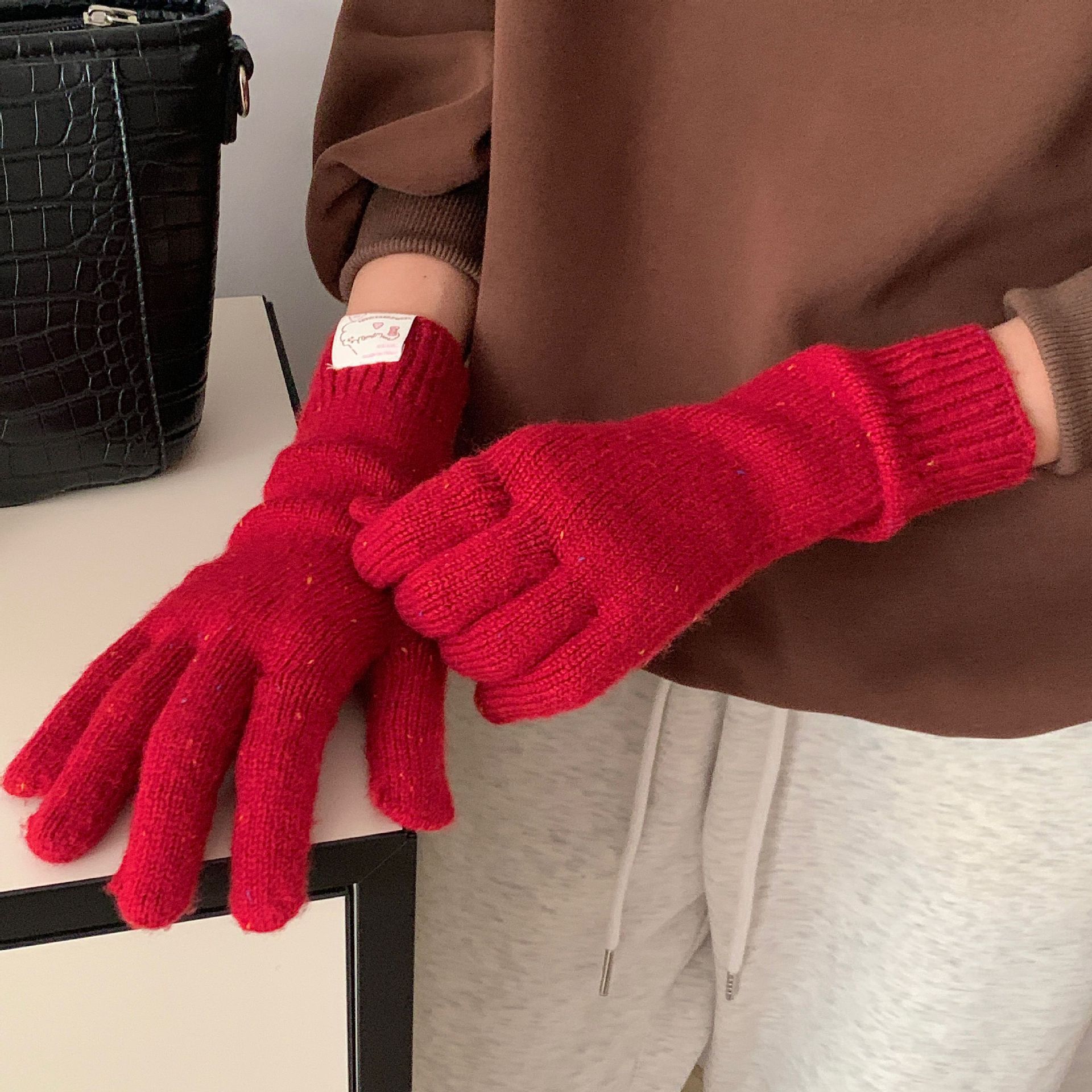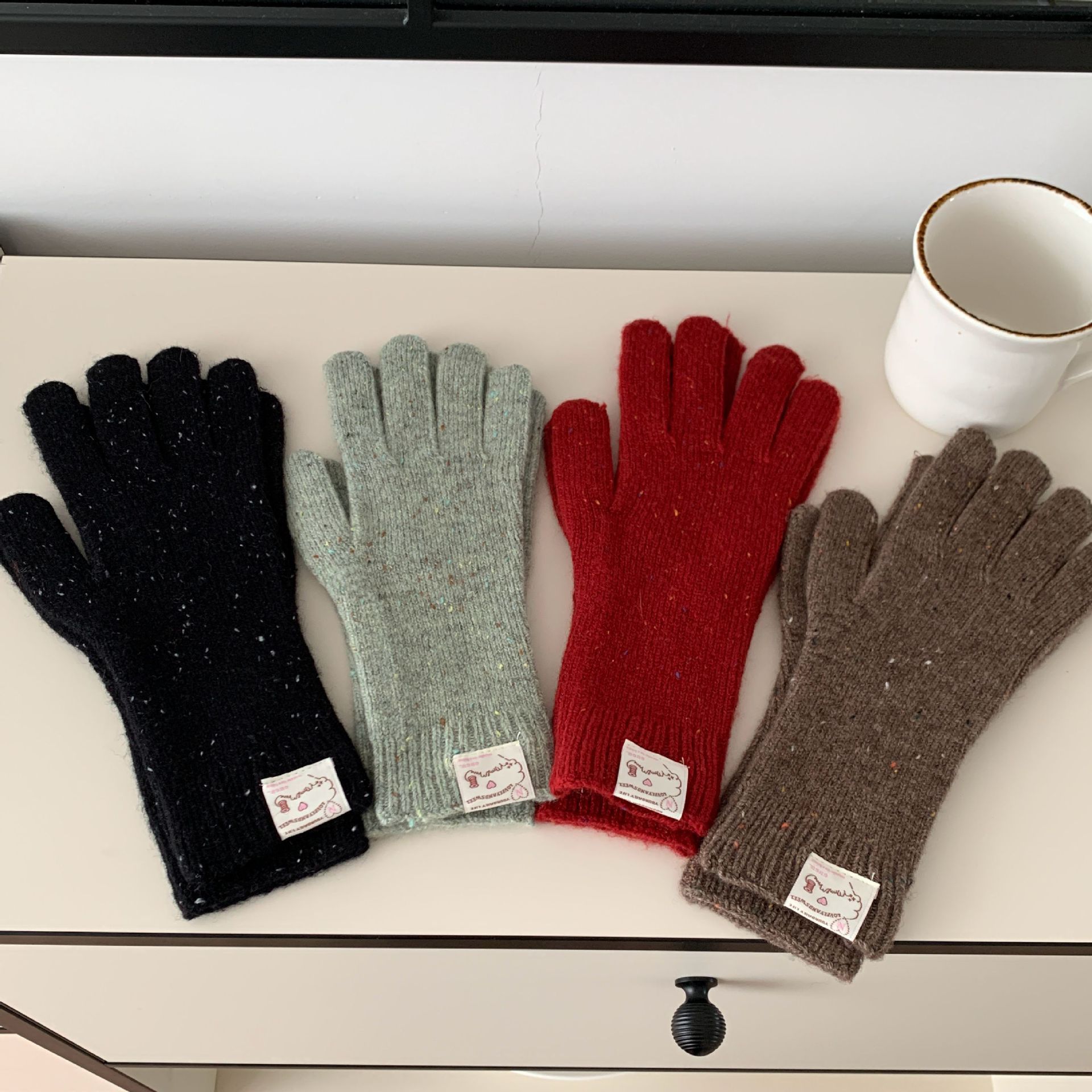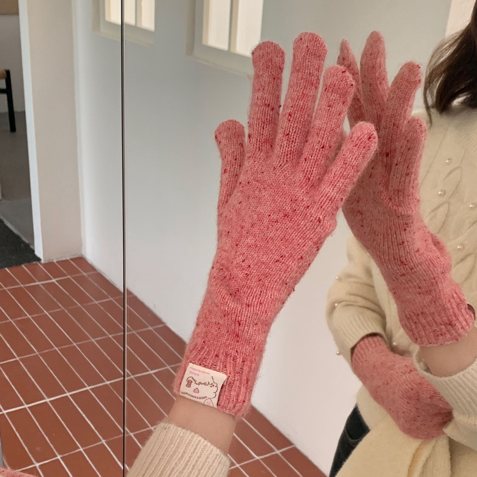 2024 년 새 양모 장갑 여자 가을 겨울 한국 컬러 도트 장갑 여자 올 매치 솔리드 컬러 라이딩 손가락 방한 남자