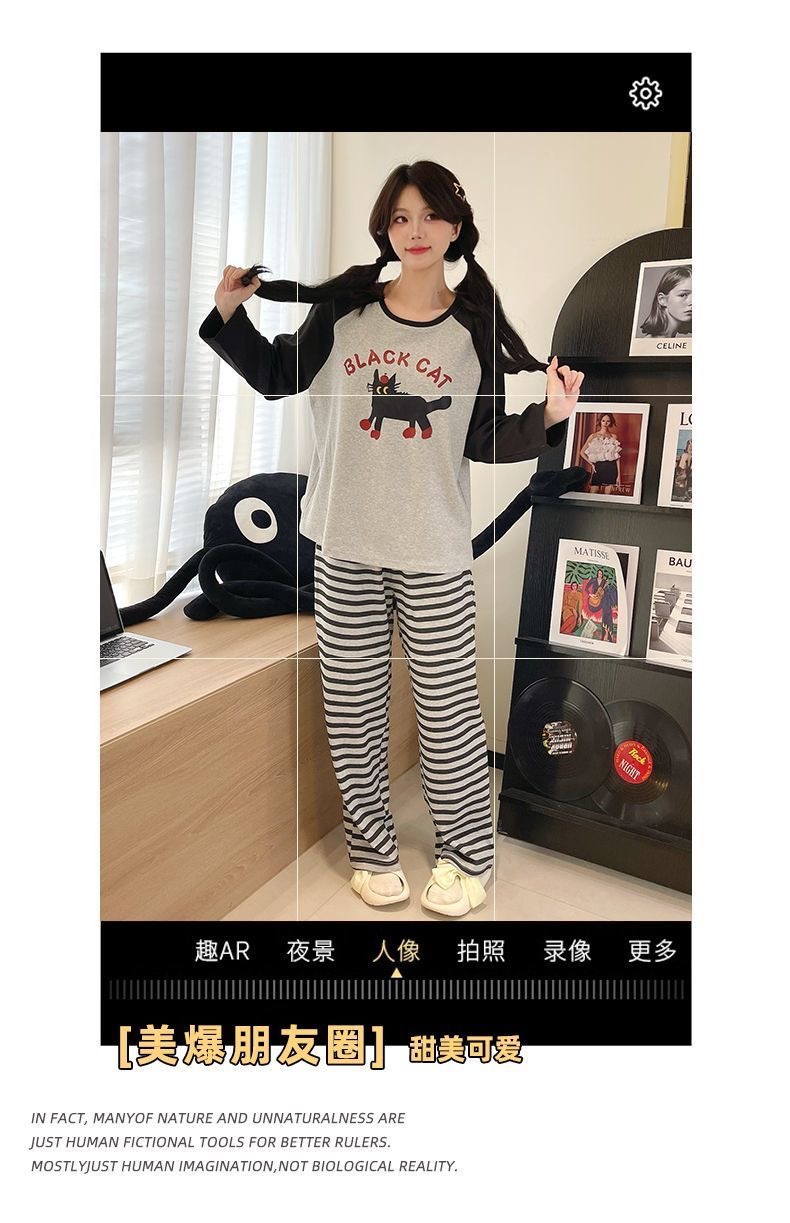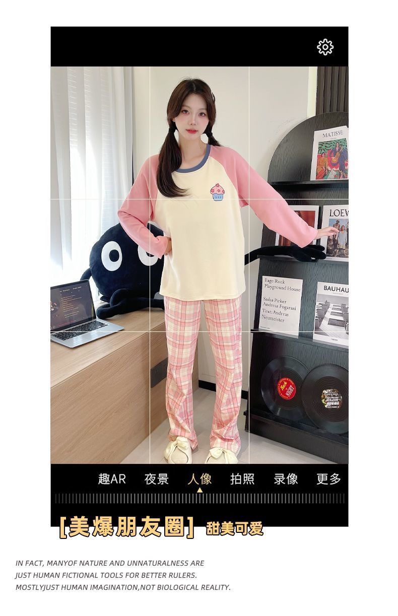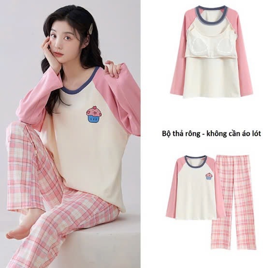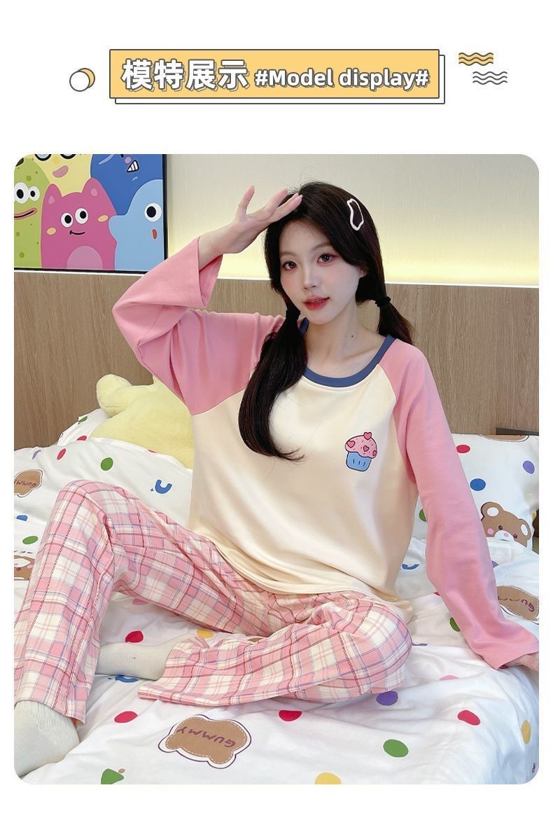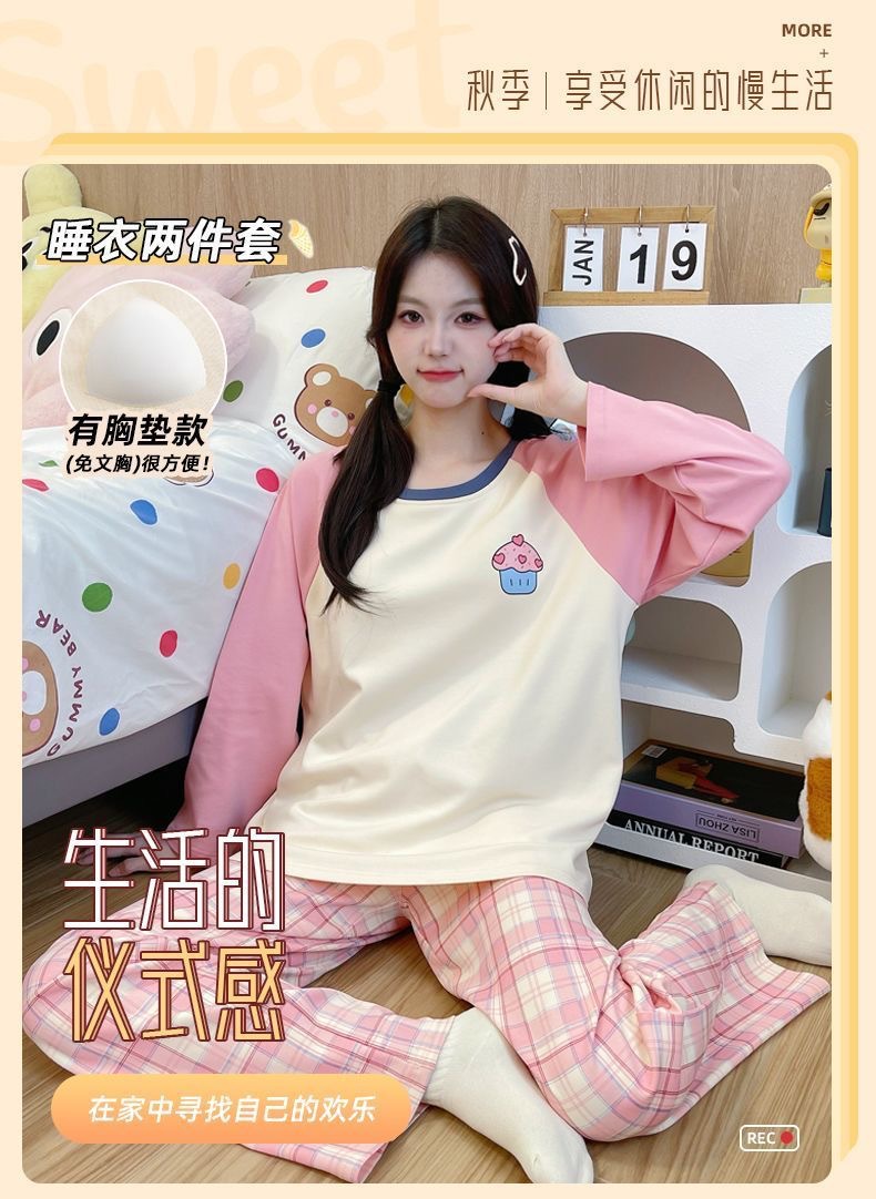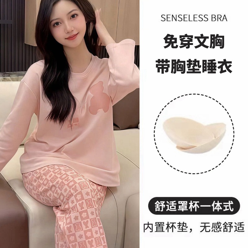 가슴 패드가 내장된 크로스보더 무역 잠옷, 면 느낌의 원피스 잠옷, 2025년 신상 여성 봄 가을 긴팔 긴바지 여성 잠옷스토어 가기
