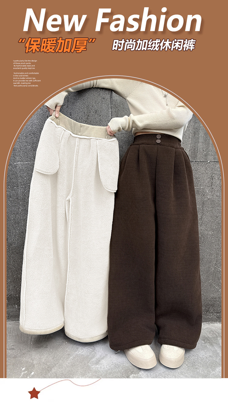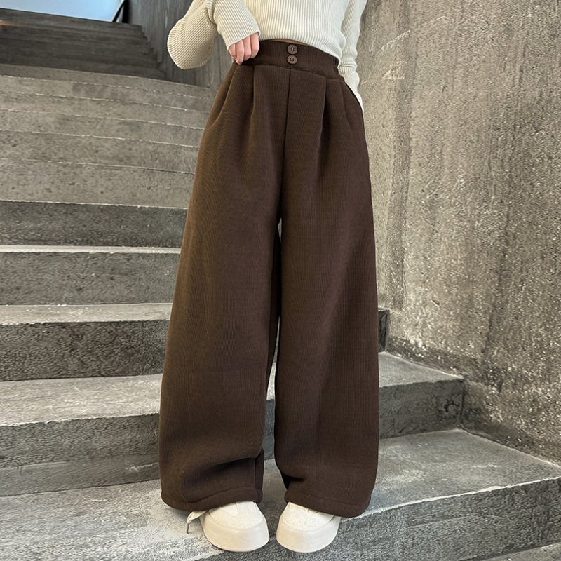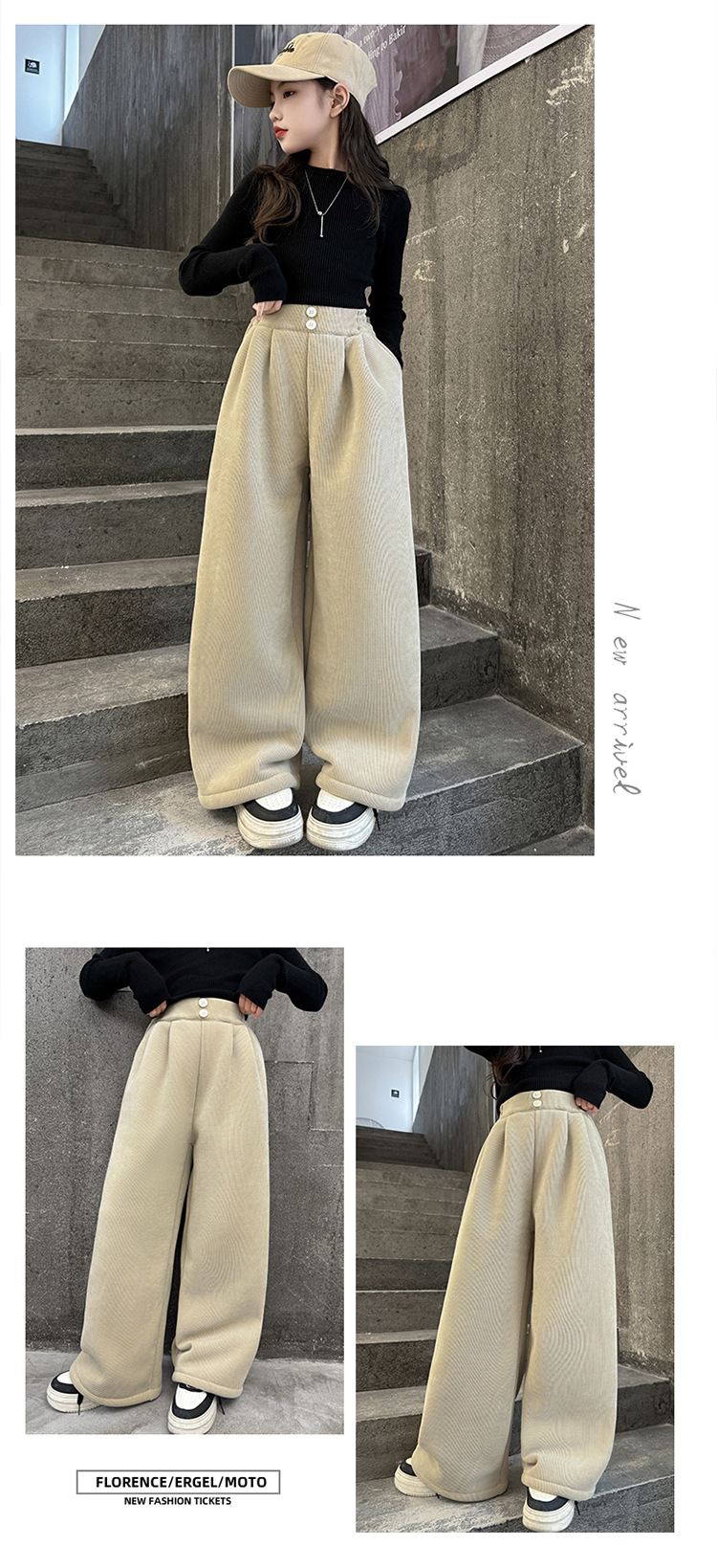 소녀 기모 바지 겨울 외부 착용 2024 새로운 서양식 어린이 두꺼운 겨울 원피스 양털 바지 큰 어린이스토어 가기