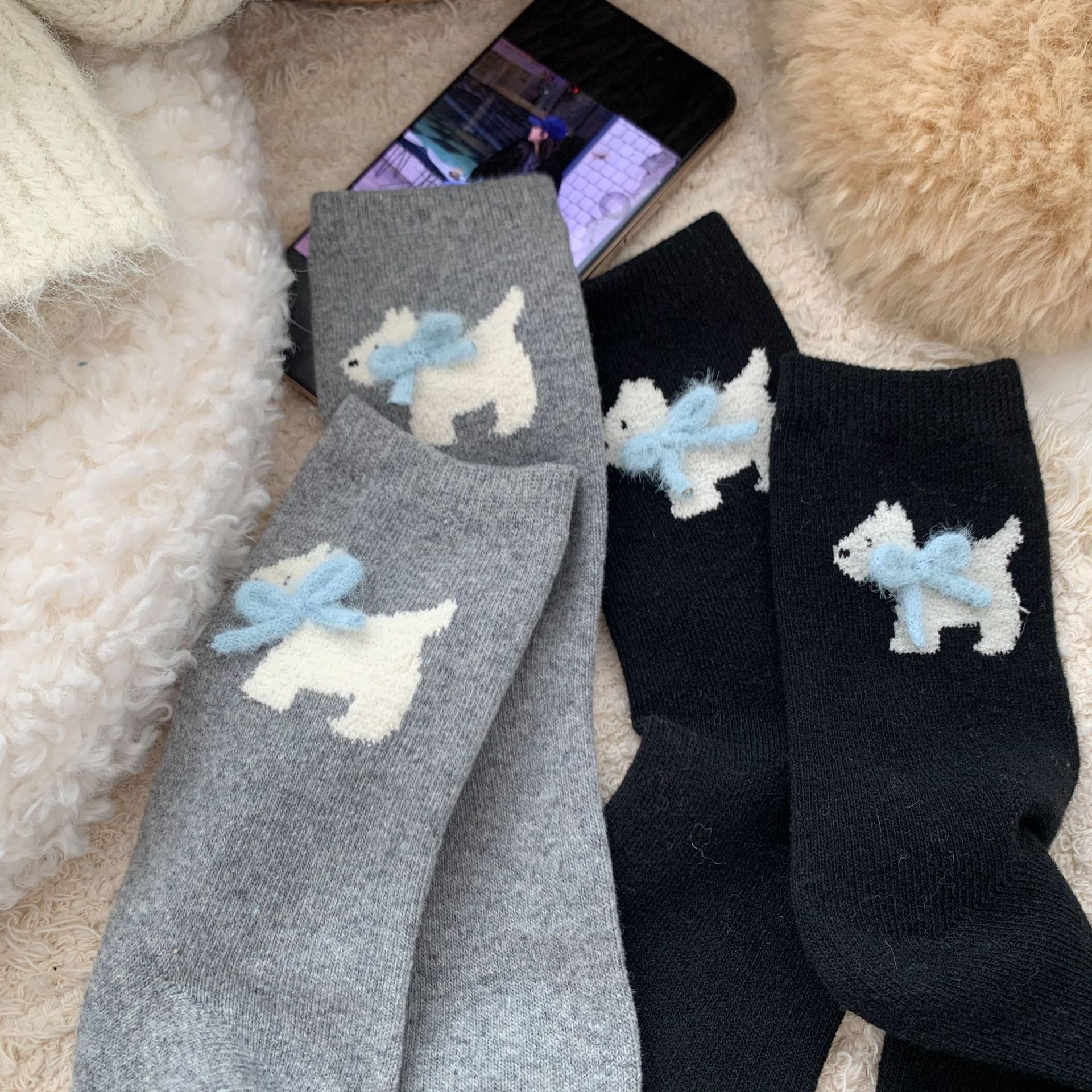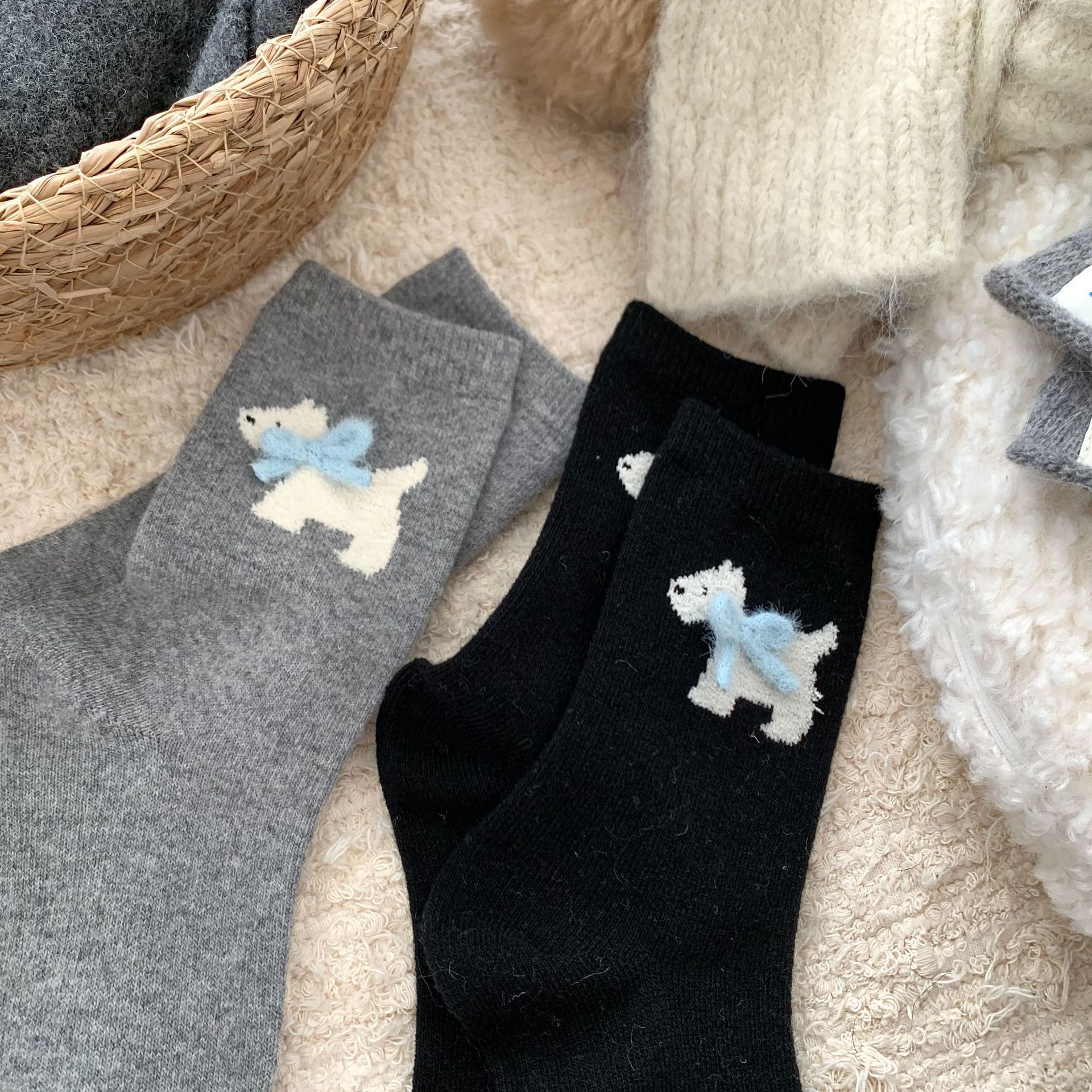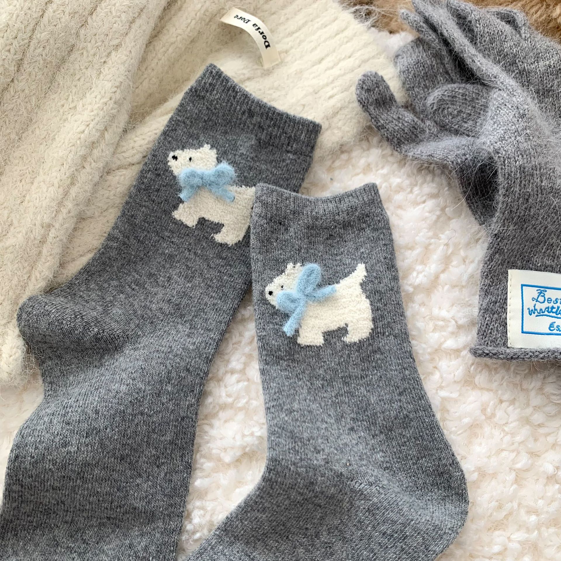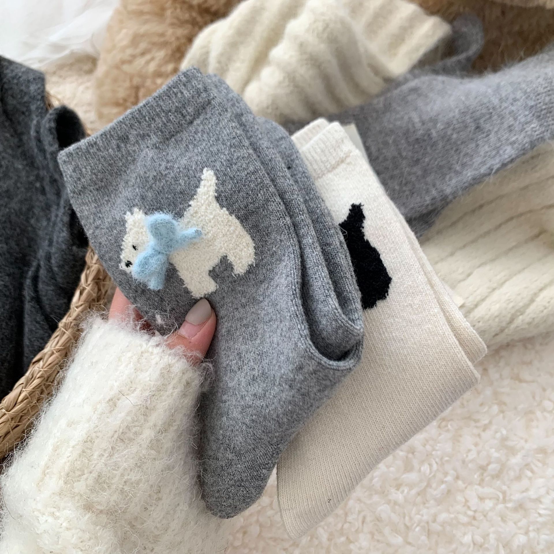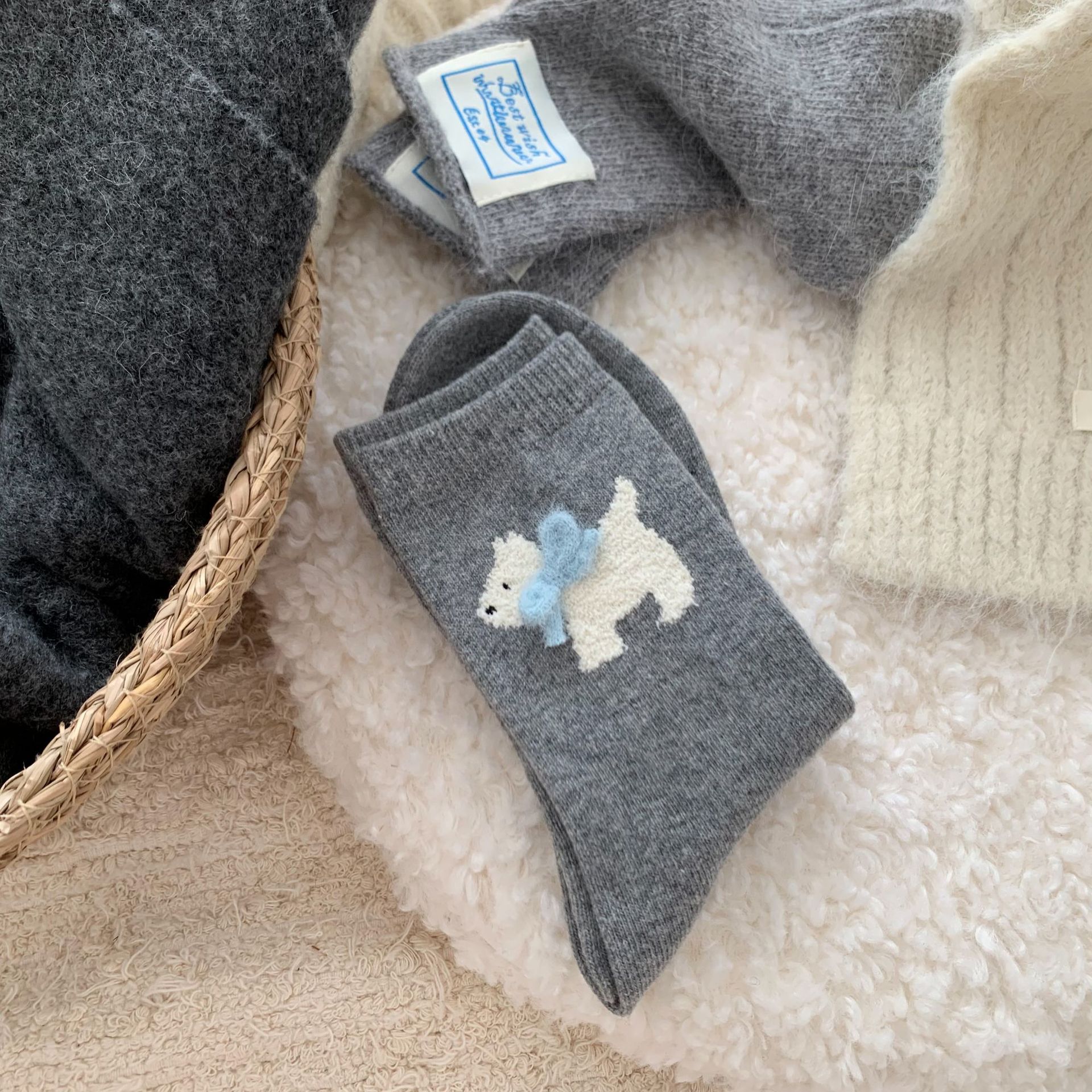 겨울 새 회색 캐시미어 여성 양말 동대문 한국 온라인 축하 만화 강아지 입체 활 미드 튜브 양말스토어 가기