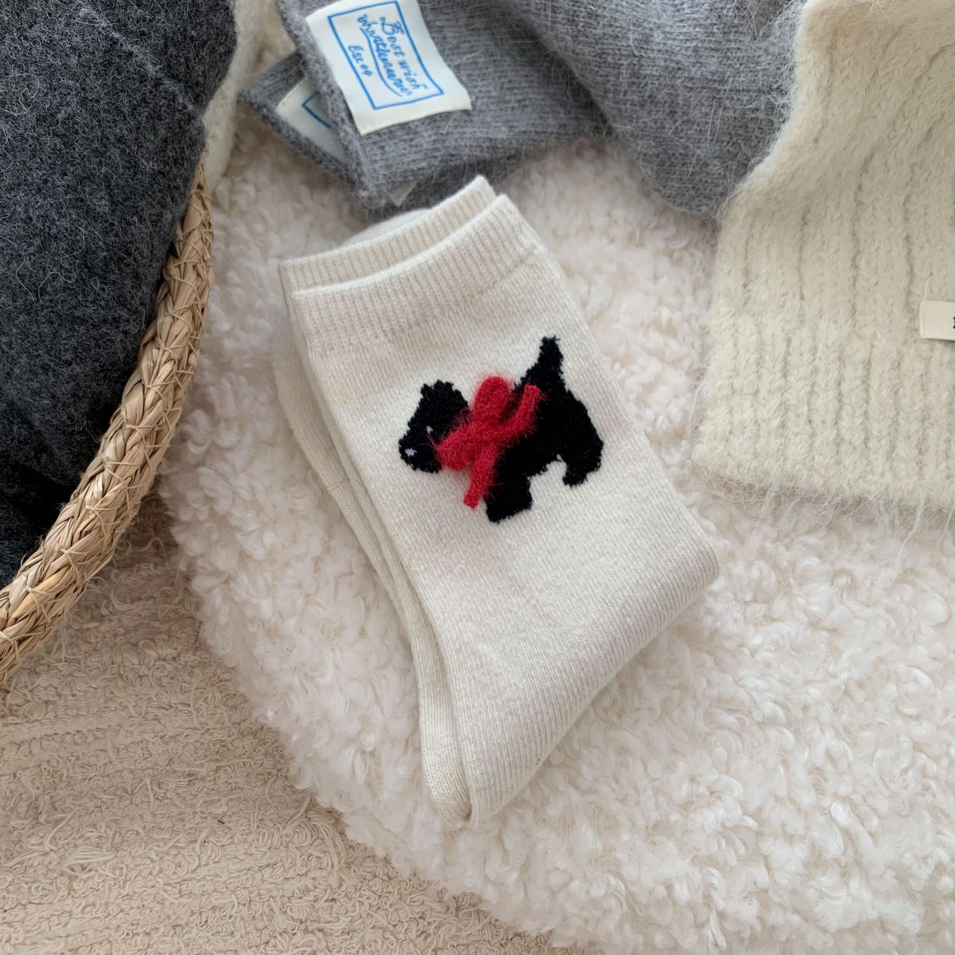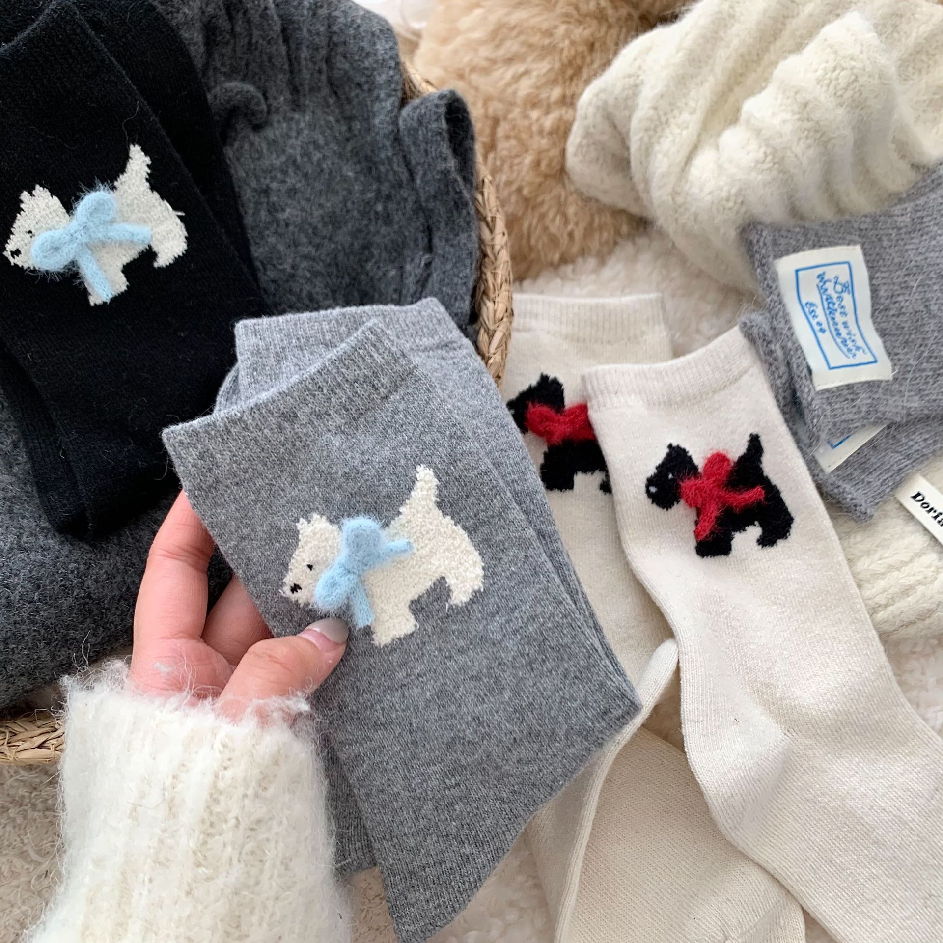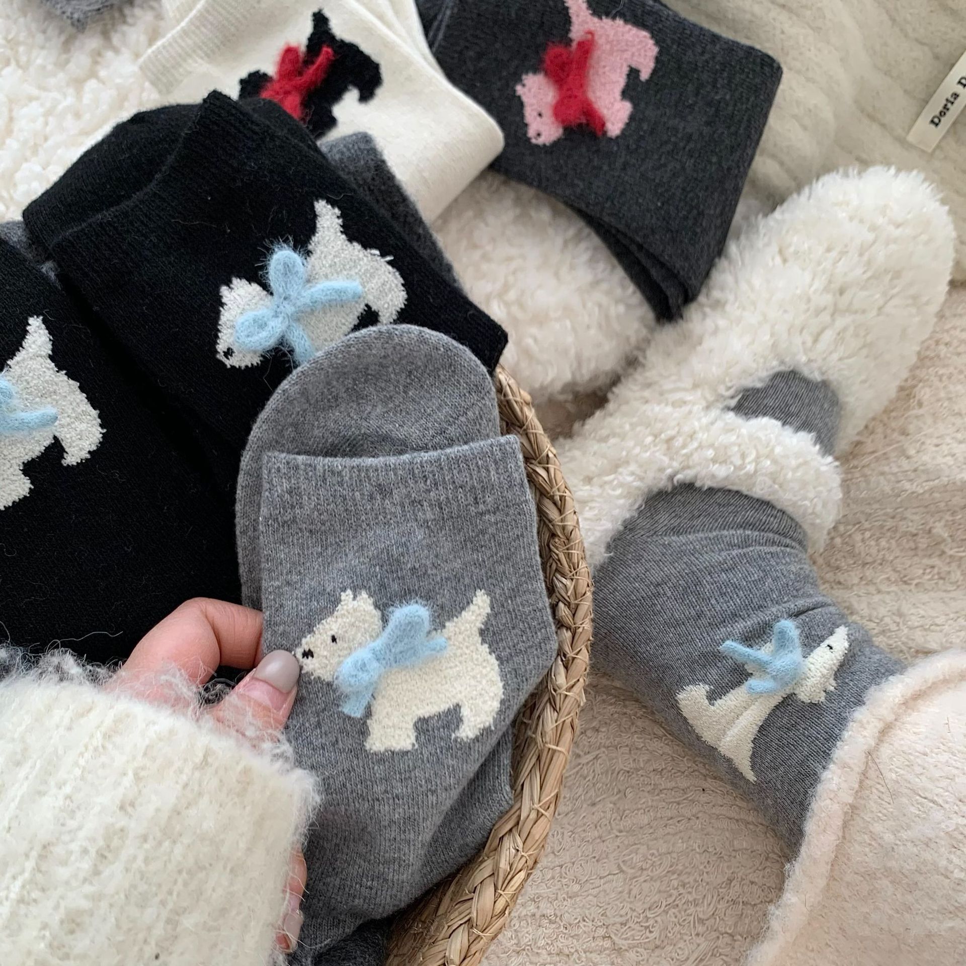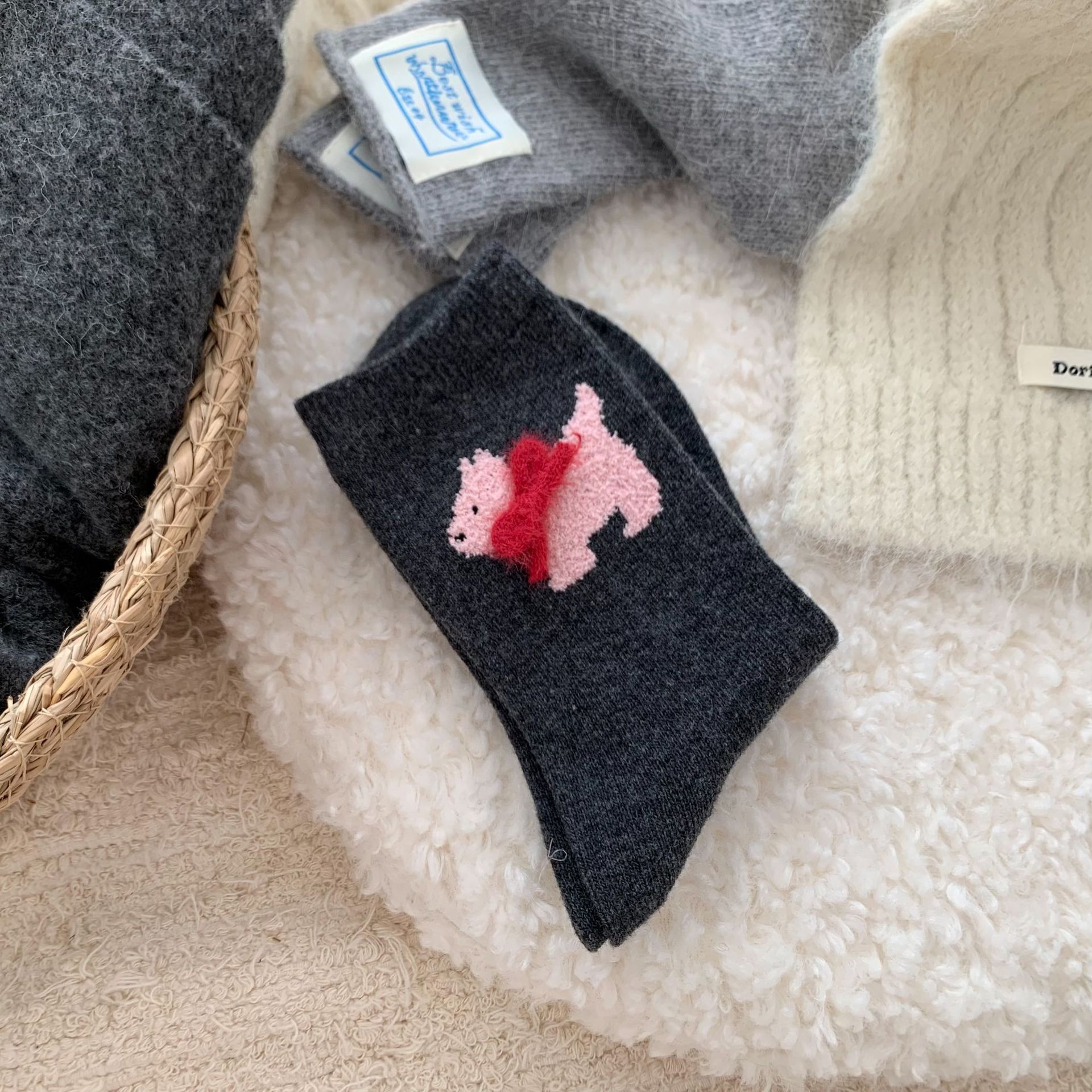 겨울 새 회색 캐시미어 여성 양말 동대문 한국 온라인 축하 만화 강아지 입체 활 미드 튜브 양말