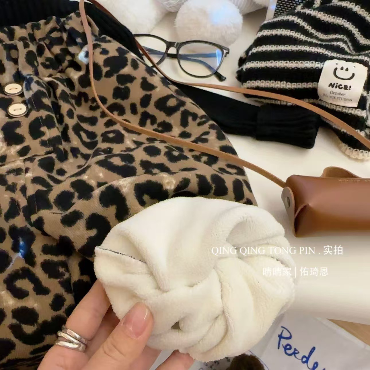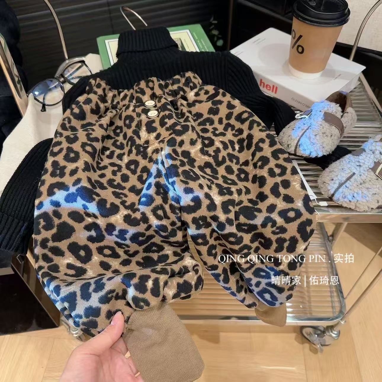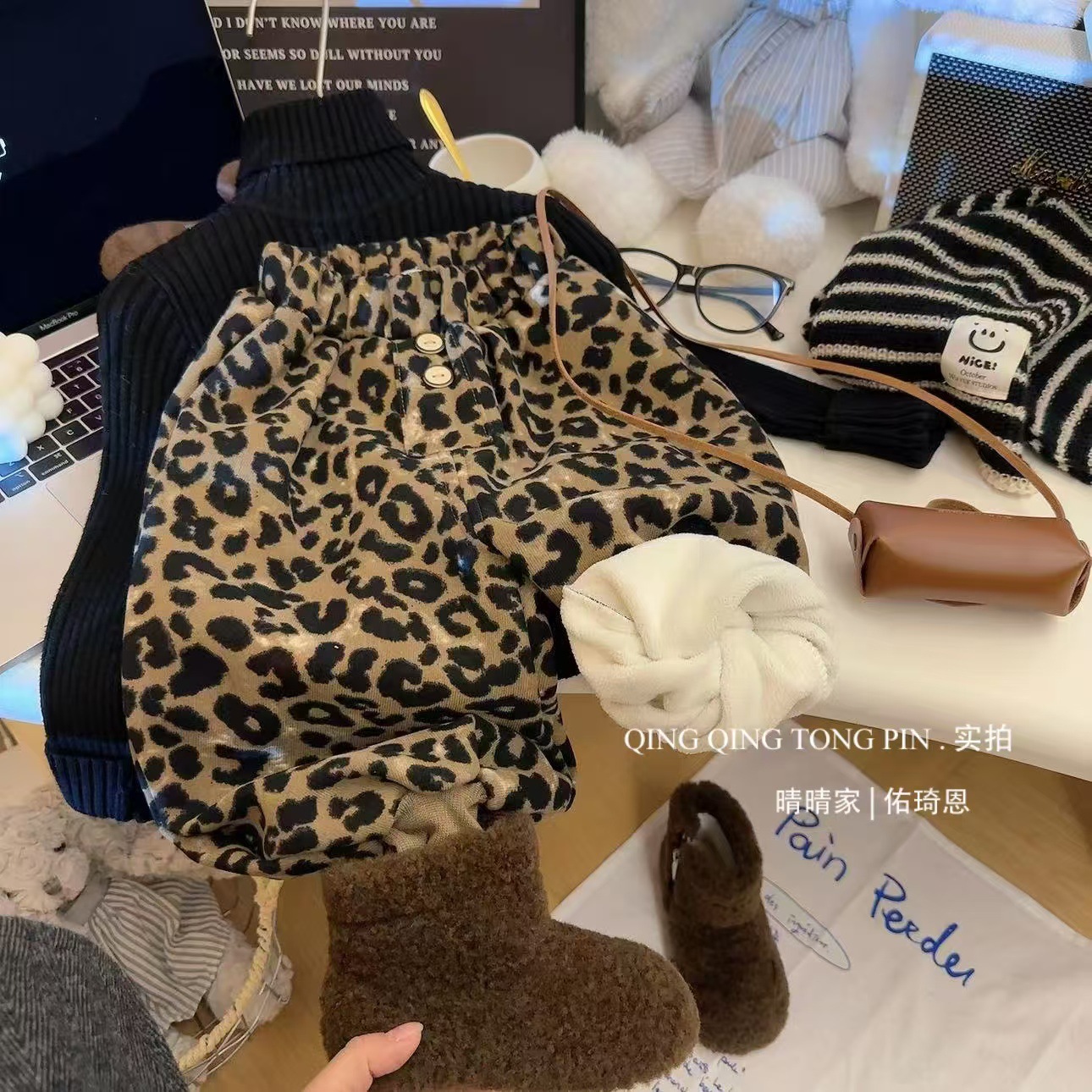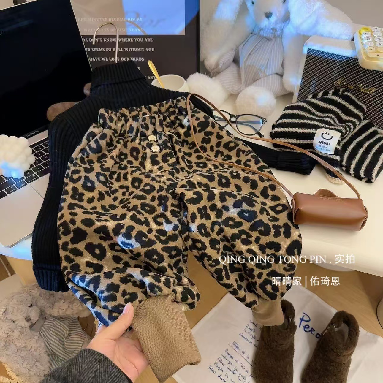 2024 가을과 겨울 새 여자 레오파드 바지 어린이 기모 두껍게 외주 캐주얼 바지 아기의 올 매치 웨스턴 스타일 바지스토어 가기