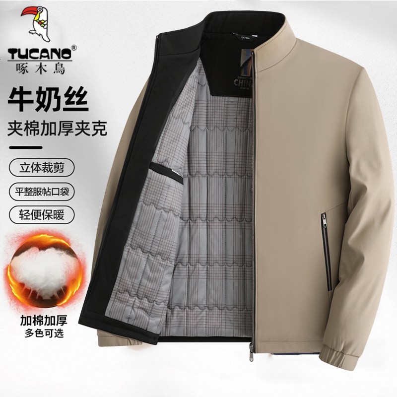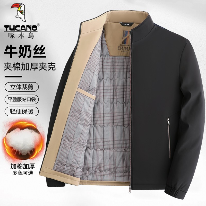 딱따구리 카이 후이 남자 블랙 골드 시리즈 기모 두꺼운 중년 남자 그래 핀 재킷 가을과 겨울 아빠 재킷