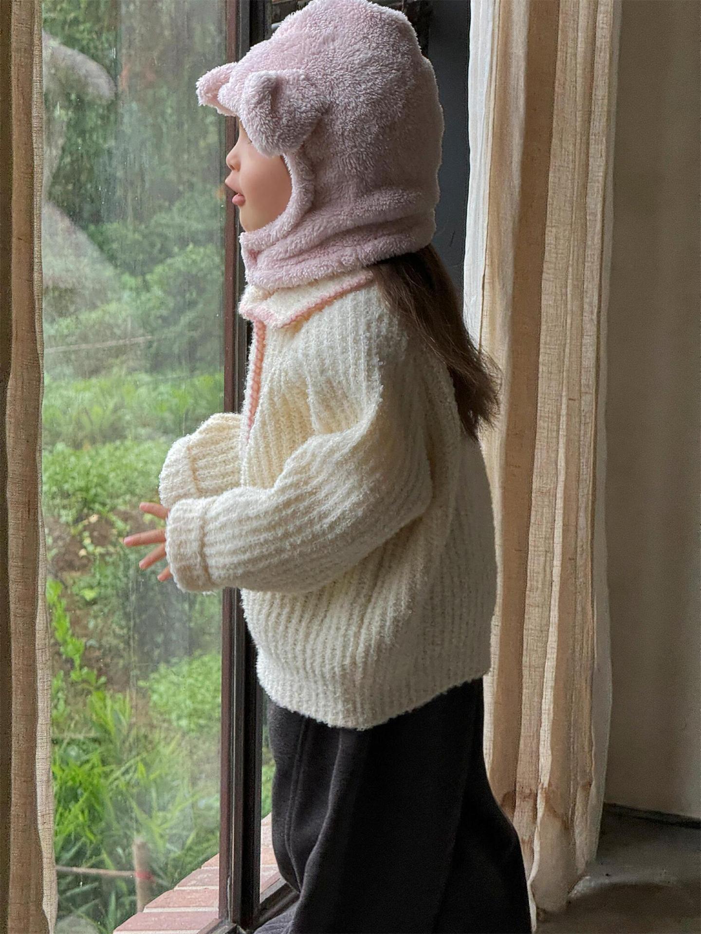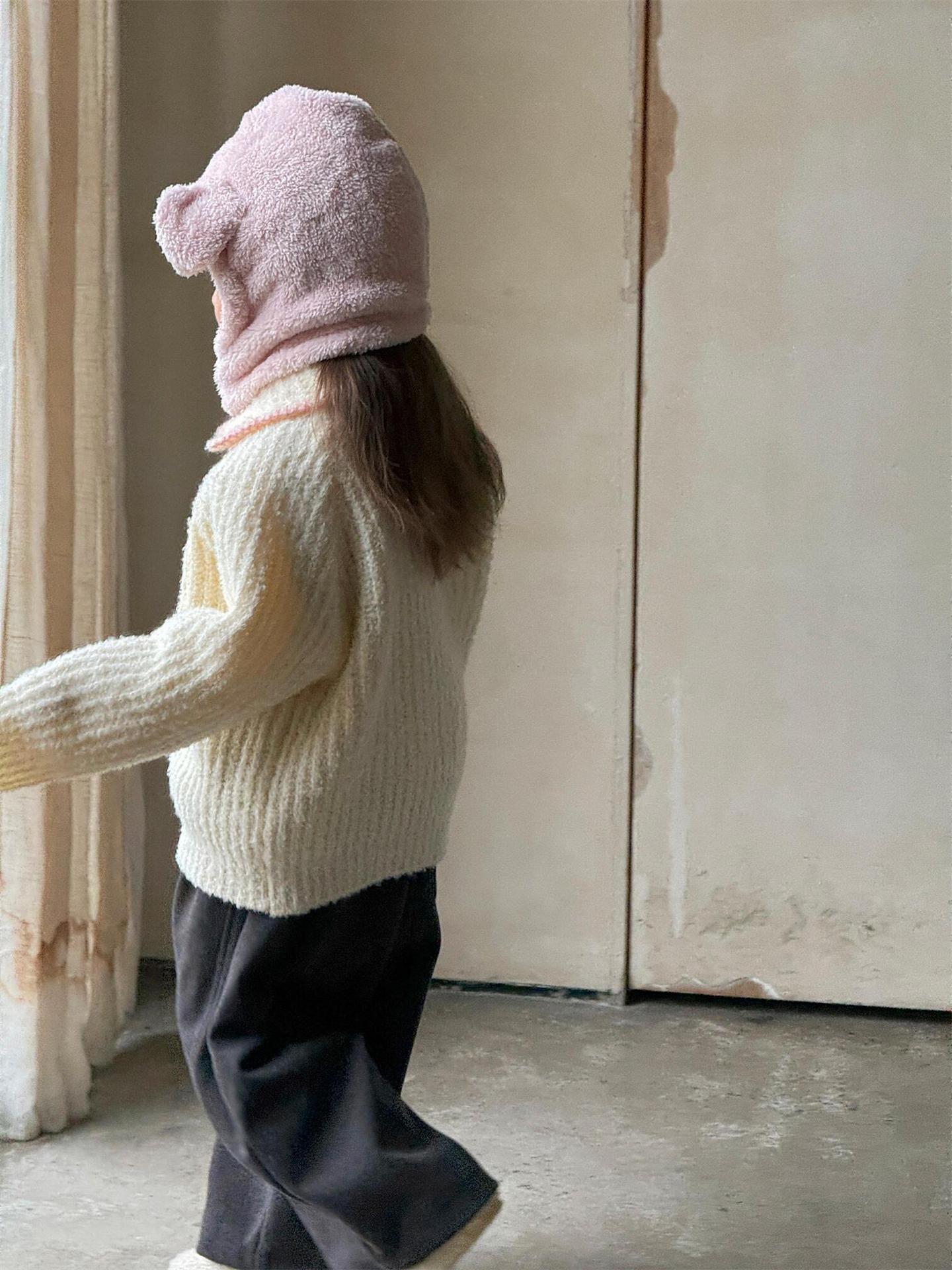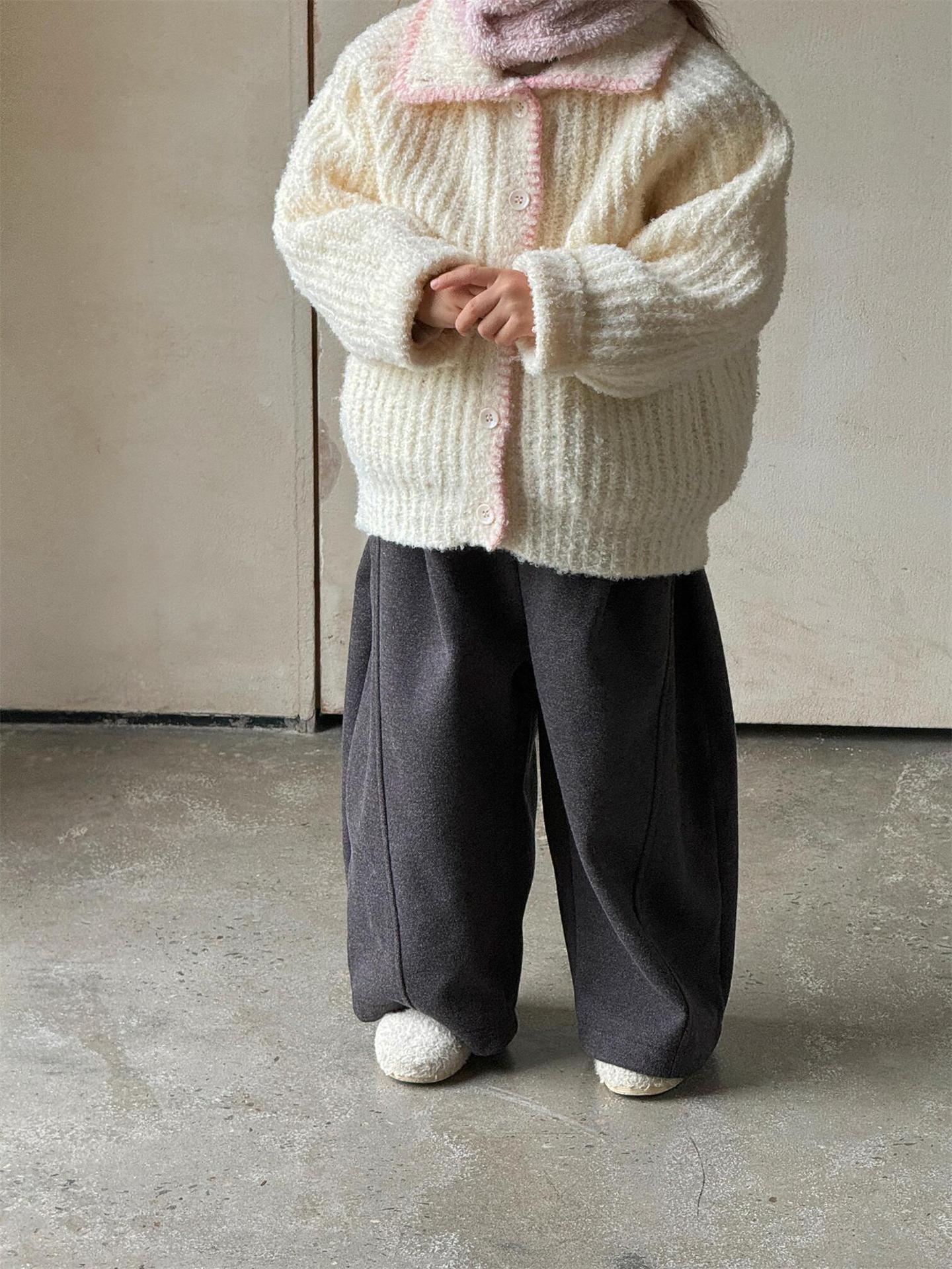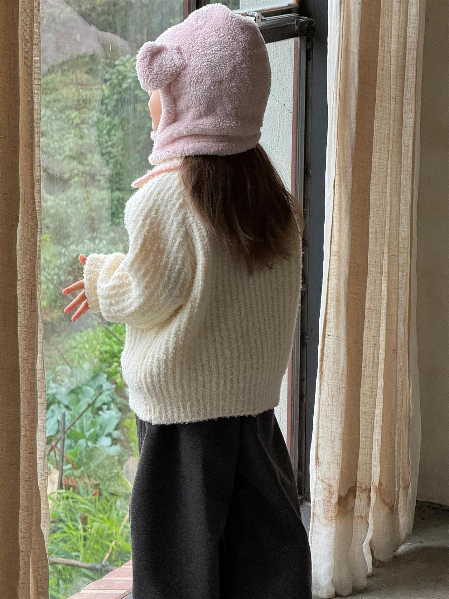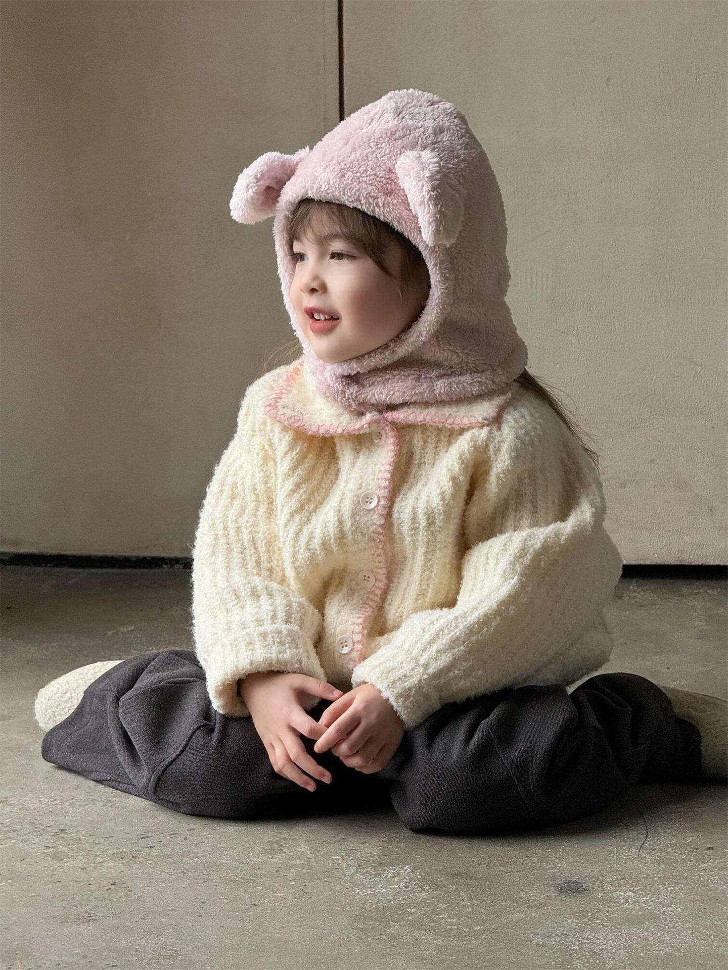 최고의 계란 한국 아동복 2024 겨울 새 여아 코트 단색 달콤한 두꺼운 스웨터 카디건 핑크