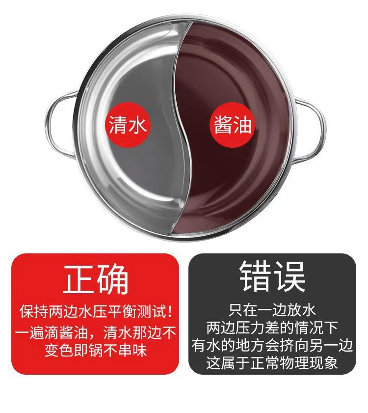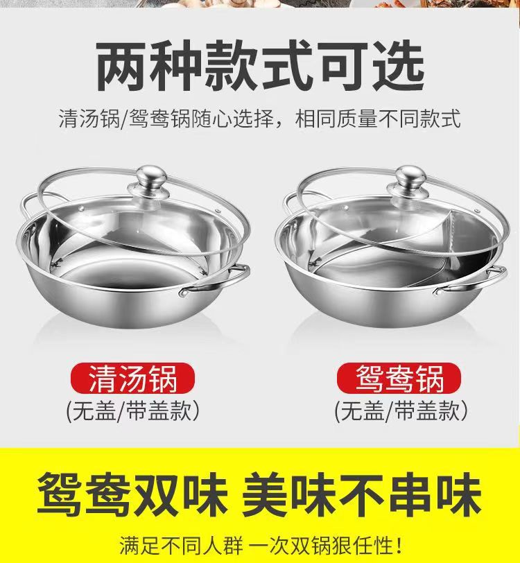 스테인리스 냄비 작은 양 Yuyang 냄비 두꺼운 명확한 수프 냄비 두 가지 맛 냄비 두 배 귀 뚜껑 가구 상업용 도매스토어 가기