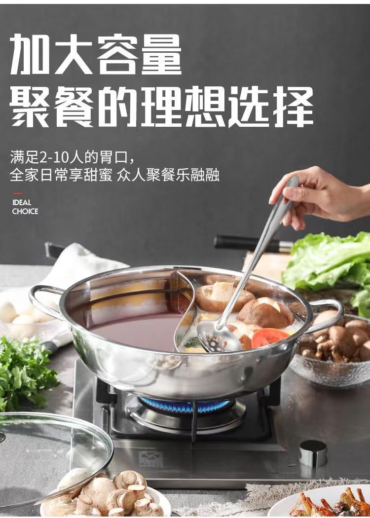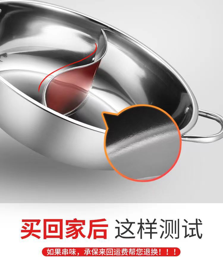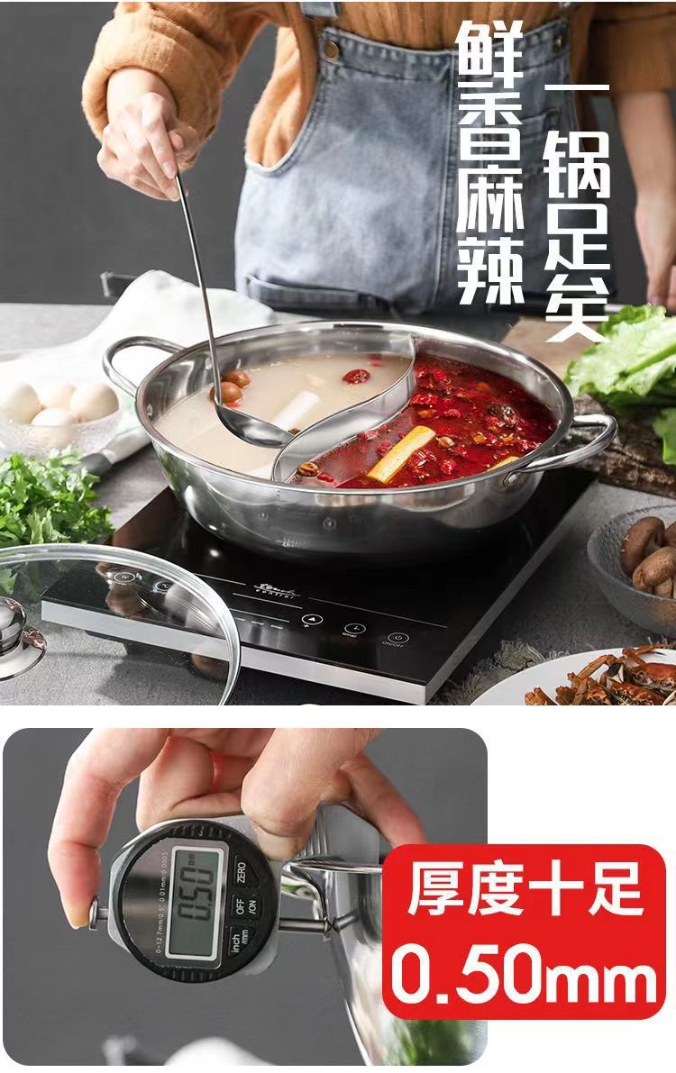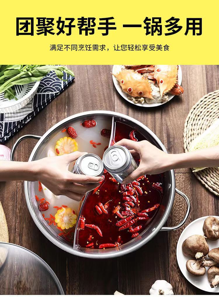스테인리스 냄비 작은 양 Yuyang 냄비 두꺼운 명확한 수프 냄비 두 가지 맛 냄비 두 배 귀 뚜껑 가구 상업용 도매