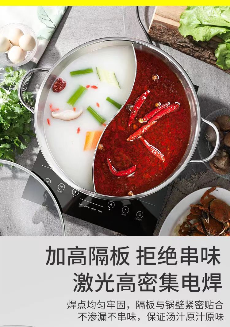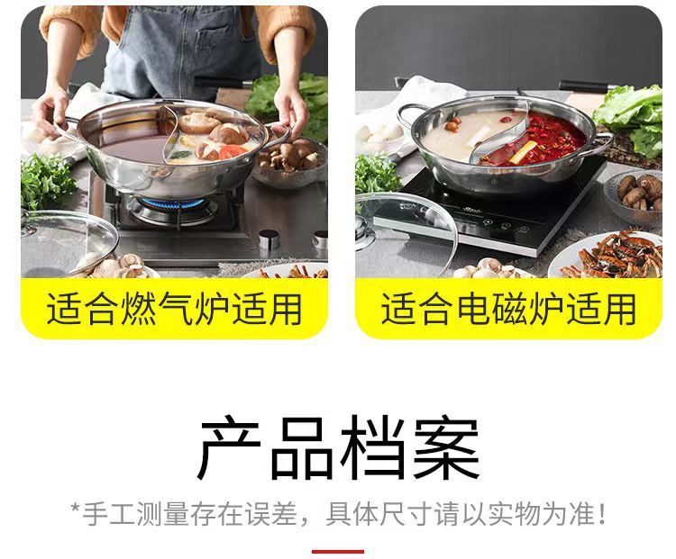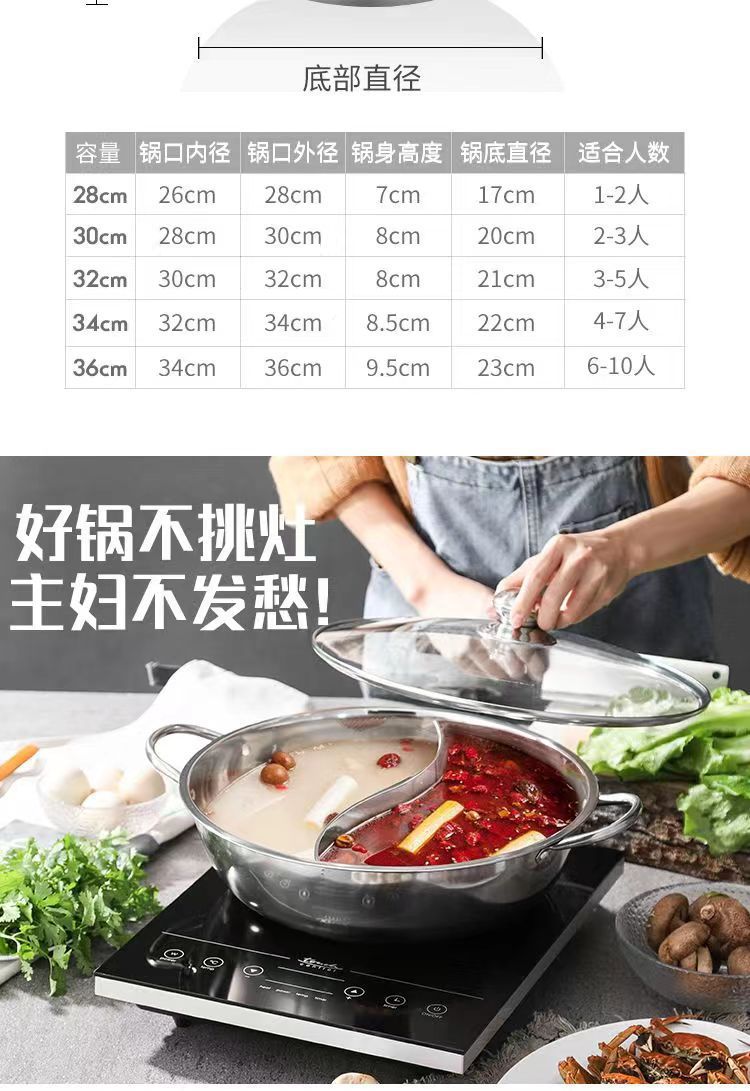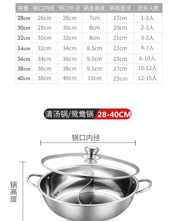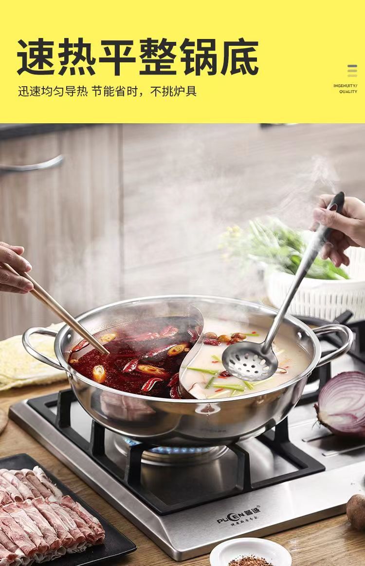 스테인리스 냄비 작은 양 Yuyang 냄비 두꺼운 명확한 수프 냄비 두 가지 맛 냄비 두 배 귀 뚜껑 가구 상업용 도매