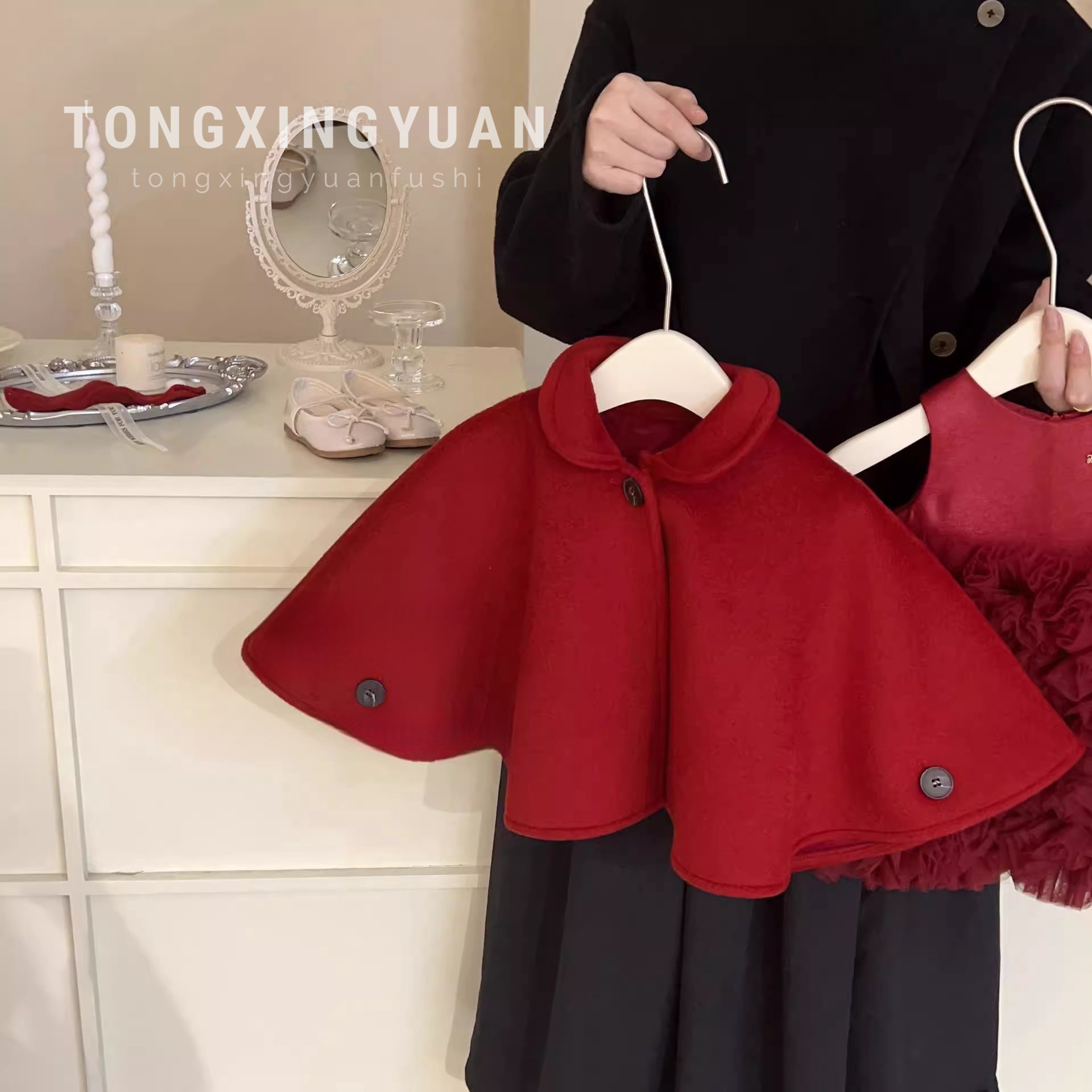 텅싱위안 여성보물 붉은망토소녀 신년복 어린이 망토 코트 어린이 고급신년 원피스