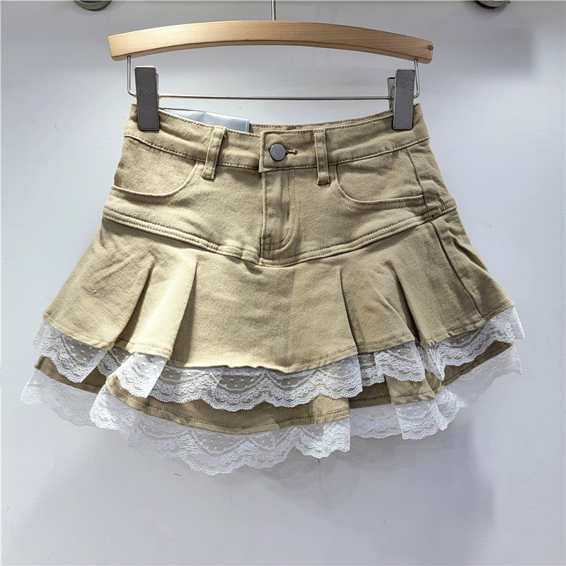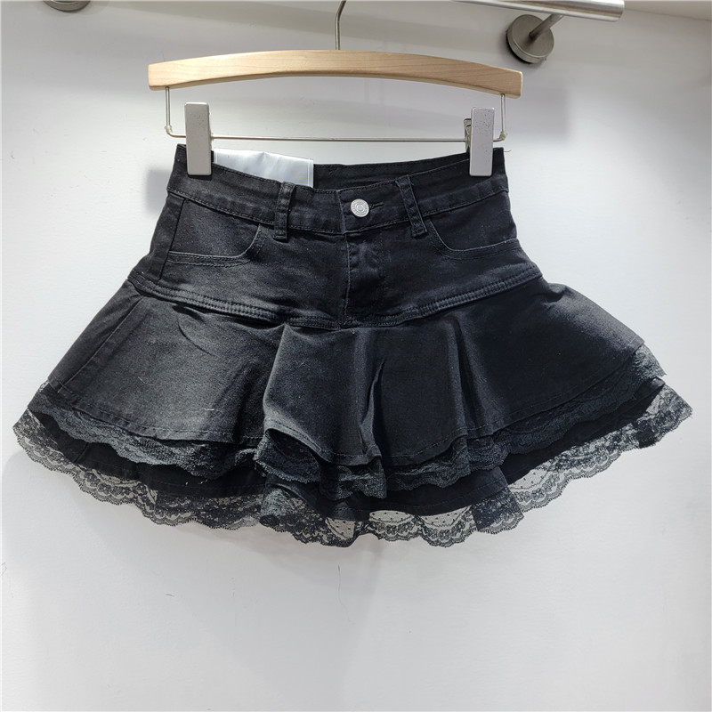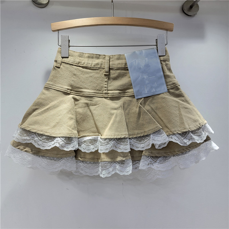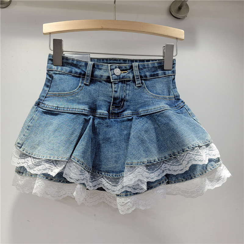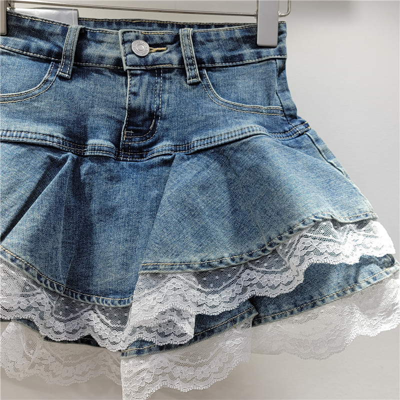 2025 가을 신상품 신축성 있는 데님 스플라이싱 다층 레이스 레이어드 퍼프 스커트 케이크 스커트 다용도 미니스커트
