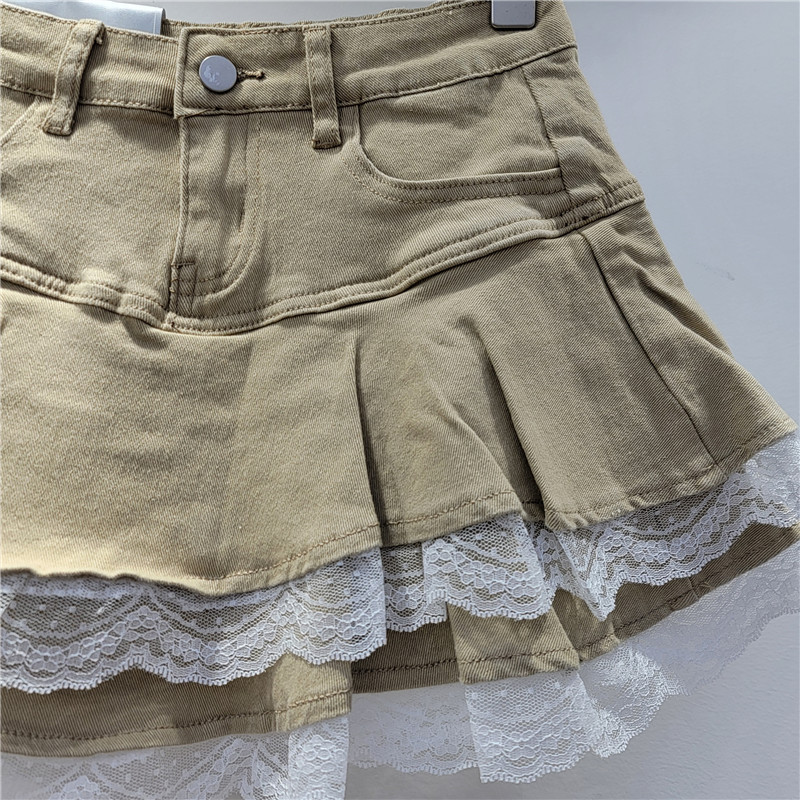 2025 가을 신상품 신축성 있는 데님 스플라이싱 다층 레이스 레이어드 퍼프 스커트 케이크 스커트 다용도 미니스커트스토어 가기