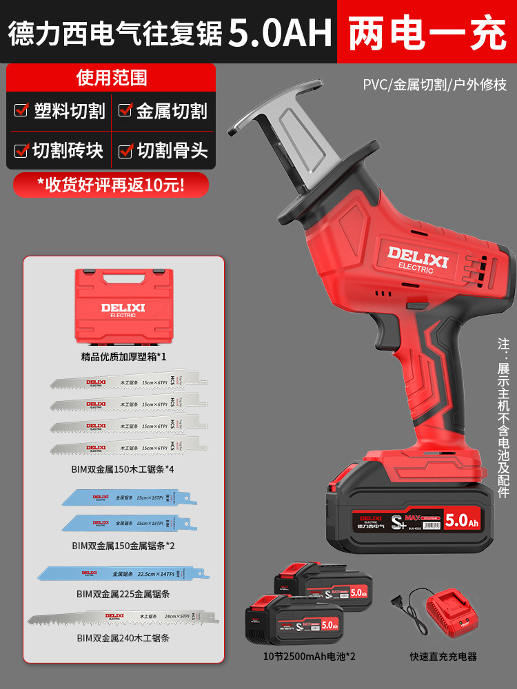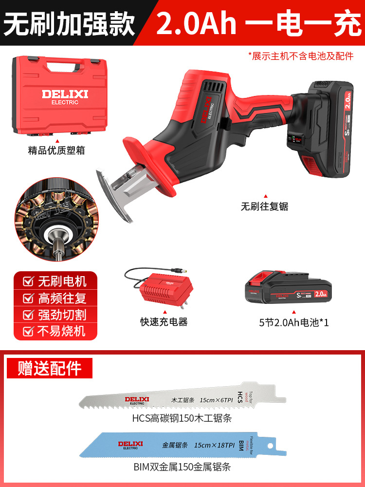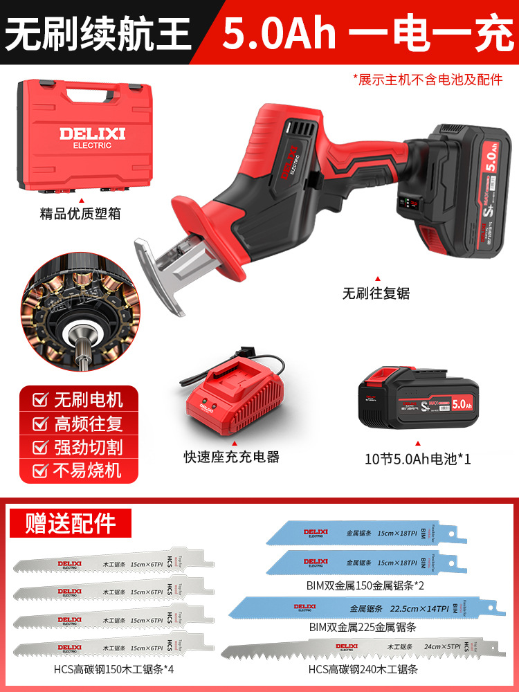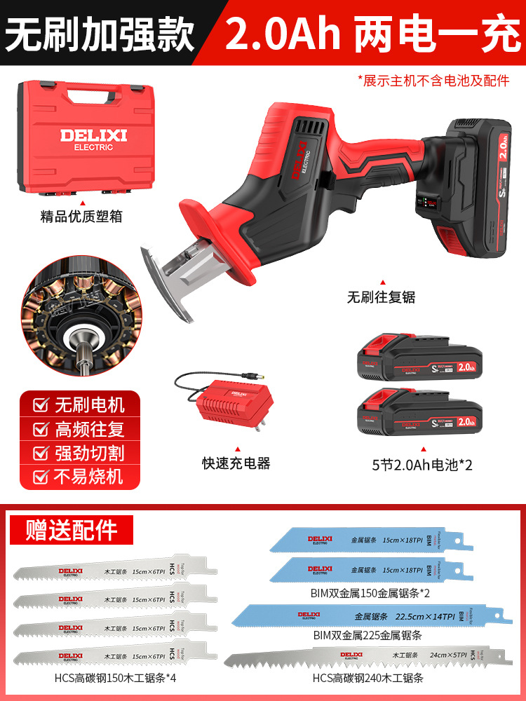 • Delixi 고주파 세이버 왕복톱 [5.0Ah 배터리 2개] 플라스틱 상자 + 무료 톱날 8개, 가격 378