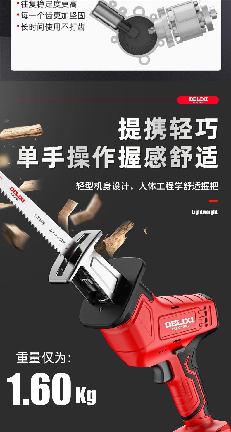 Delixi Reciprocating은 가정용 충전식 소형 야외 핸드 헬드 전기 로깅 리튬 배터리 세이버 핸드 톱스토어 가기