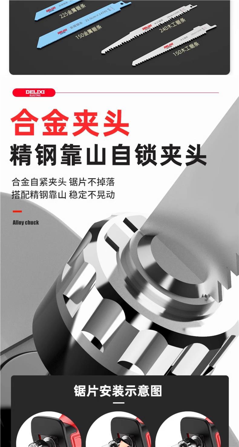 • Delixi 고주파 세이버 왕복톱 [배터리당 2.5Ah] 플라스틱 상자 + 무료 톱날 8개, 가격 208