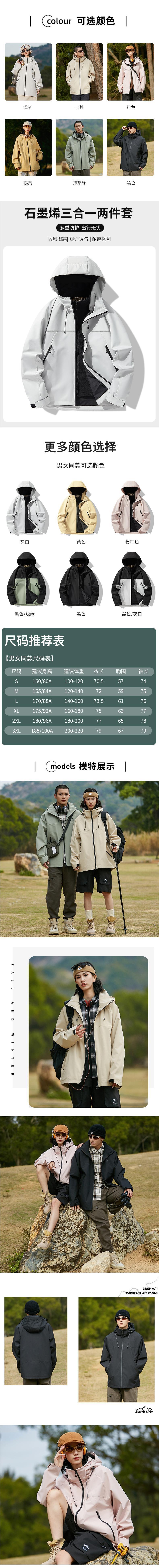 2024 봄과 가을 새로운 남녀 3 대 1 재킷 방수 남성용 코트