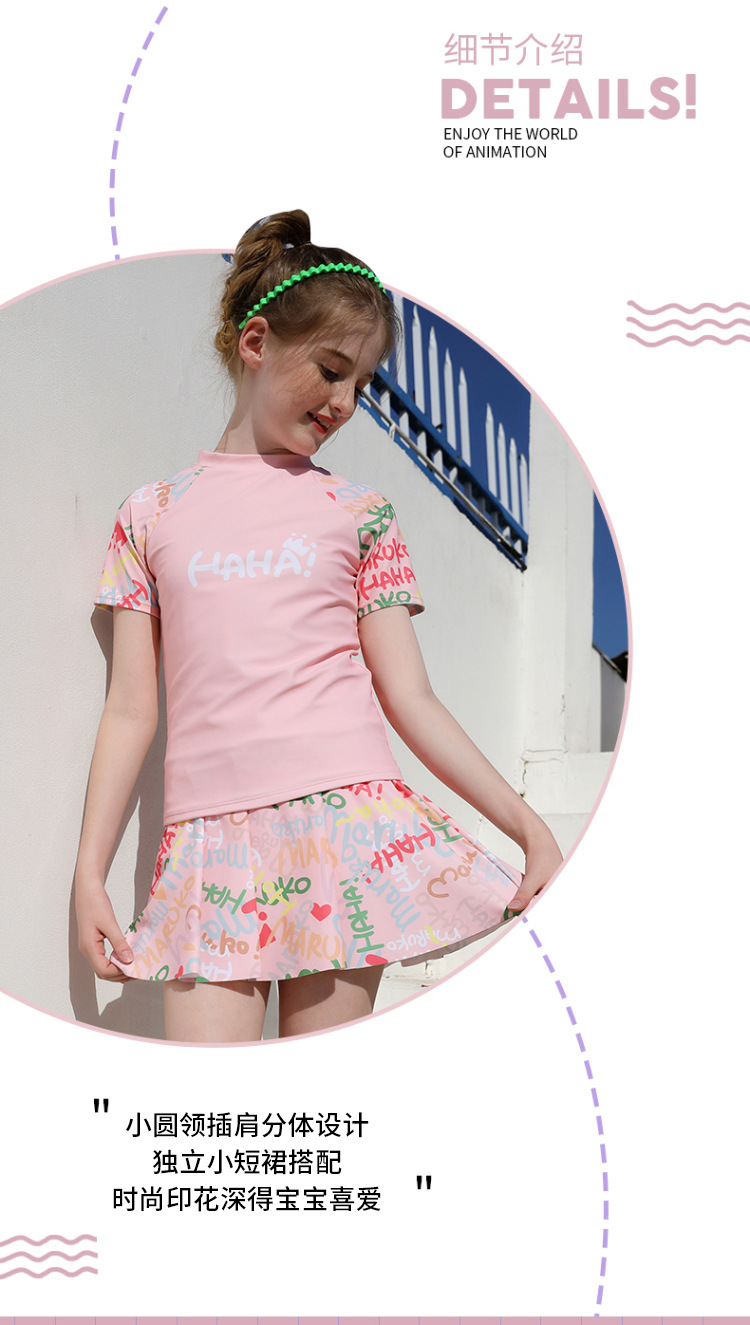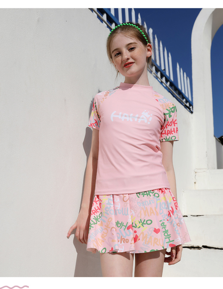 2024 새로운 여자 수영복 분할 주름 치마 두 조각 반소매 스포티 선 스크린 여자 수영복